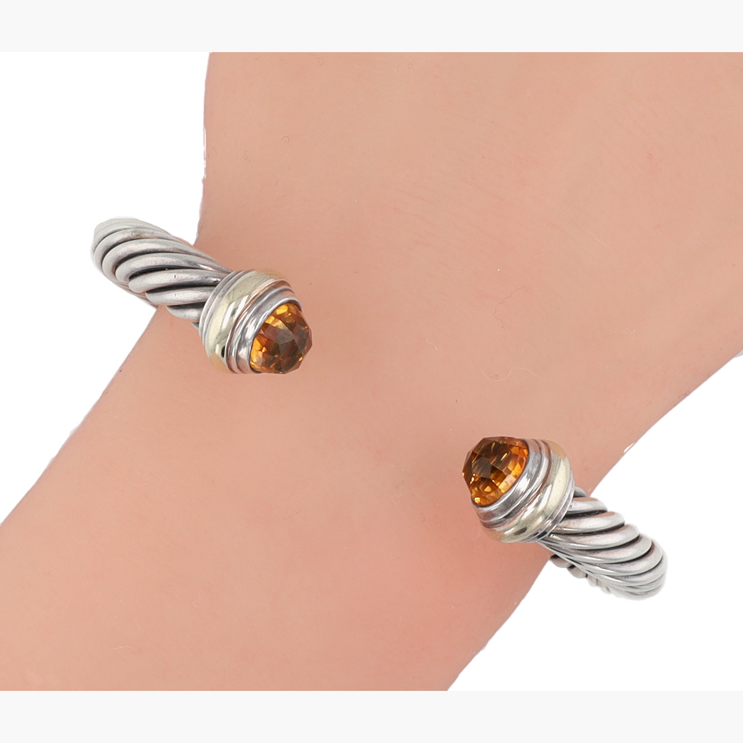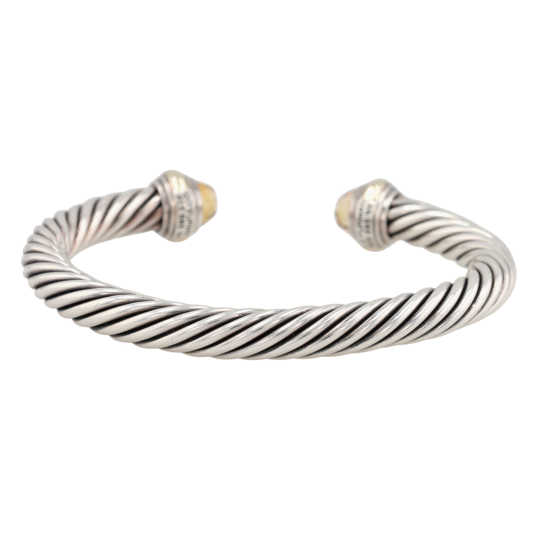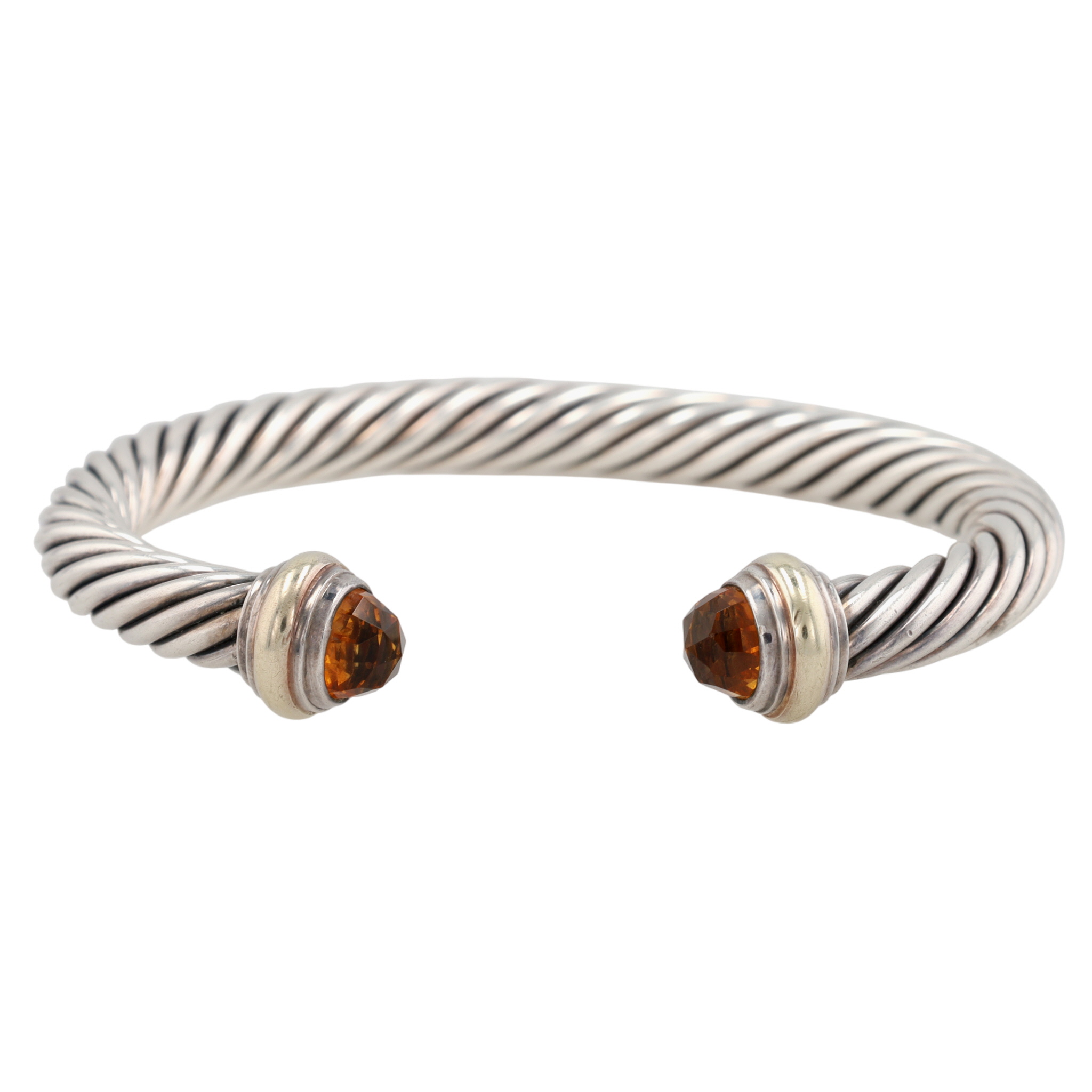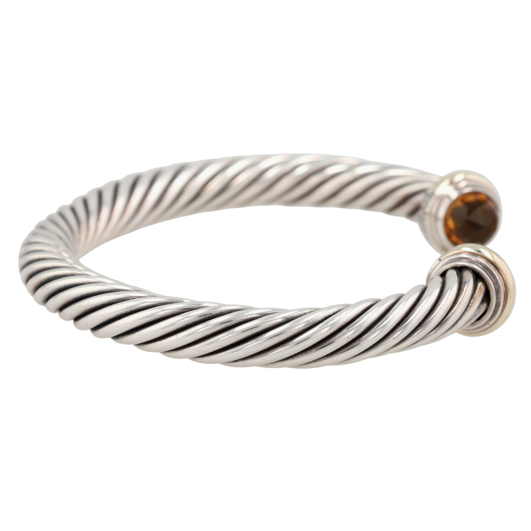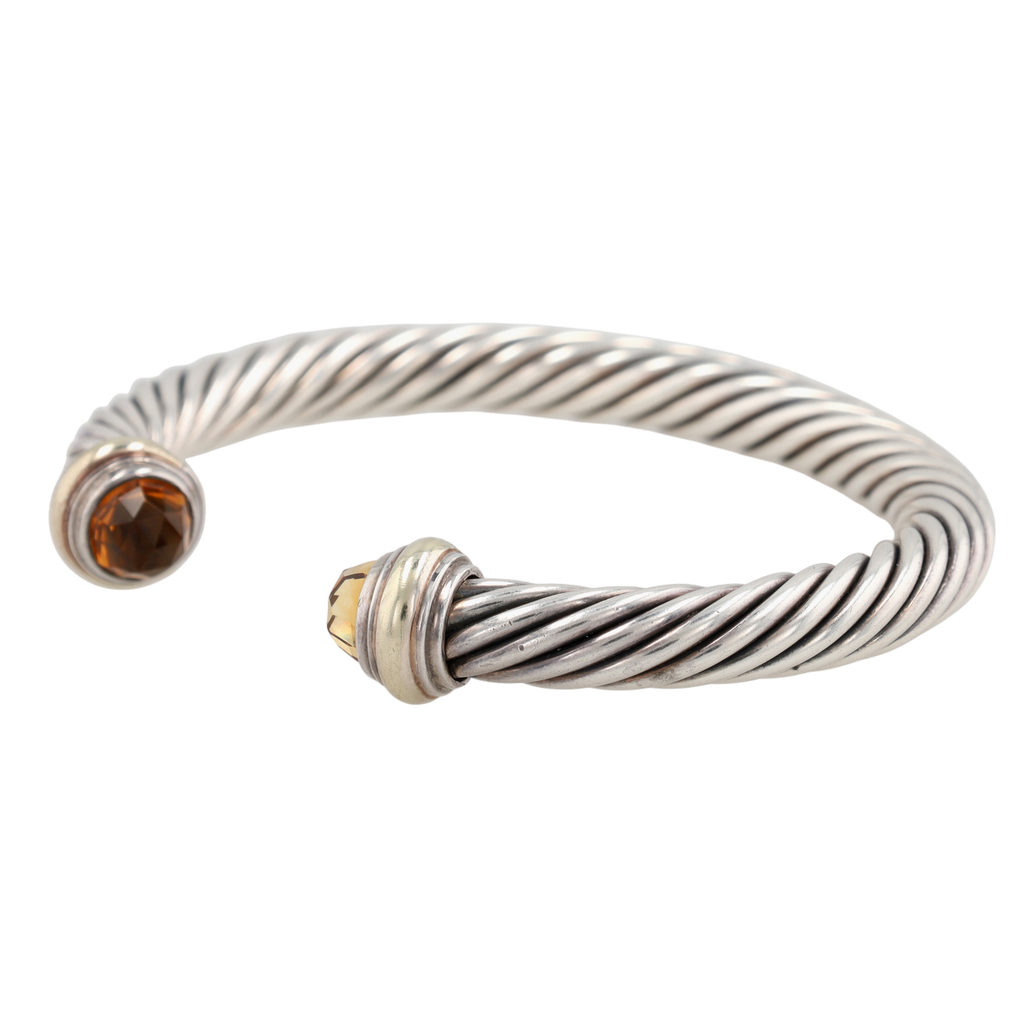 David Yurman Sterling & 14K Gold Citrine Classic Cable Cuff Bracelet, 7mm | Retail $895 | 43.9g