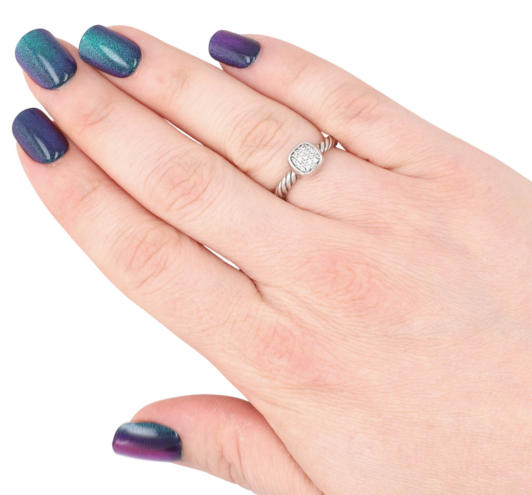 David Yurman Sterling Pave Diamond Cable Ring Sz 4.5