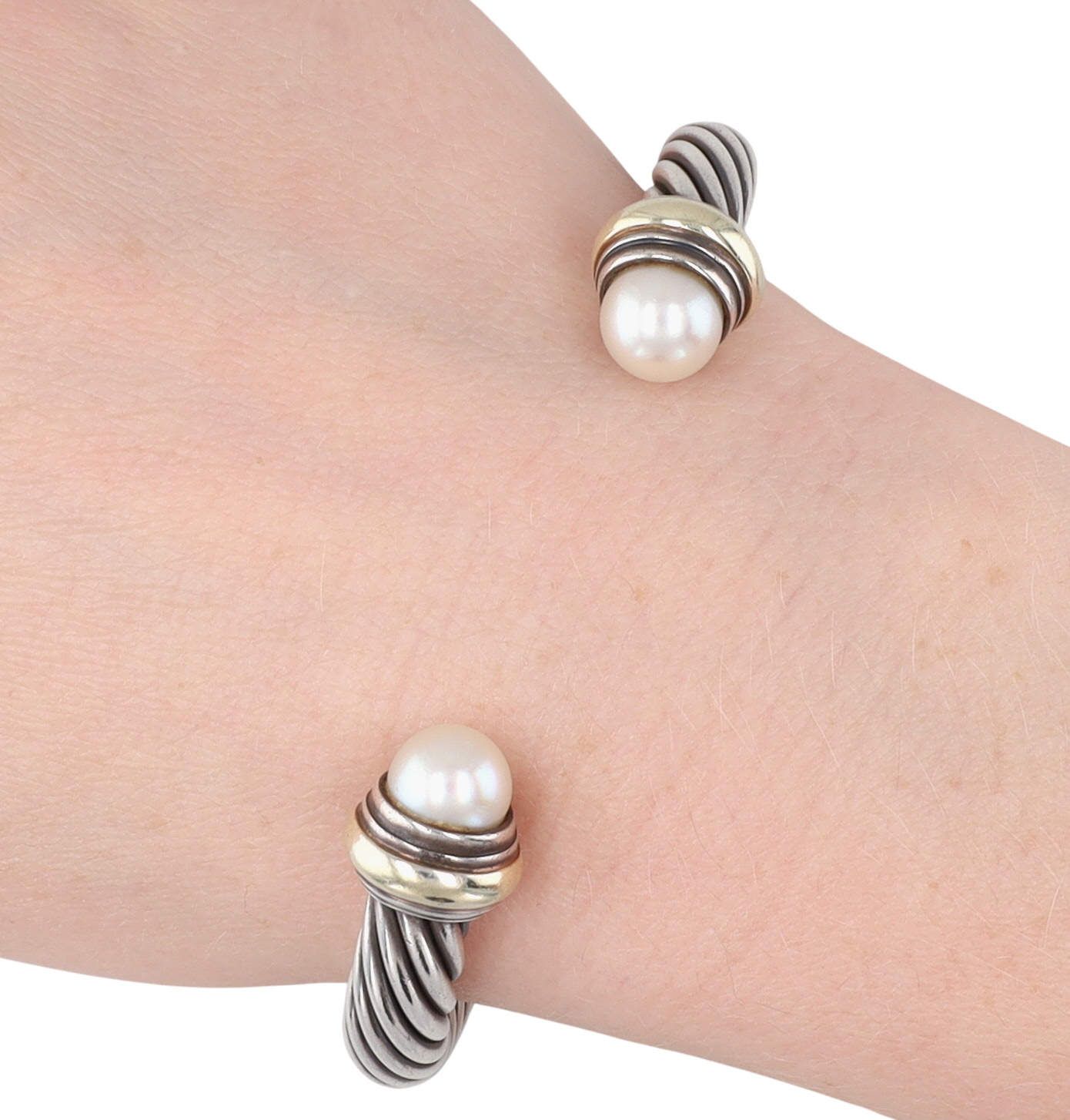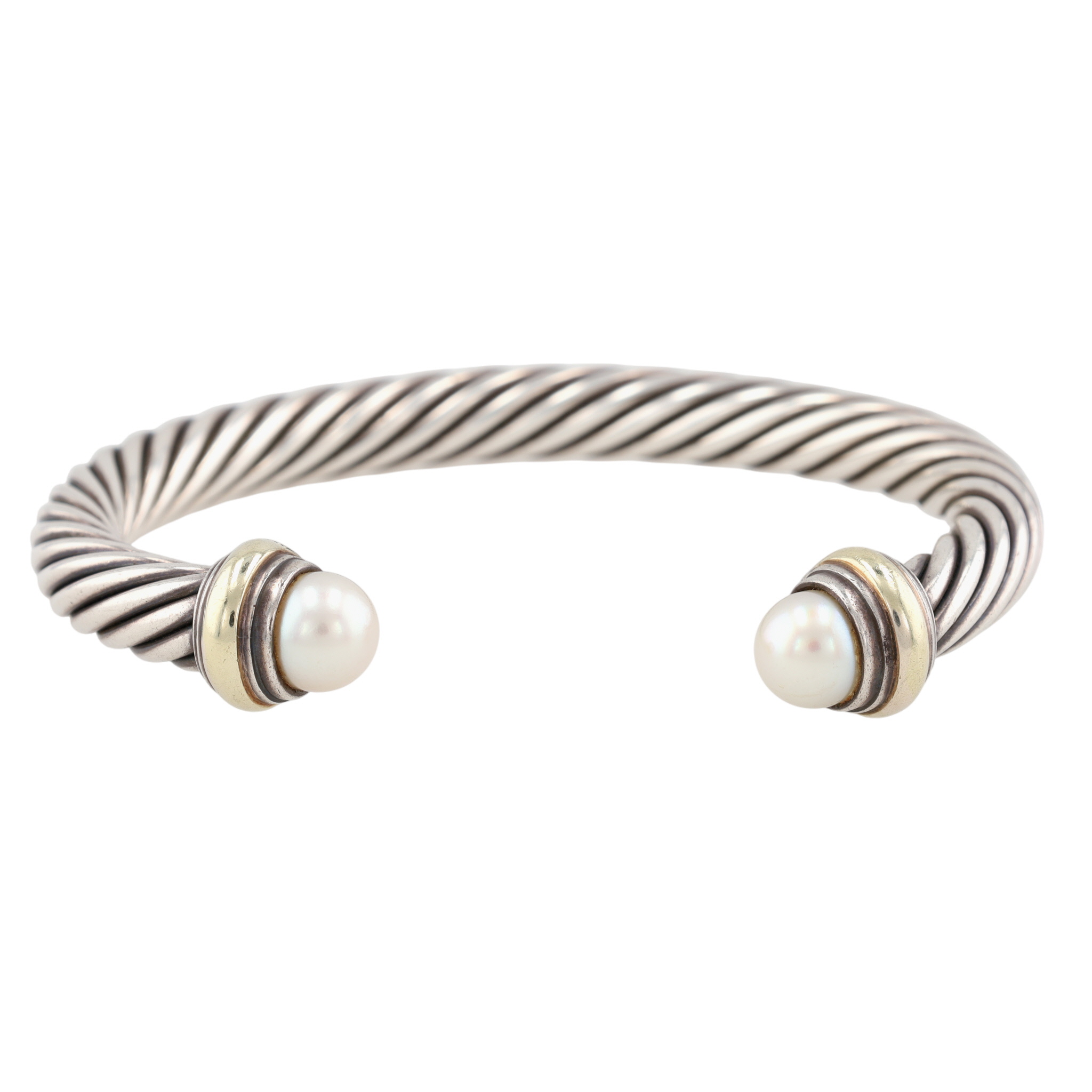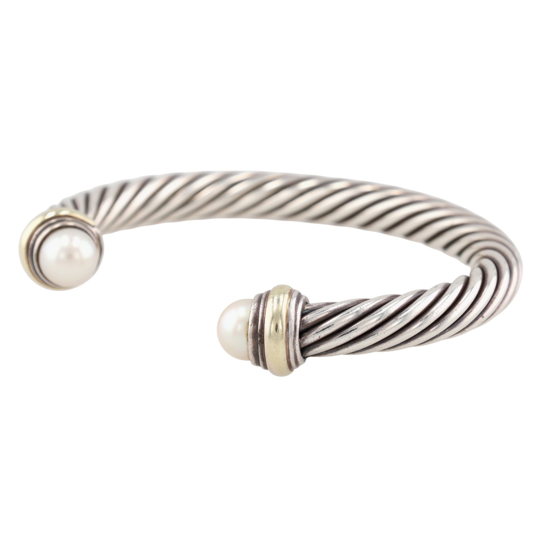 David Yurman Sterling & 14K Gold Pearl Cable Cuff Bracelet, 7mm | 42.4g | Retail $995