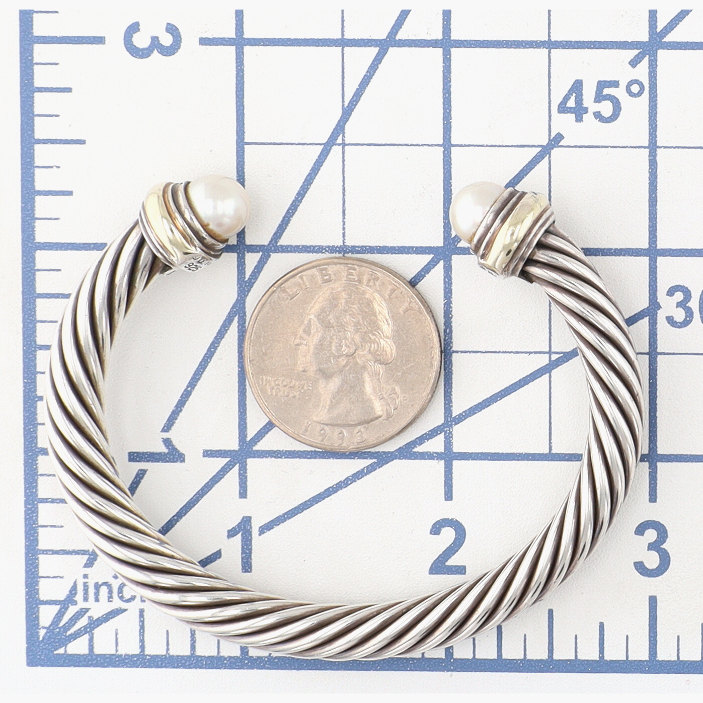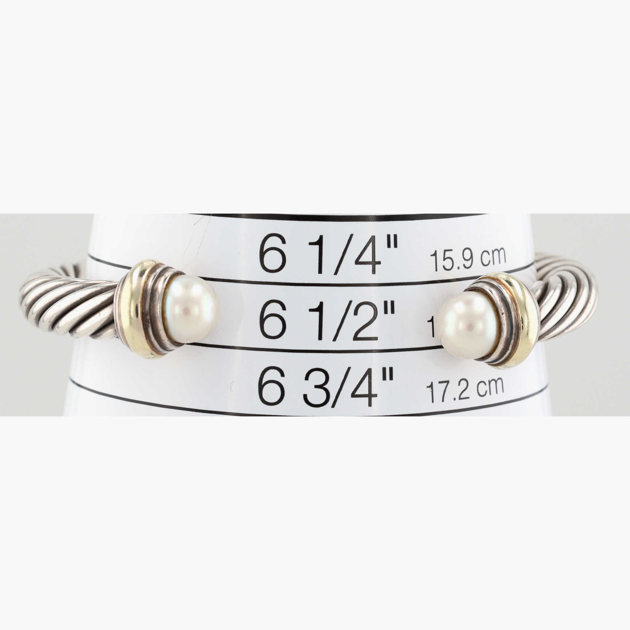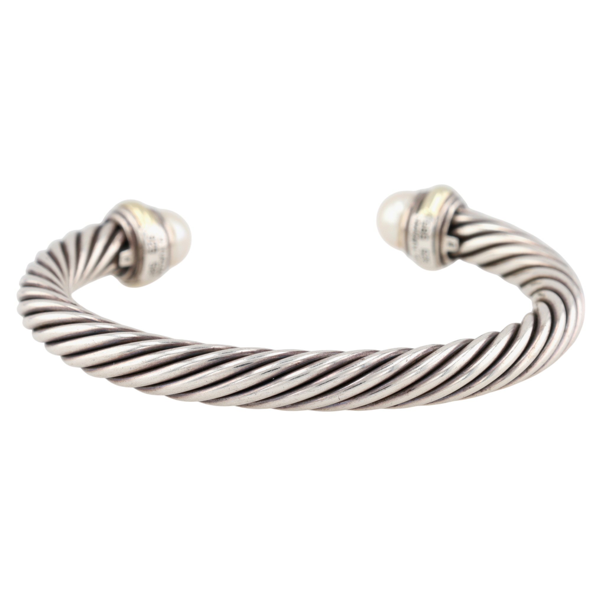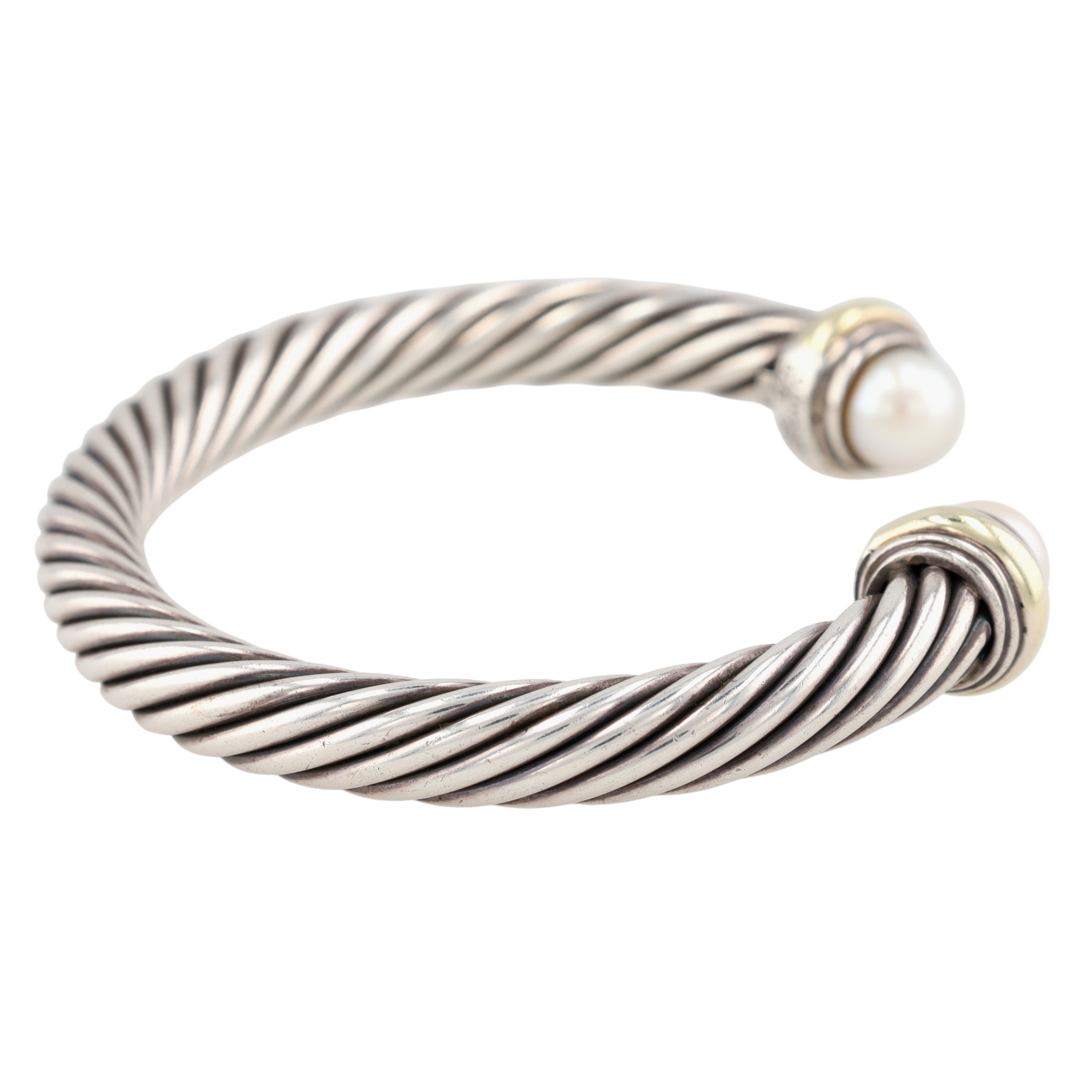 David Yurman Sterling & 14K Gold Pearl Cable Cuff Bracelet, 7mm | 42.4g | Retail $995