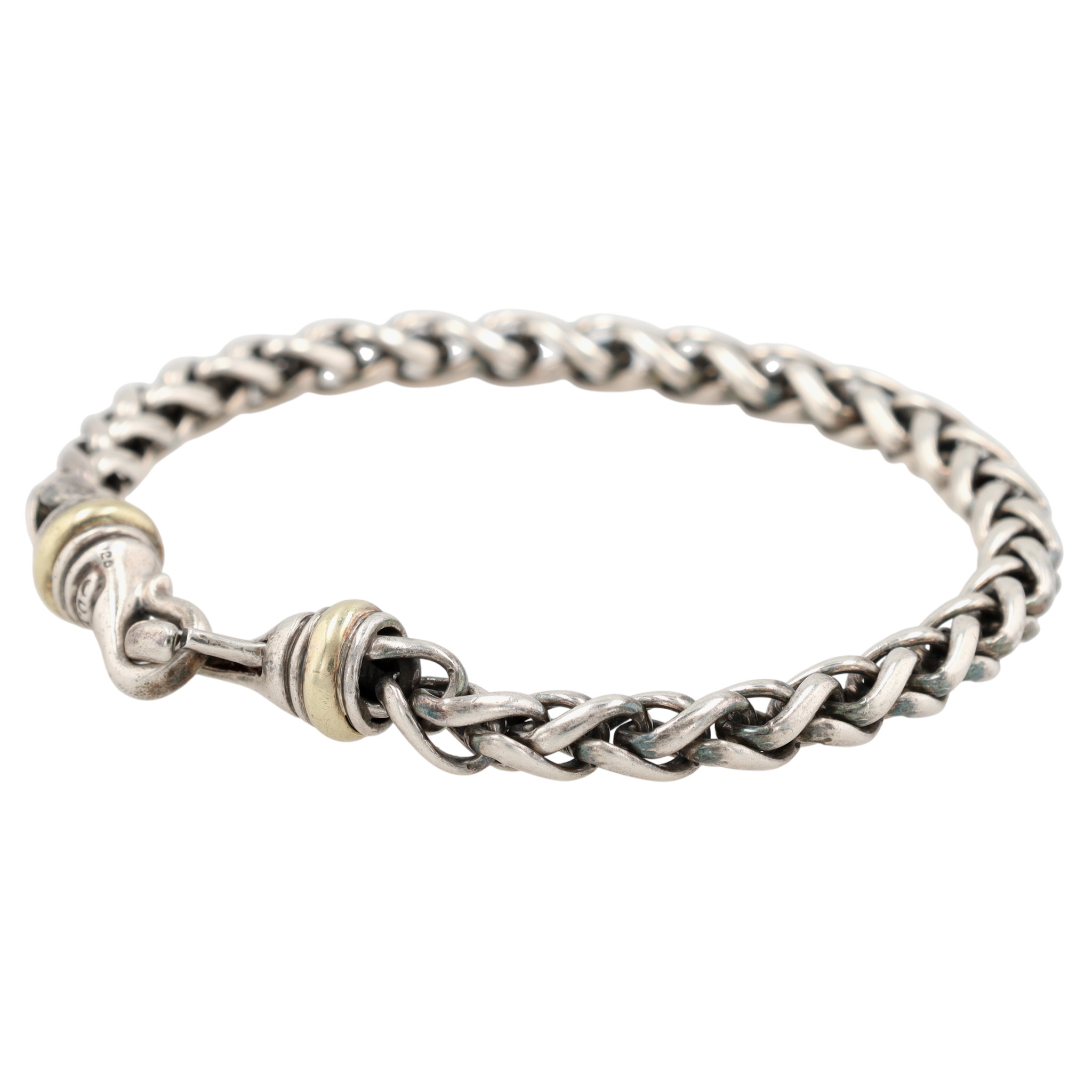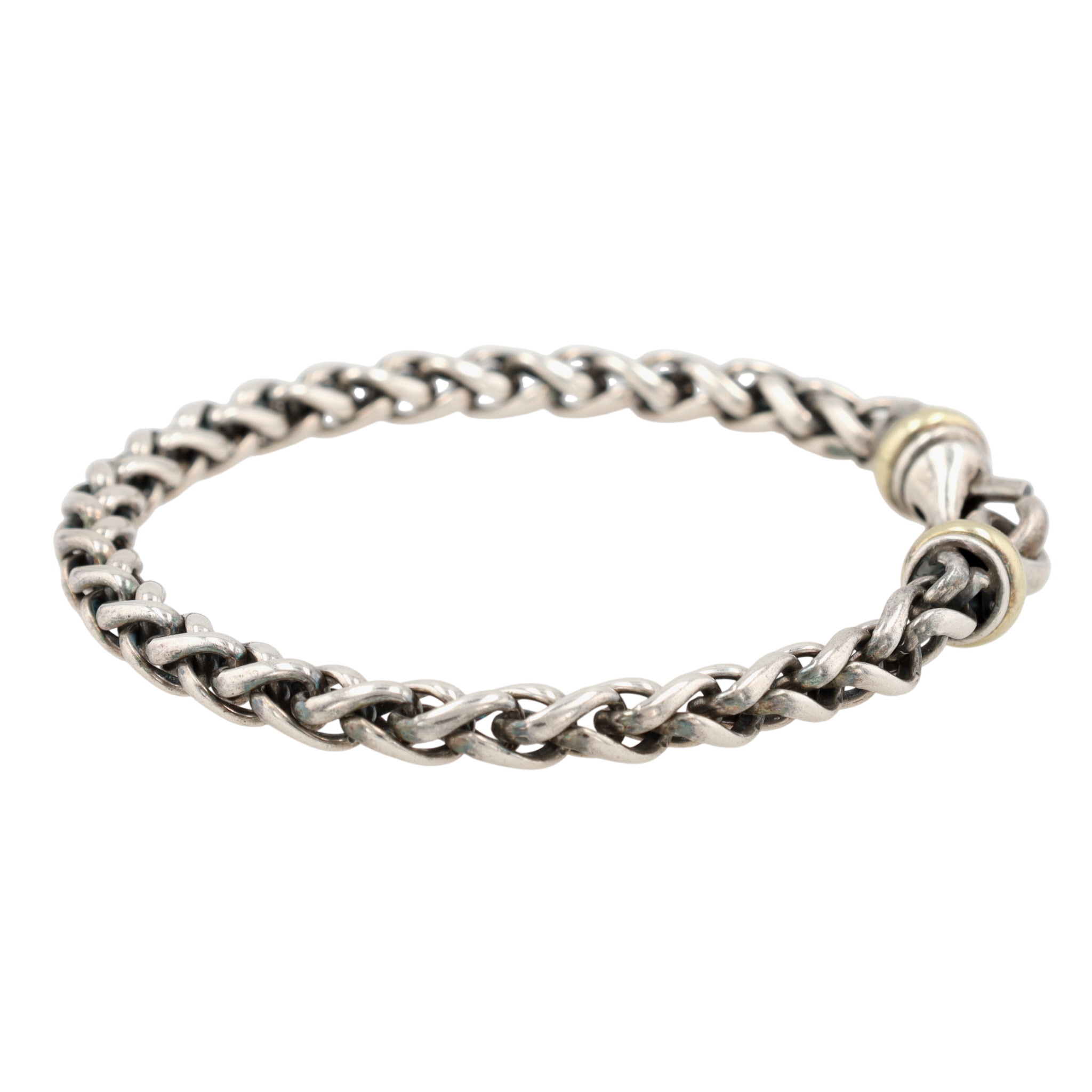 David Yurman Sterling & 14K Gold Wheat Chain Bracelet, approx 6mm | 30.4g | Approx 9″ length