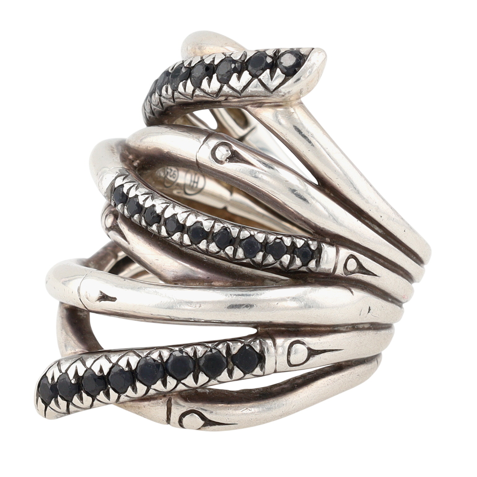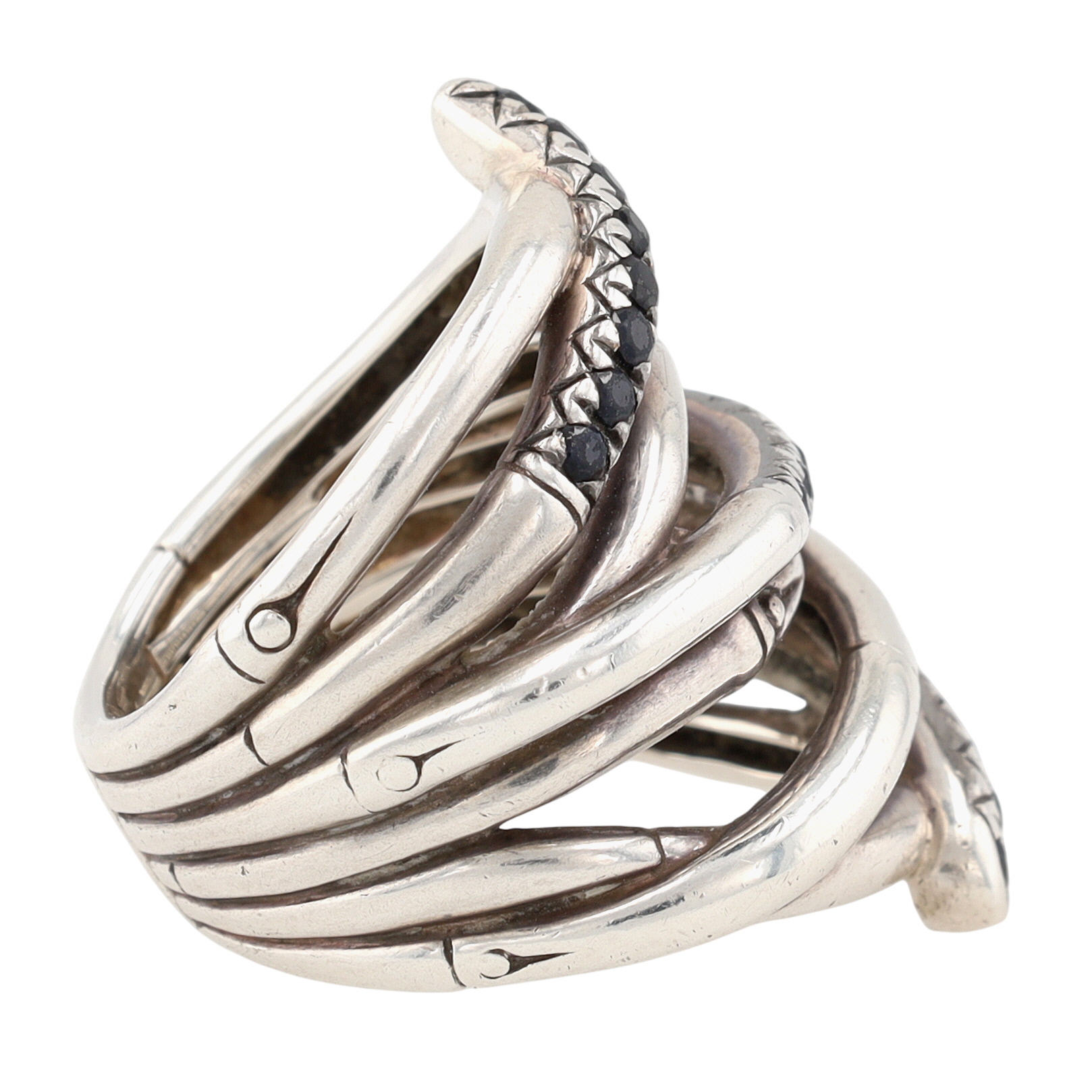 Stunning!!! John Hardy Sterling Black Sapphire Wide Bamboo Ring Sz 7 | 15.6g | approx 1.2″ tall face