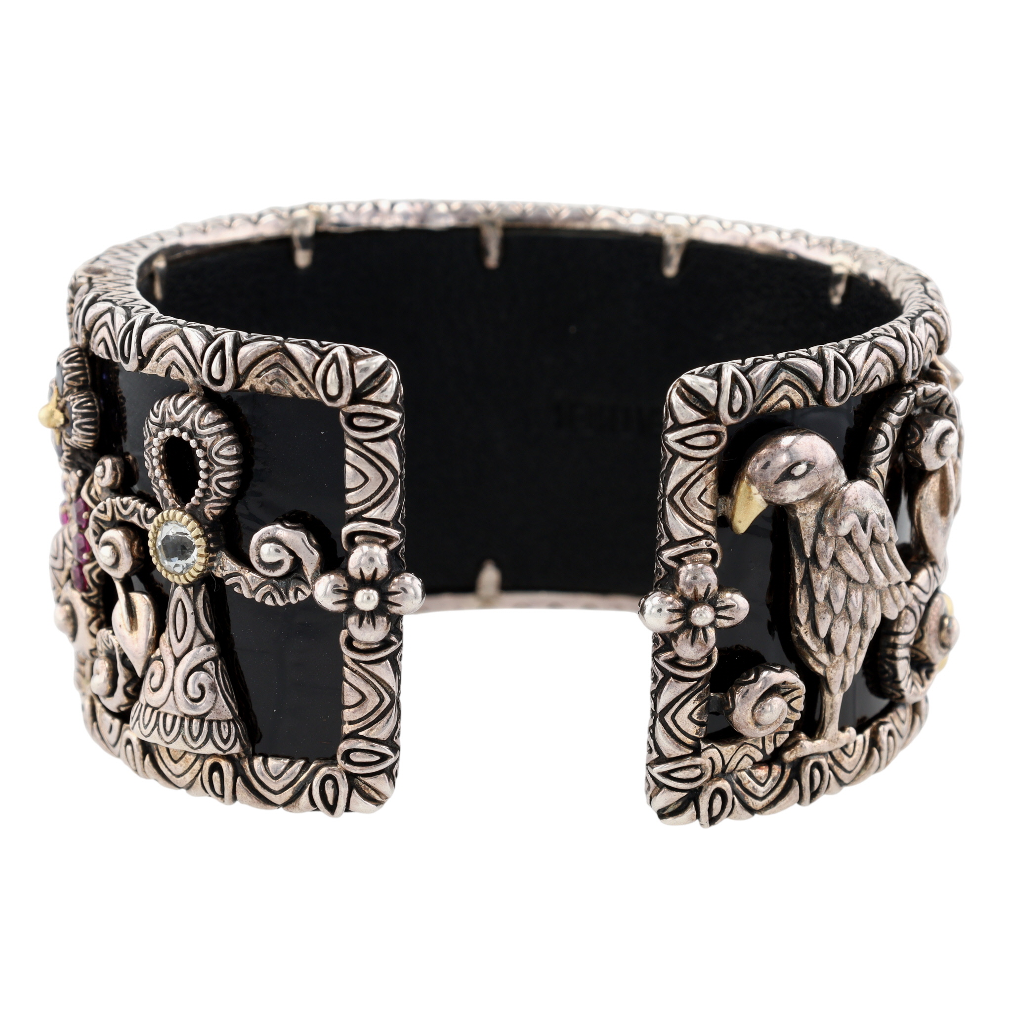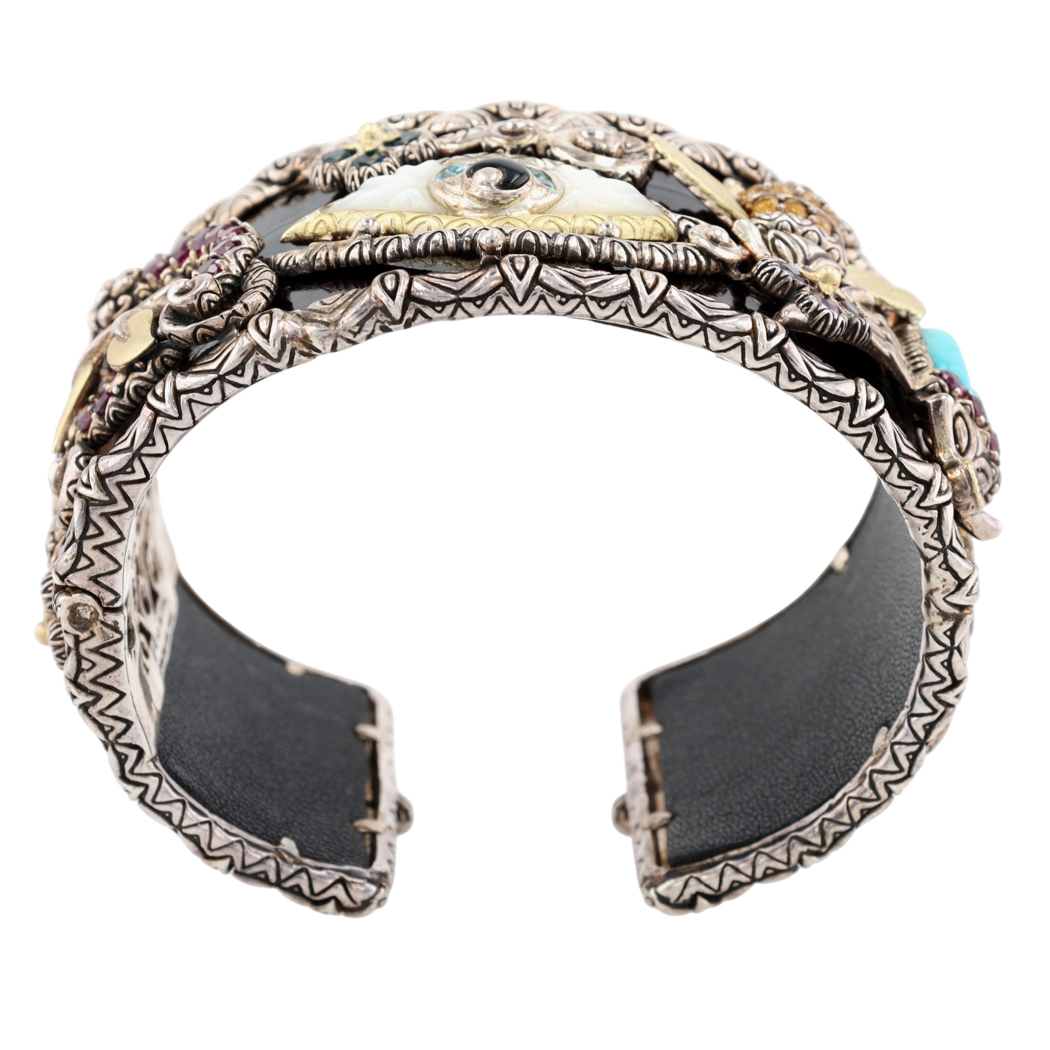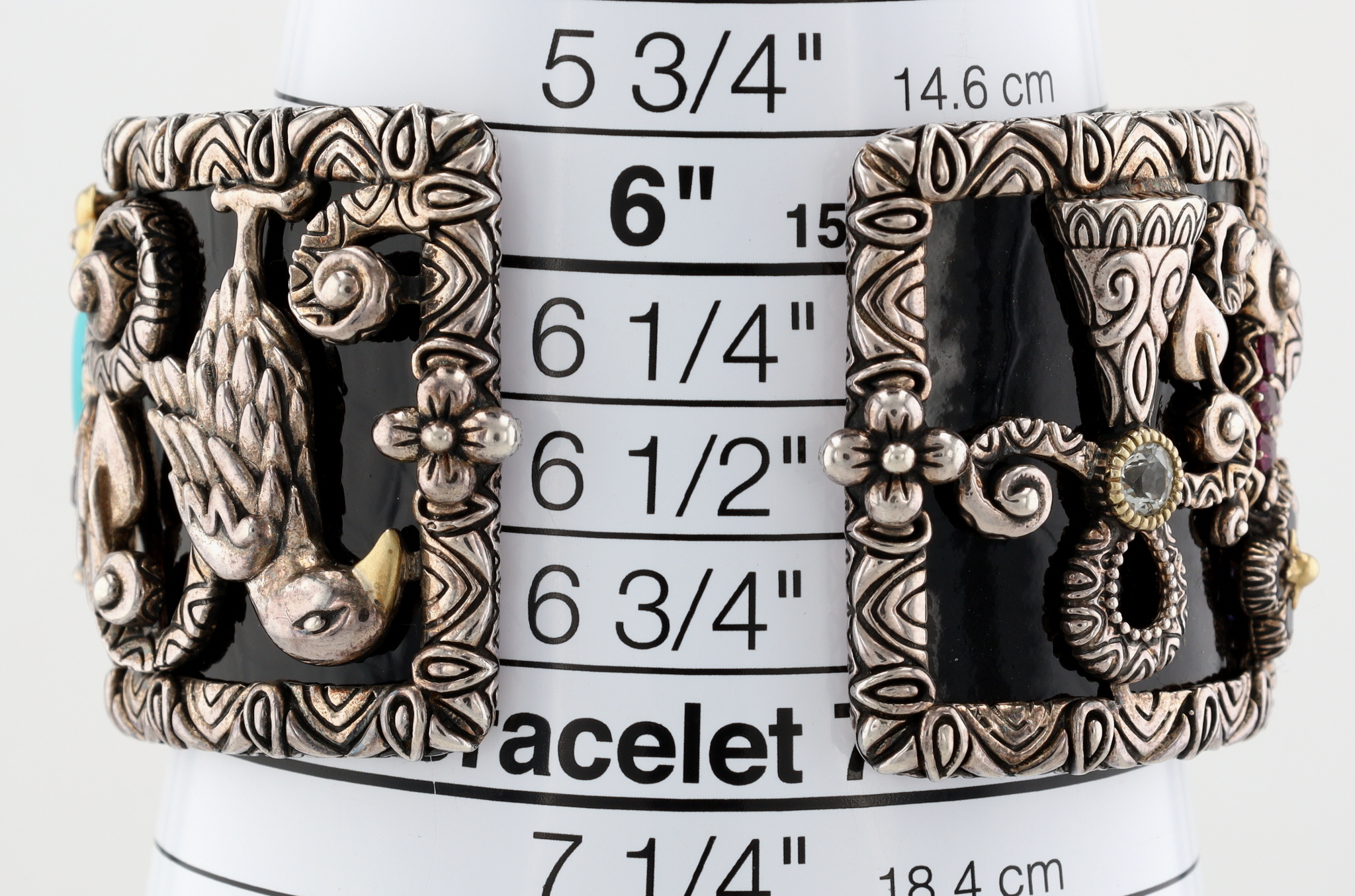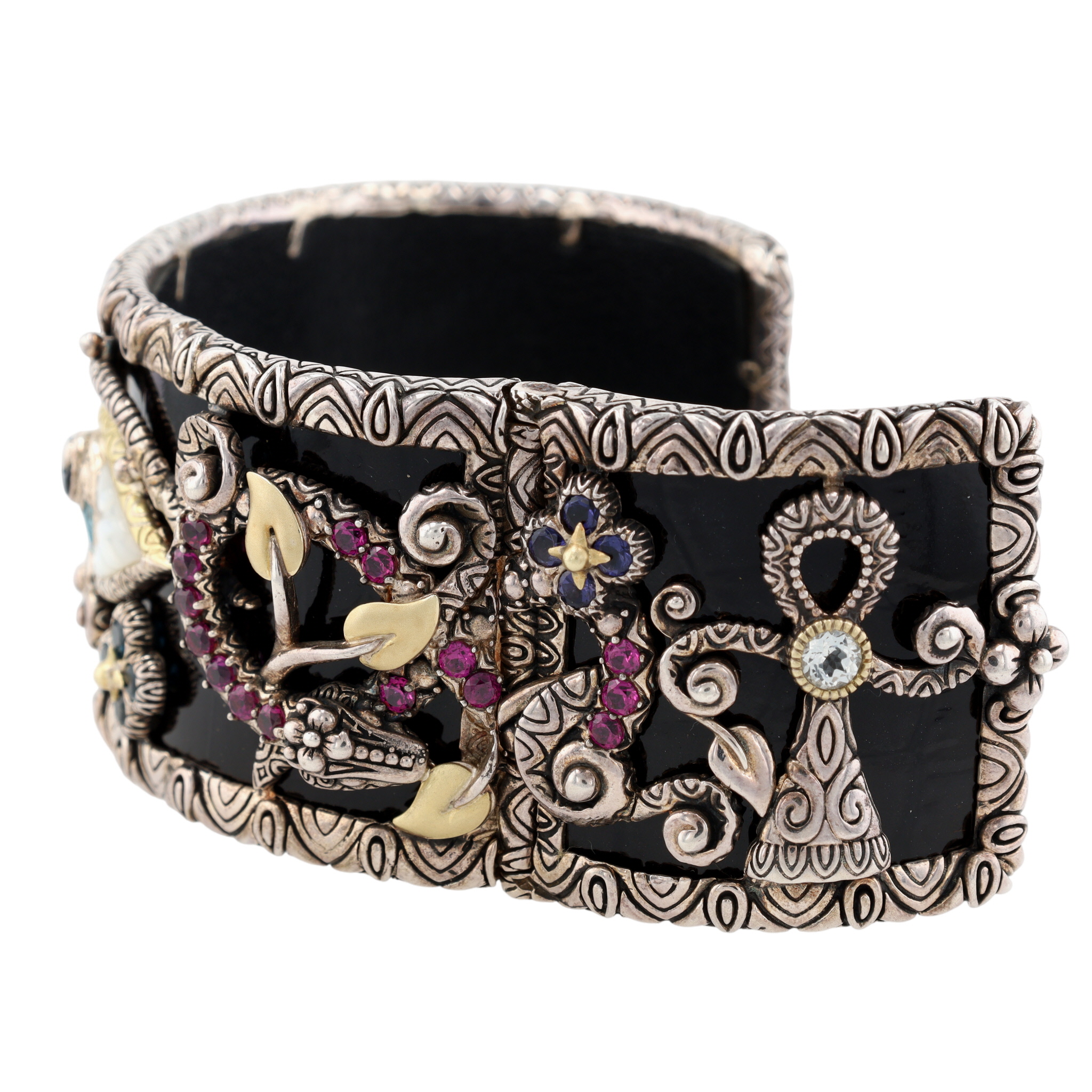 Barbara Bixby Sterling & 18K Gold Multi Gemstone Egyptian Cuff Bracelet | 110.8g | 1.5" wide/tall | Retail $1250 |