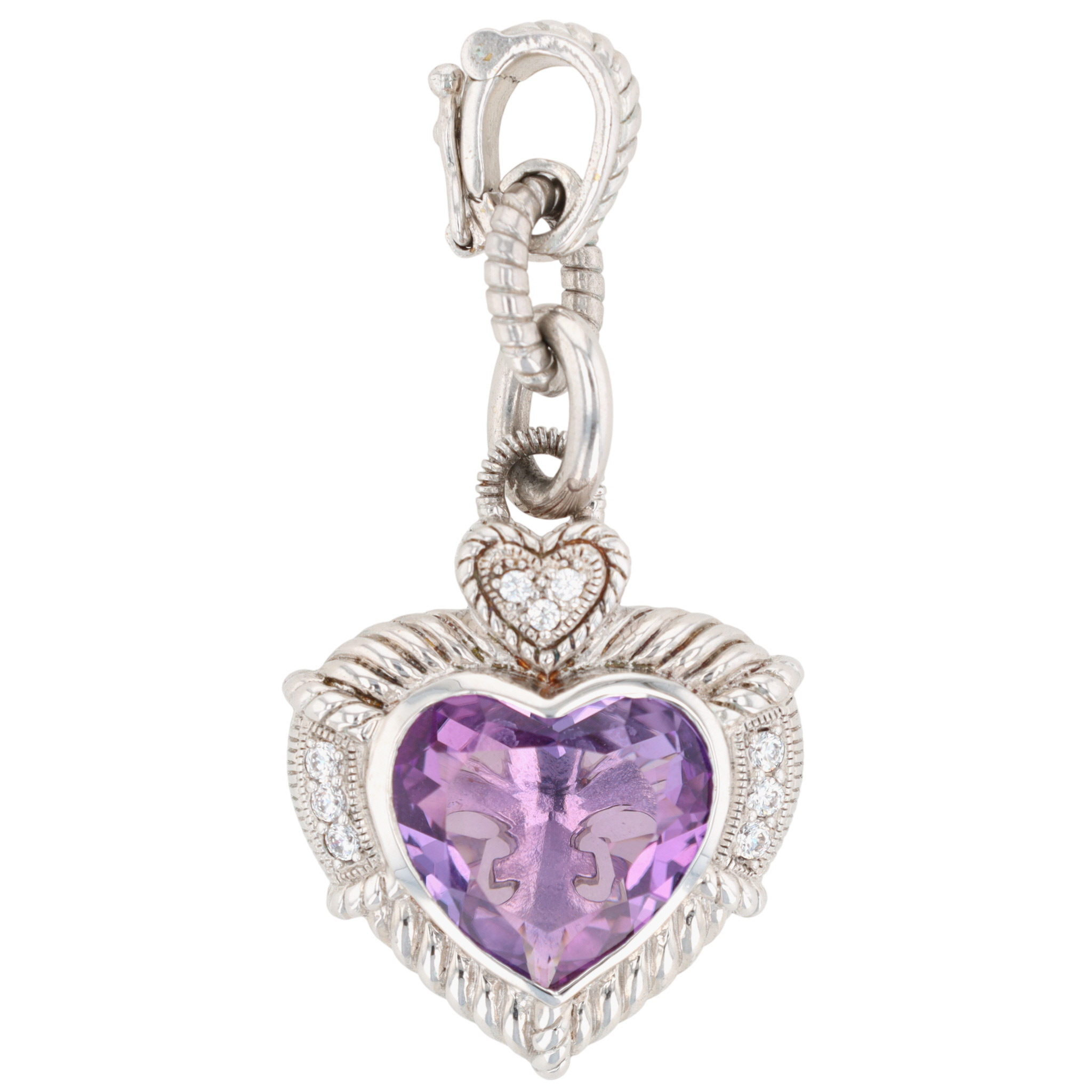 Judith Ripka Sterling Amethyst & CZ Heart Dangle Enhancer Pendant | 14.7g