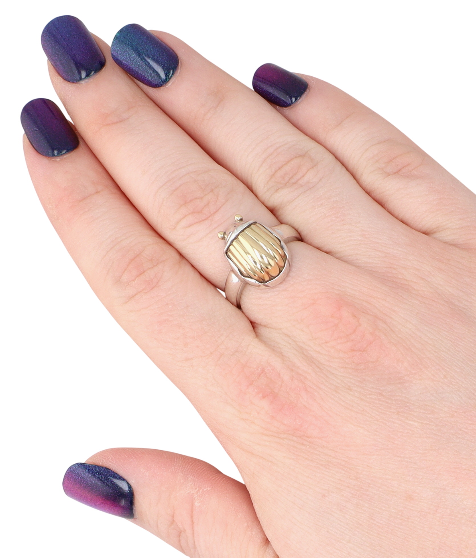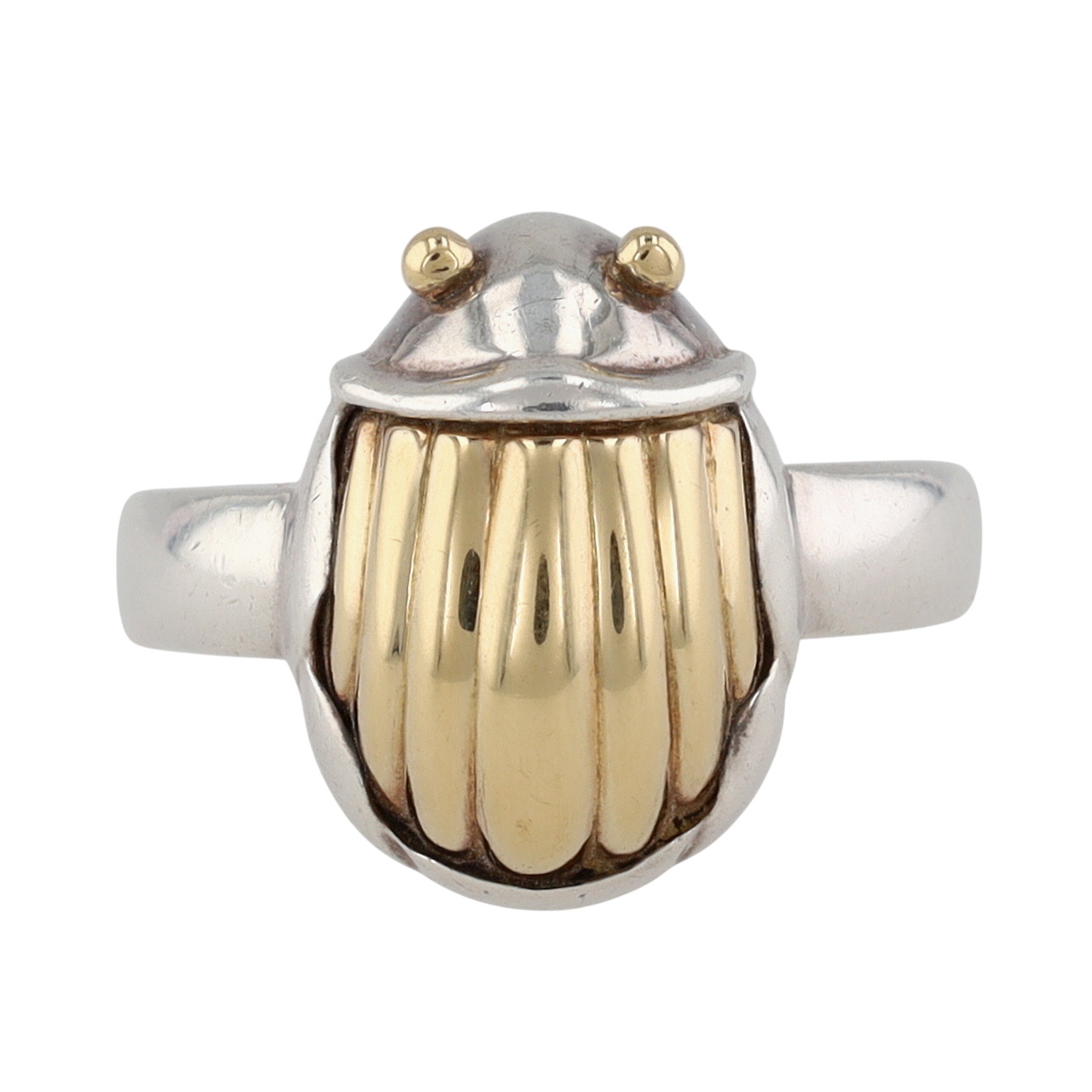 Rare Tiffany & Co. Sterling & 18K Gold Scarab Ring Sz 7.5