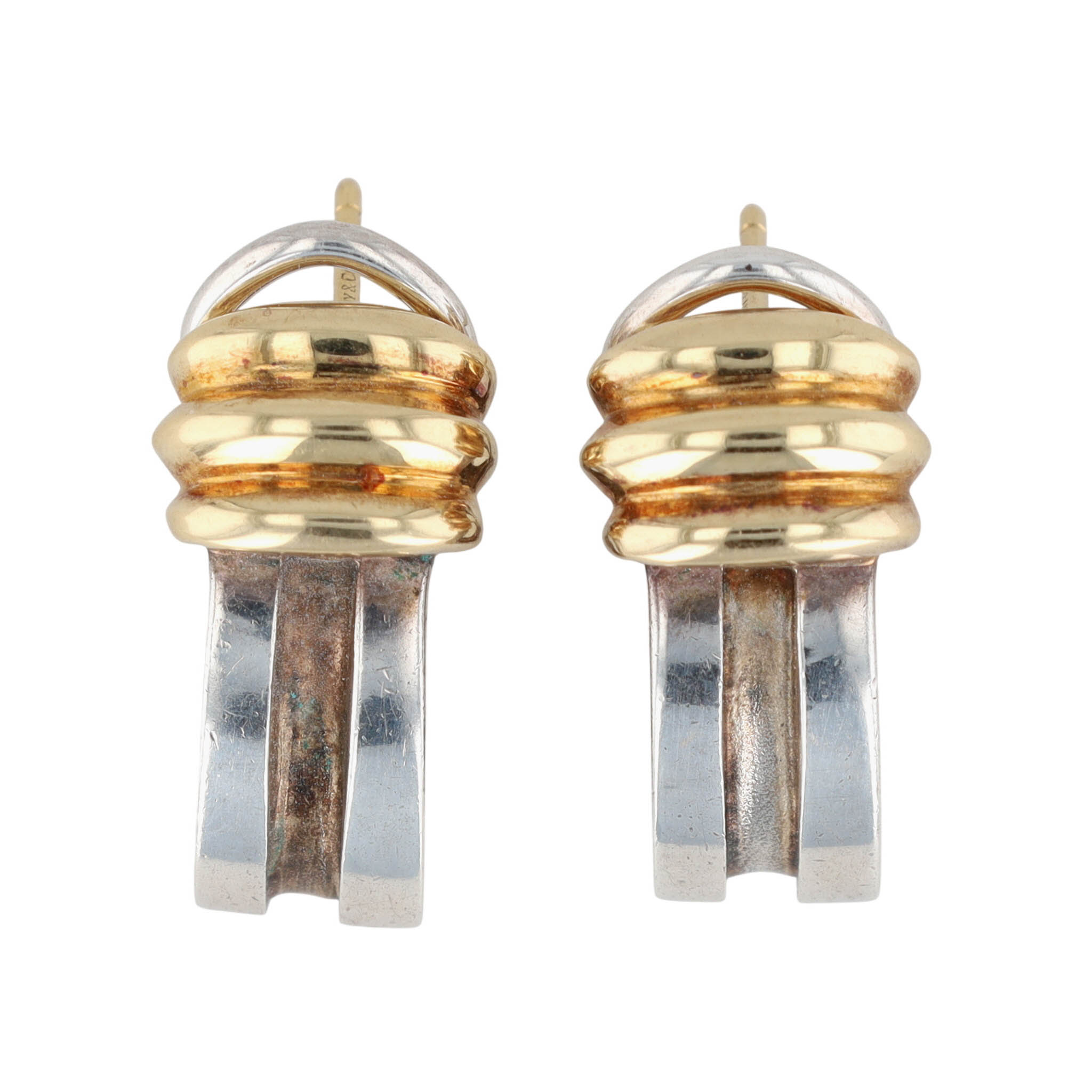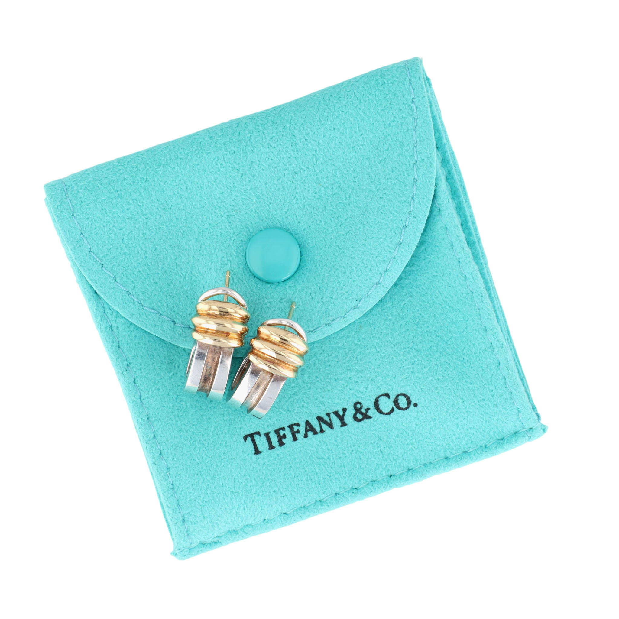 Retired Tiffany & Co. Sterling & 18K Gold Atlas Groove Earrings | 7g | Comes with a Tiffany Cloth Pouch as shown