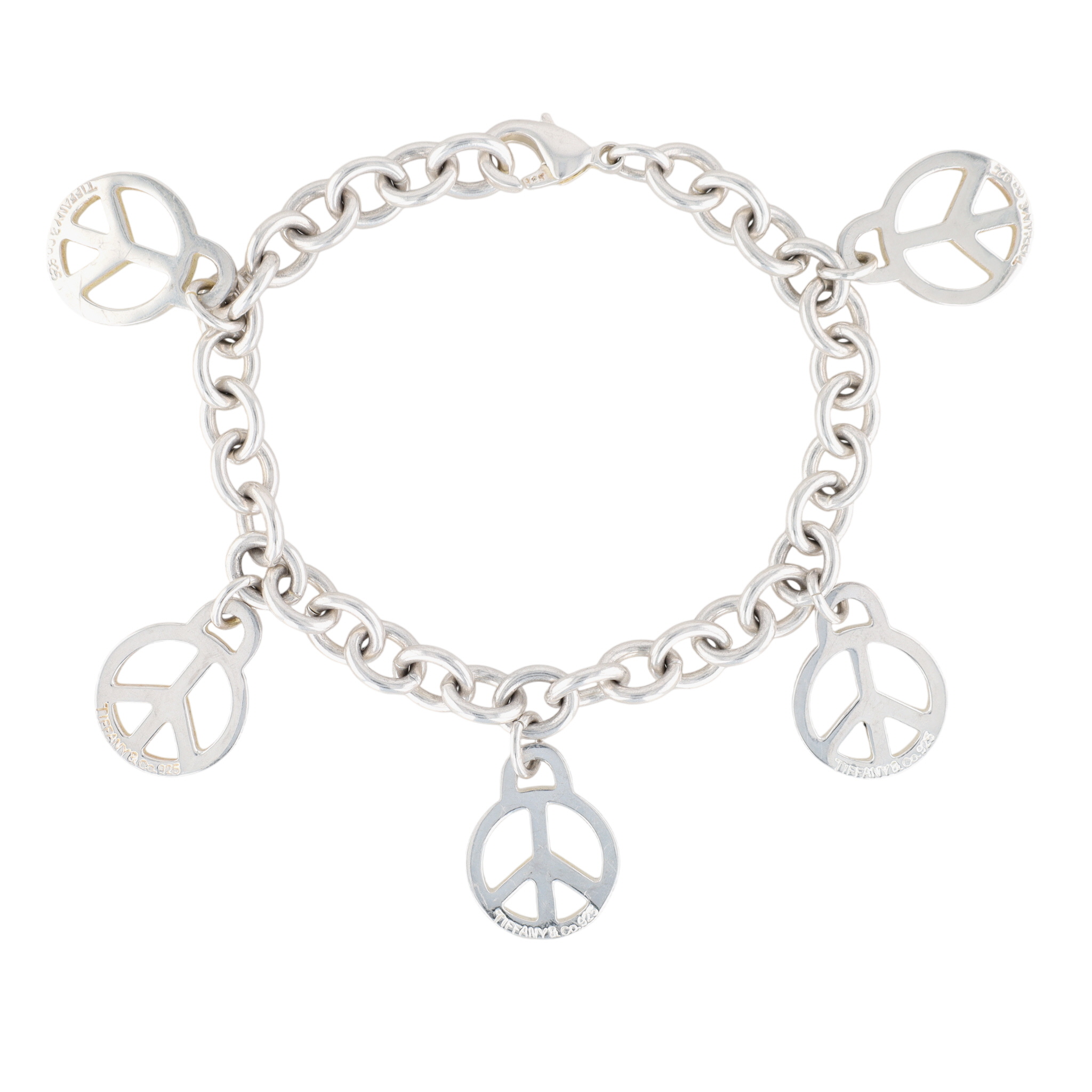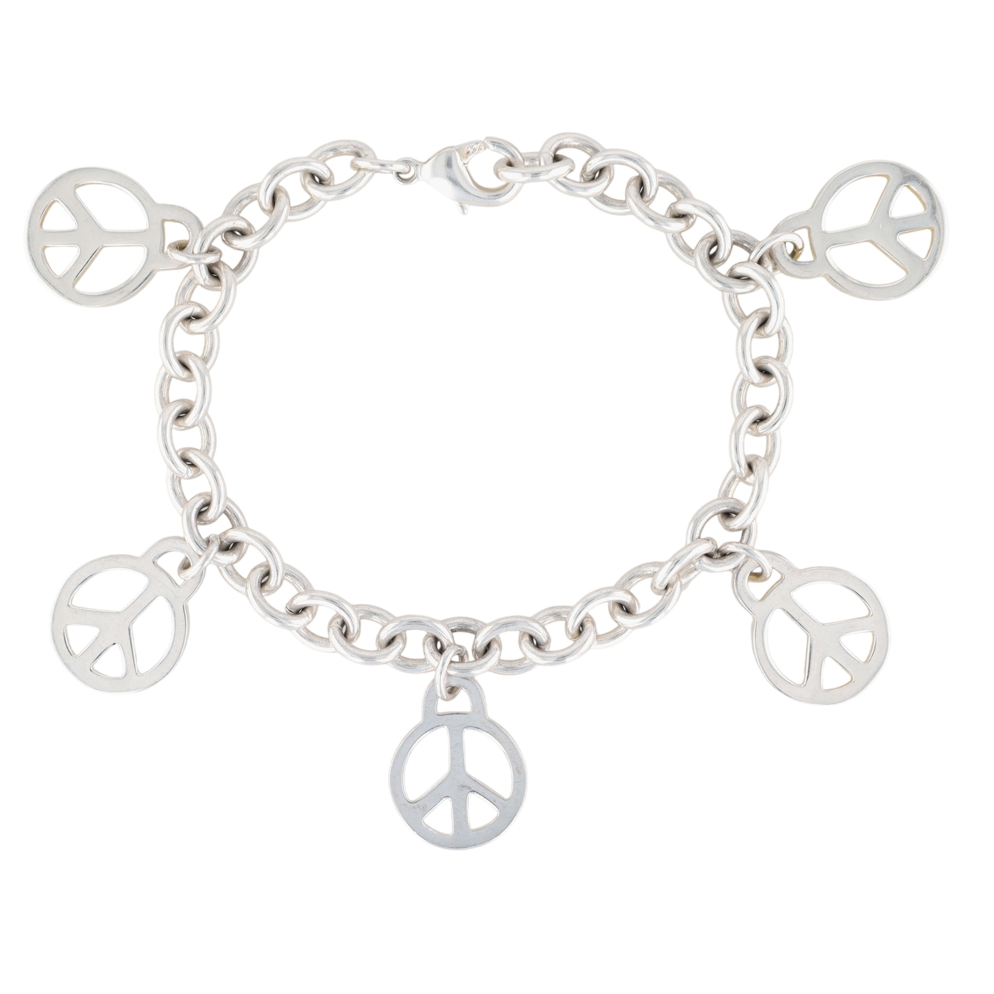 Tiffany & Co. Sterling Peace Sign Charm Bracelet, 8″ | 26.3g