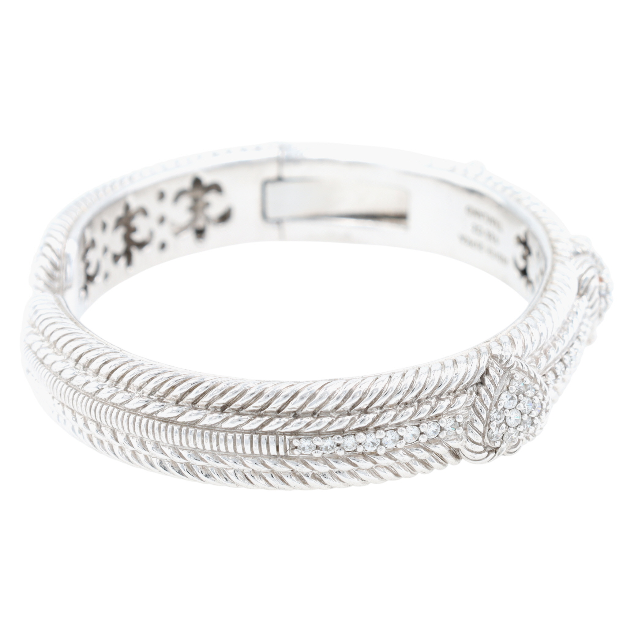 Judith Ripka Sterling CZ Heart Cuff Bracelet | 44.9g | Comes with a Judith Ripka Cloth Bag as shown