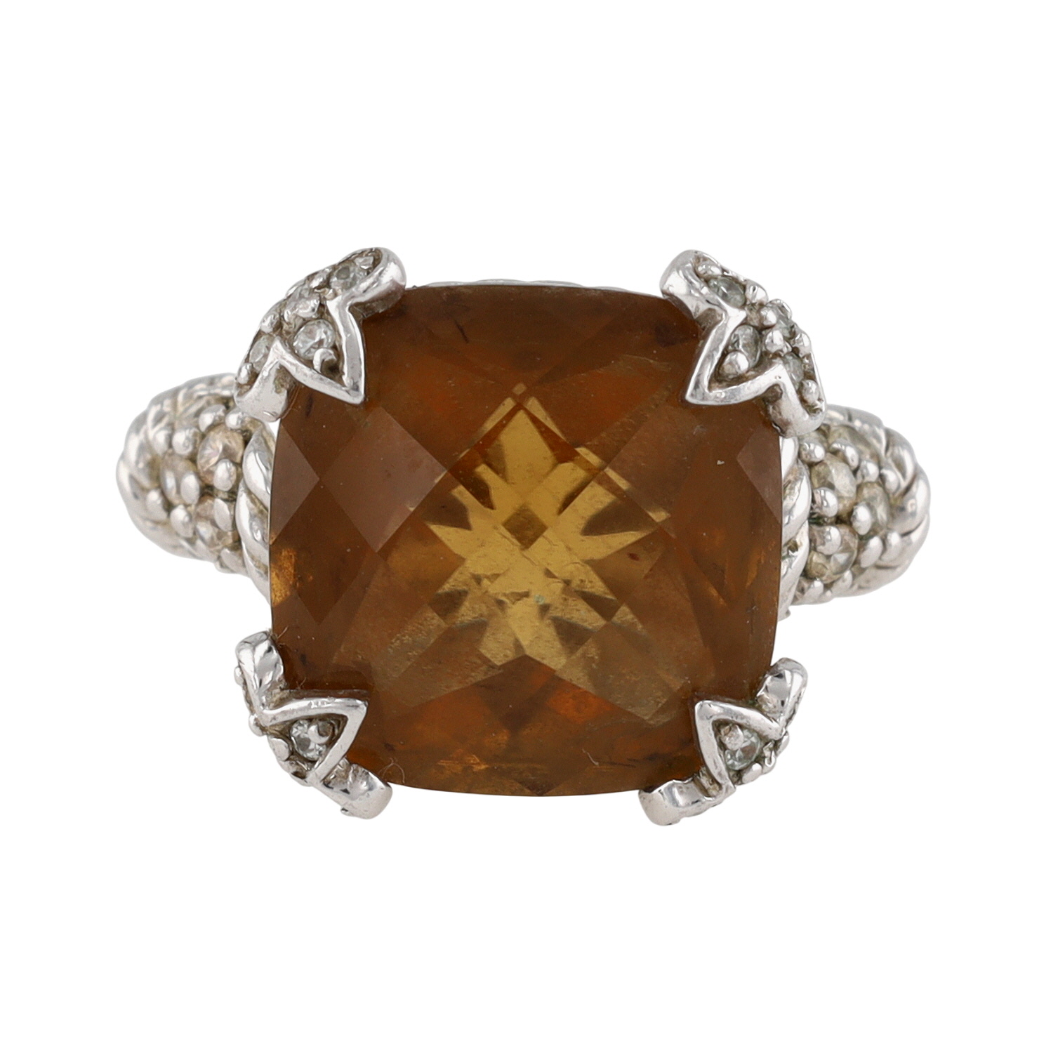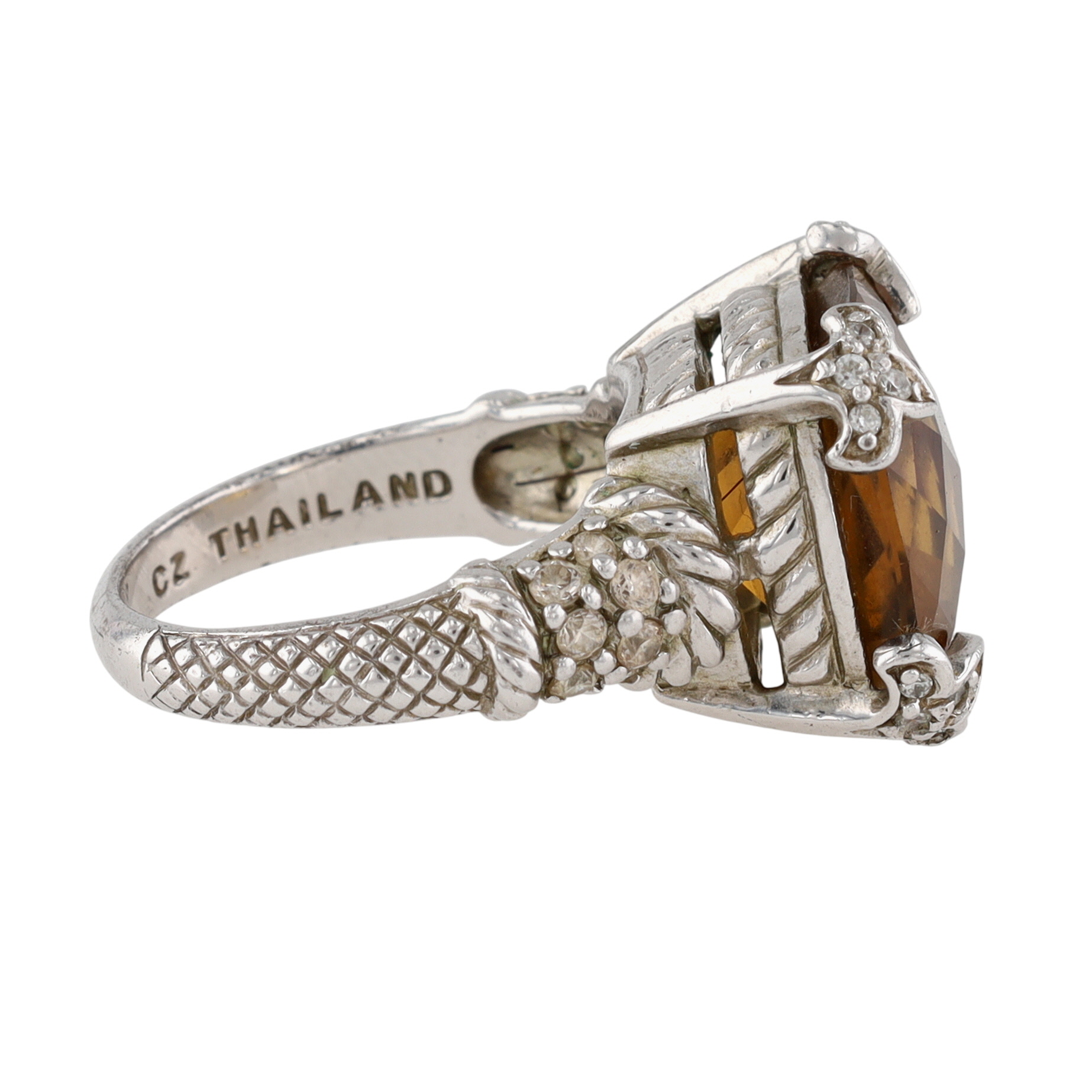 Judith Ripka Sterling Citrine & CZ Ring Sz 7 | 9.7g