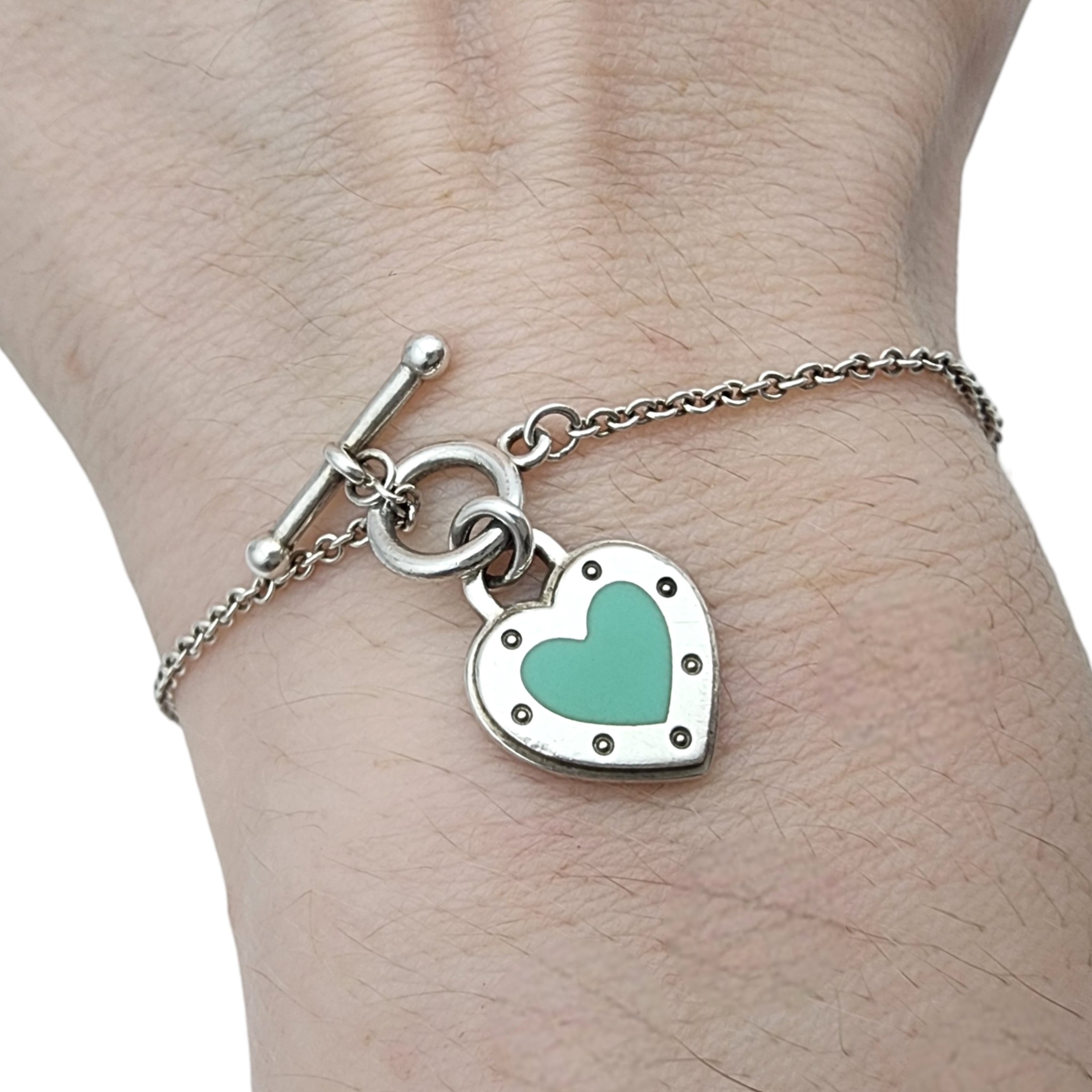 Tiffany & Co. Sterling Blue Enamel Love Tag Bracelet | 3.1g | Chain length approx 6.5″ unclasped