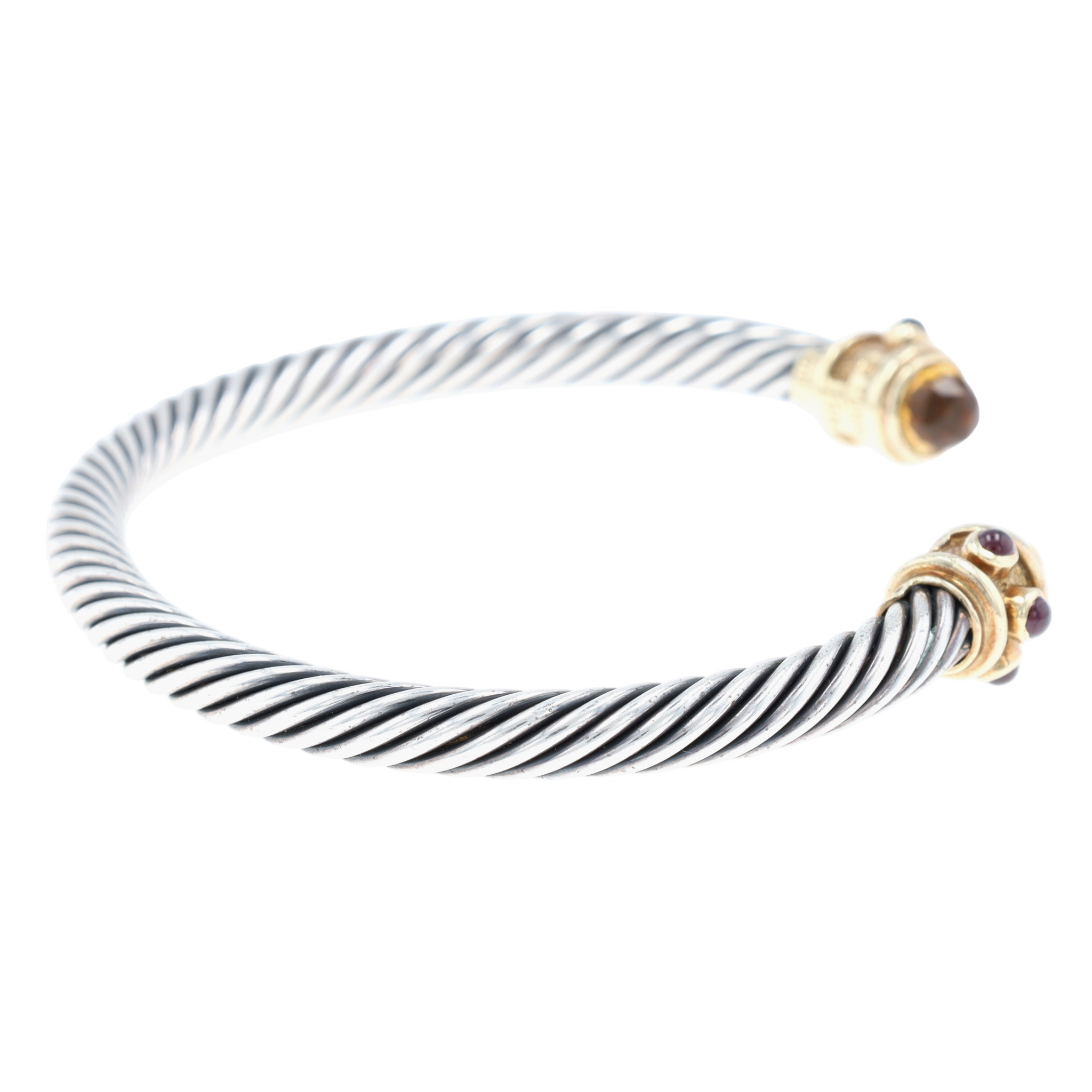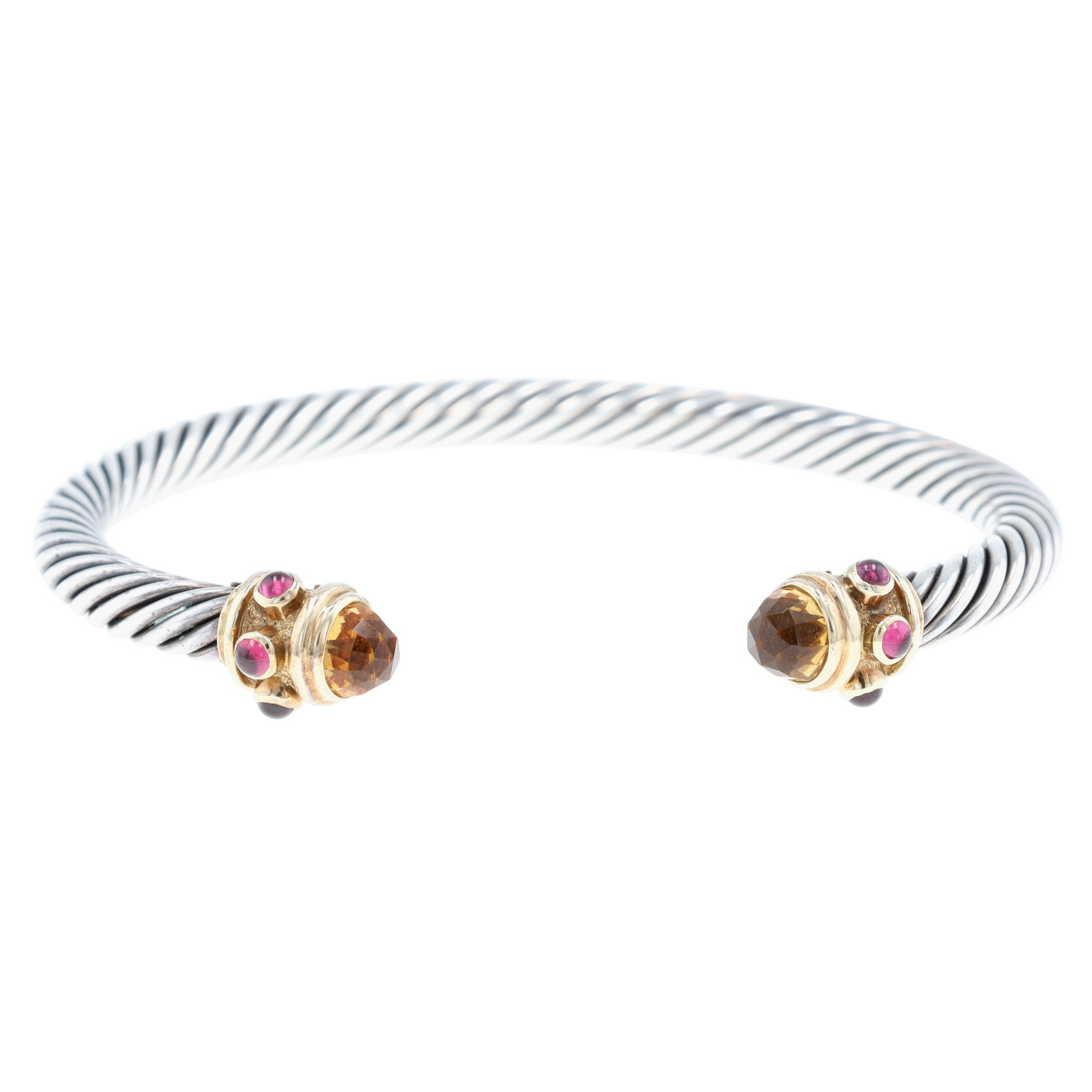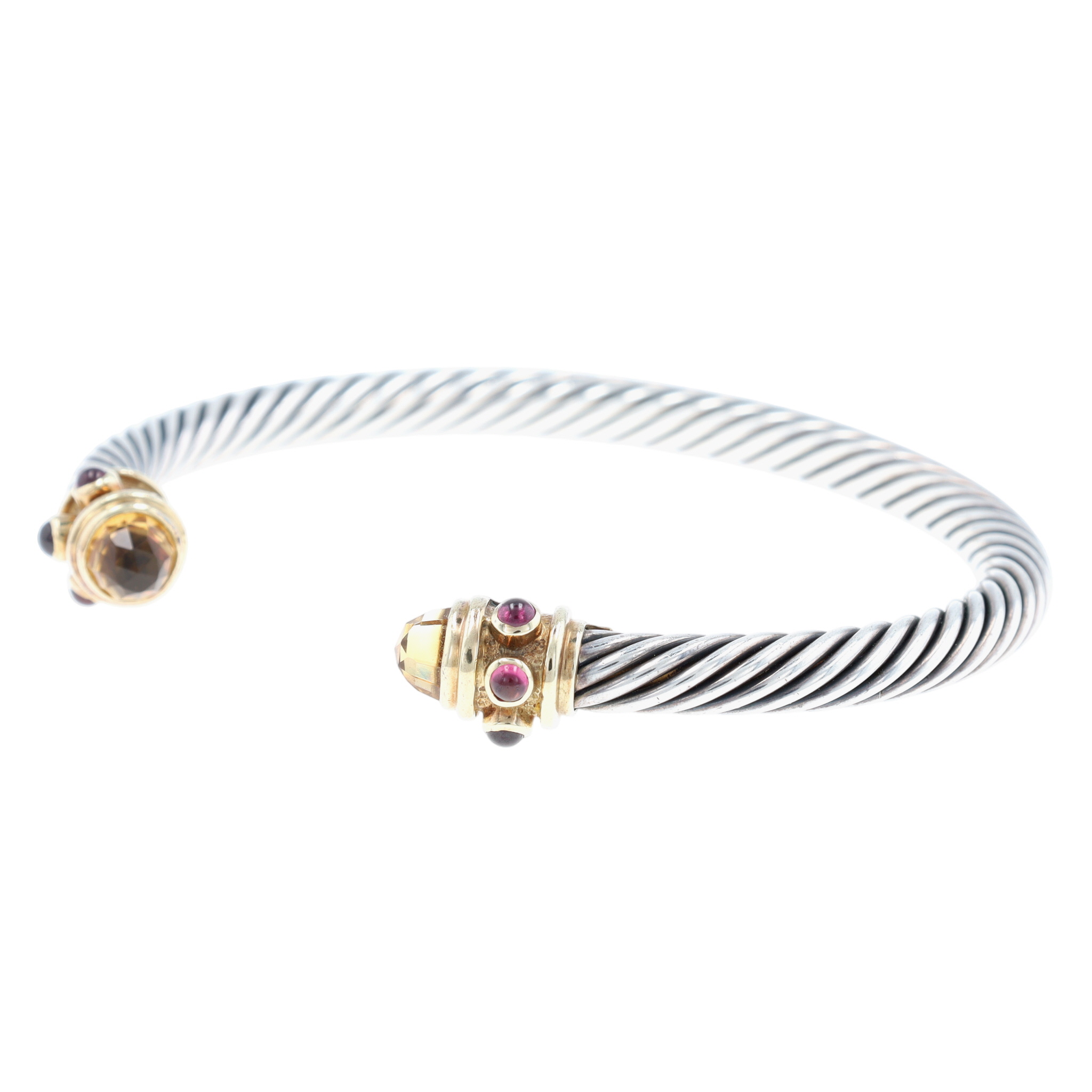 David Yurman Sterling & 14K Gold Citrine and Rhodolite Renaissance Cuff Bracelet, approx 5mm | 29g