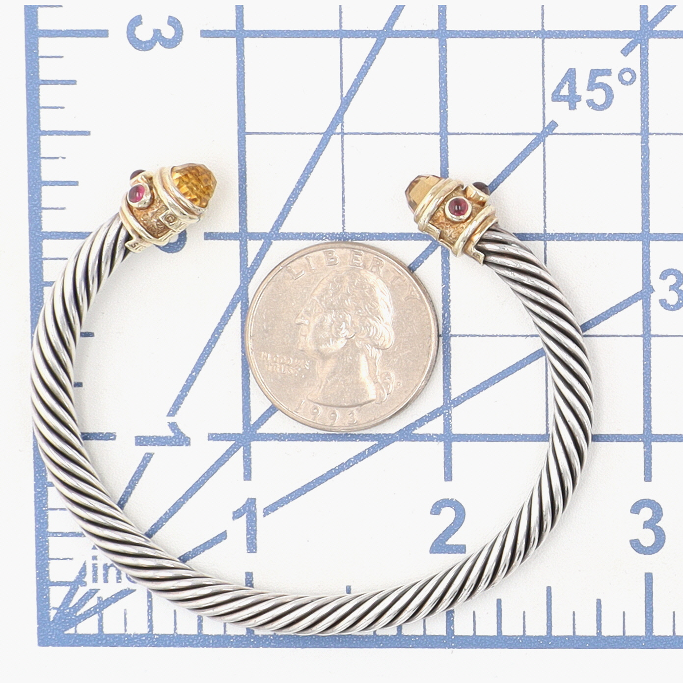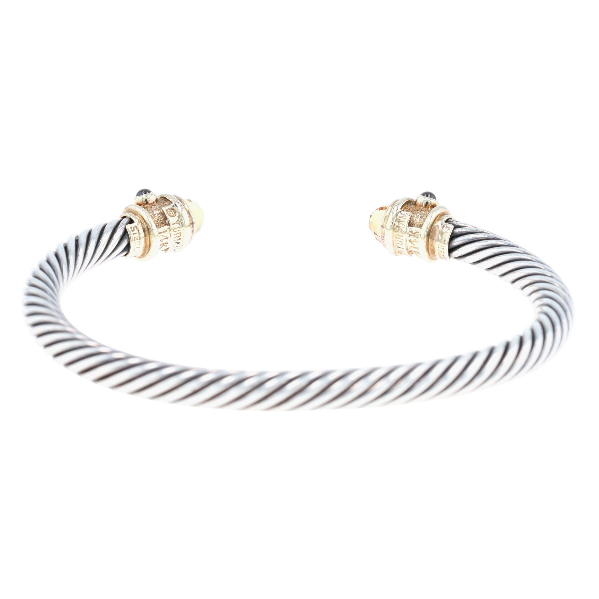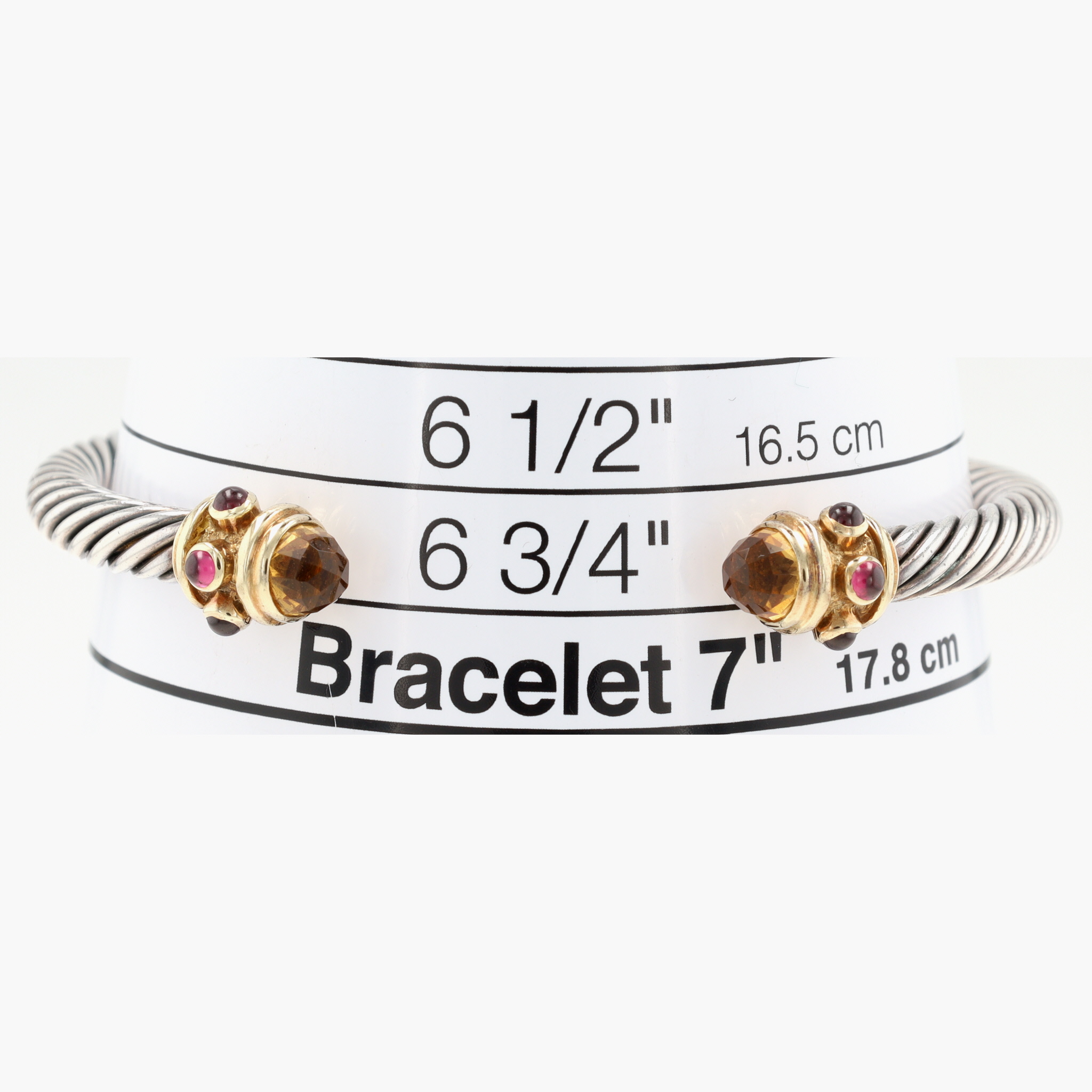 David Yurman Sterling & 14K Gold Citrine and Rhodolite Renaissance Cuff Bracelet, approx 5mm | 29g