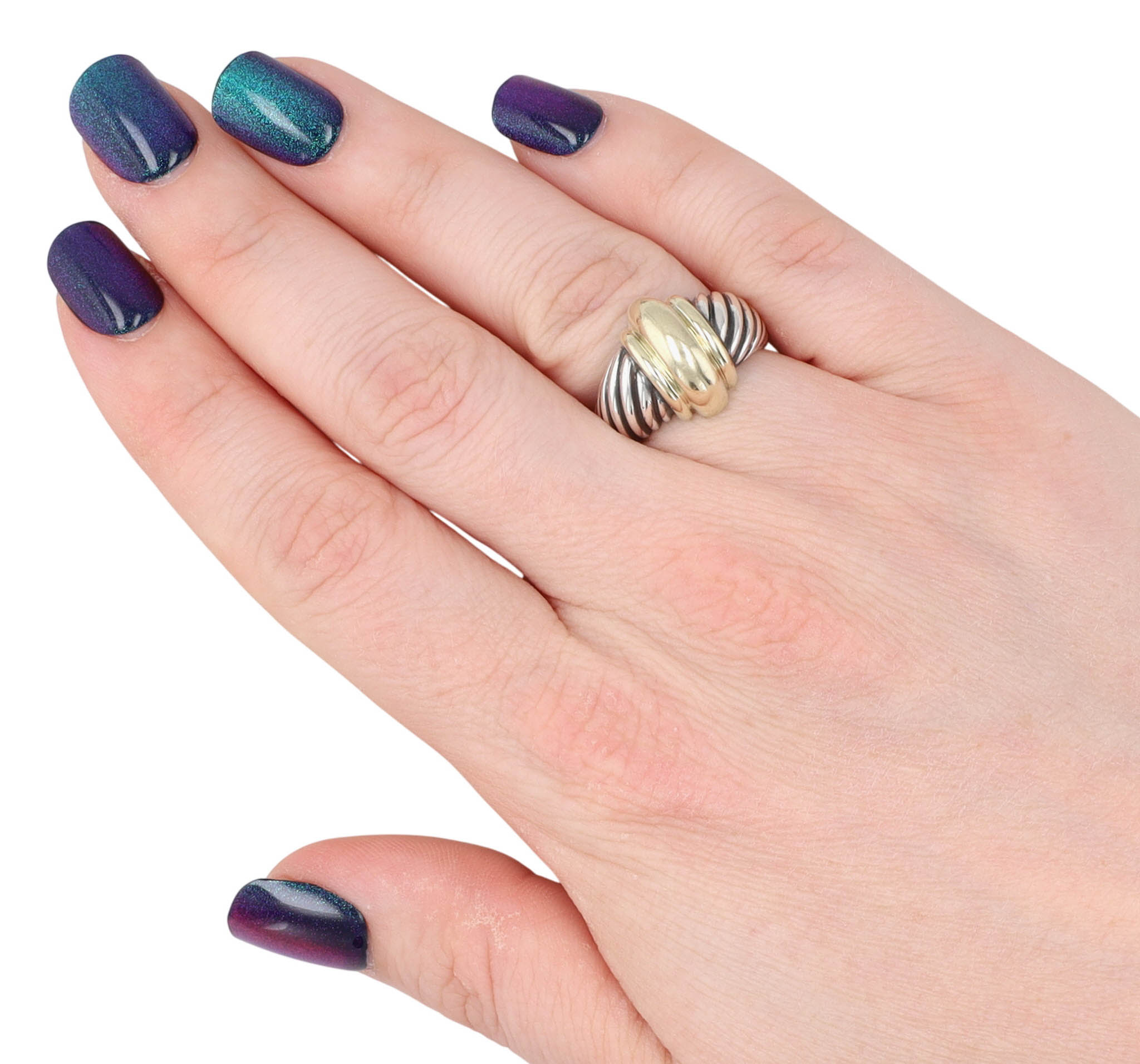 David Yurman Sterling & 14K Gold Thoroughbred Dome Ring Sz 6 | 8.4g