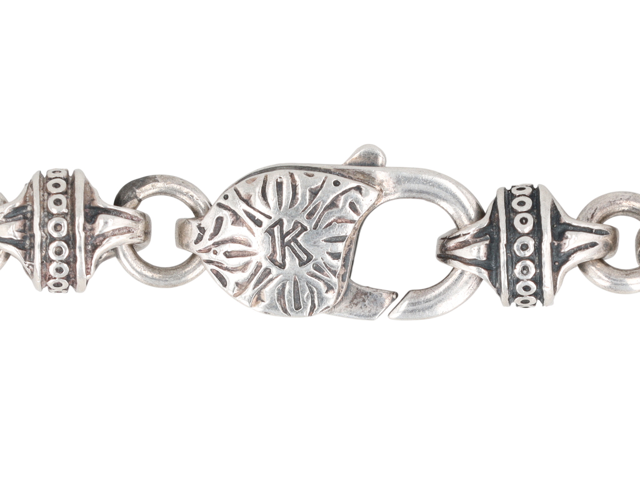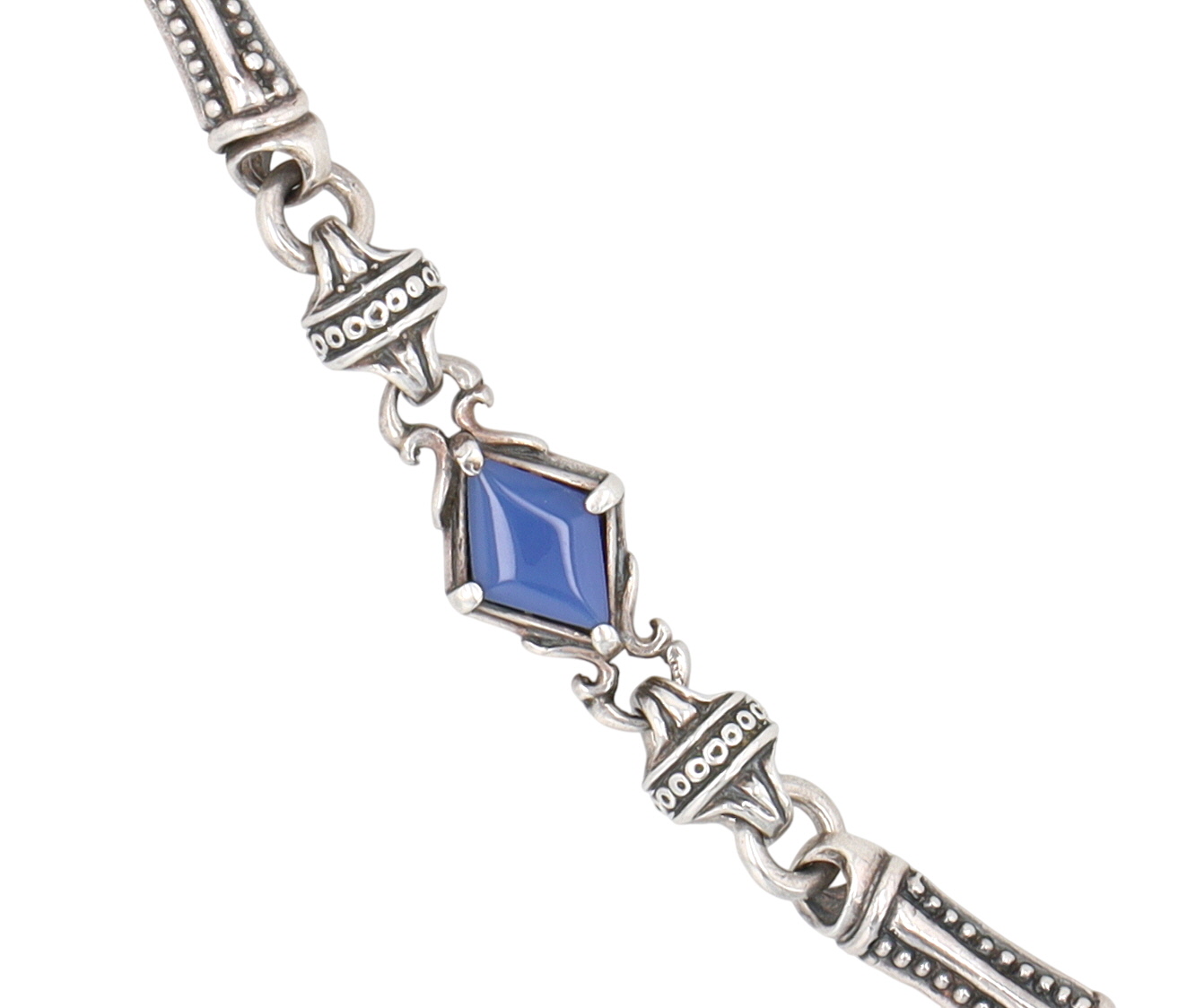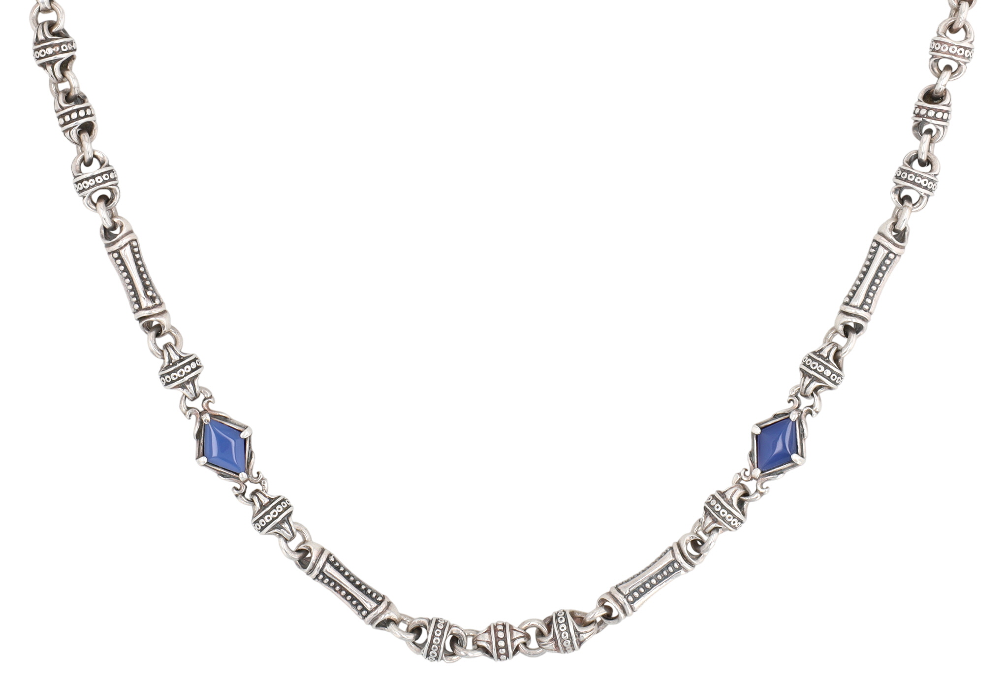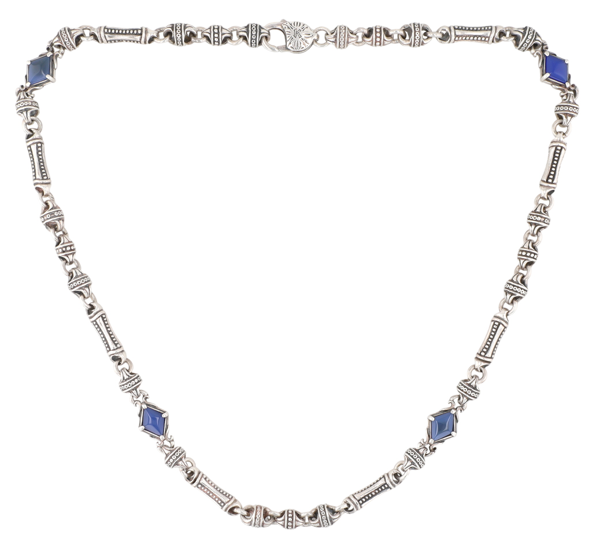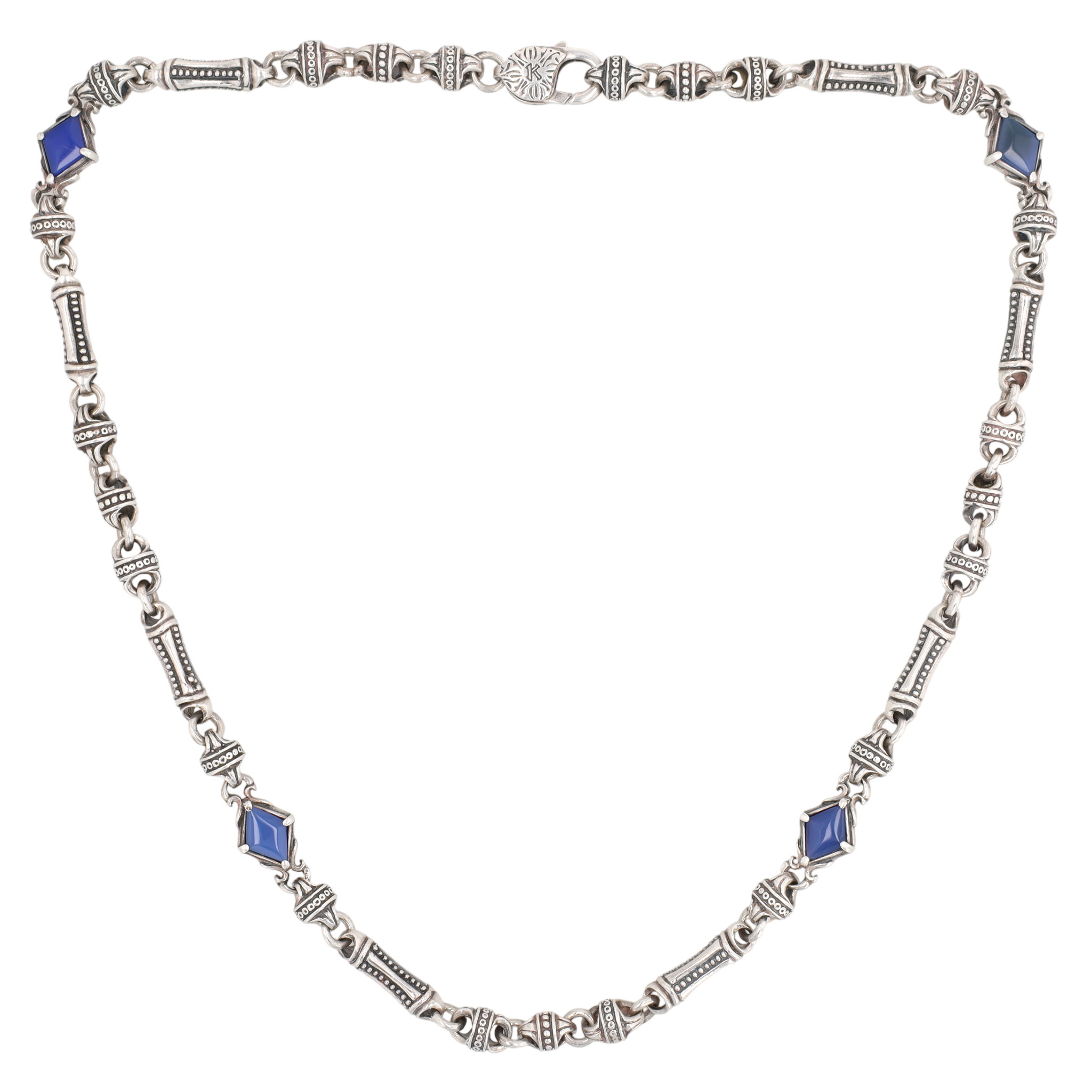 Wow! Konstantino Sterling Blue Agate Etched Link Necklace | 76.7g | approx. 20″ length unclasped