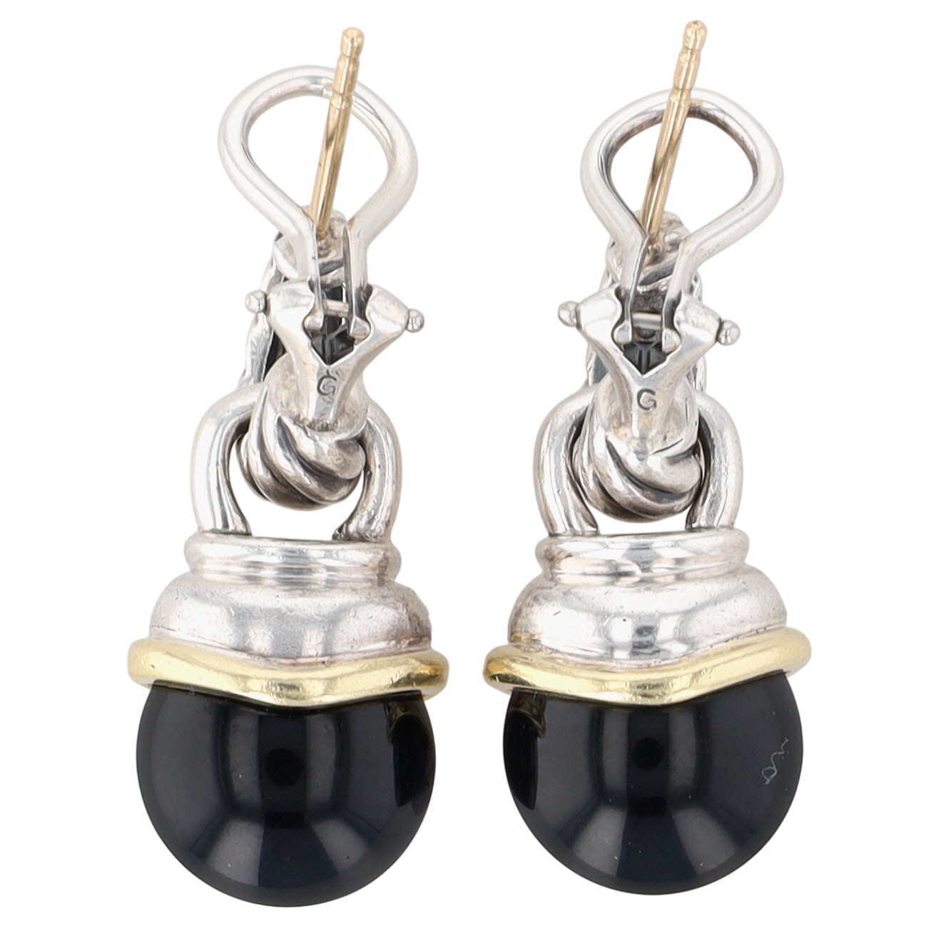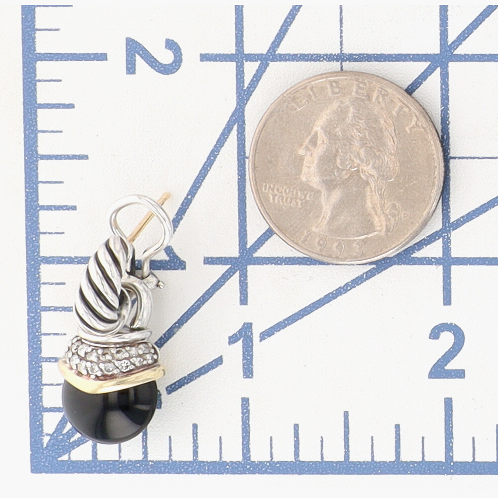 David Yurman Sterling & 18K Gold Diamond Onyx Acorn Earrings | 13.1g