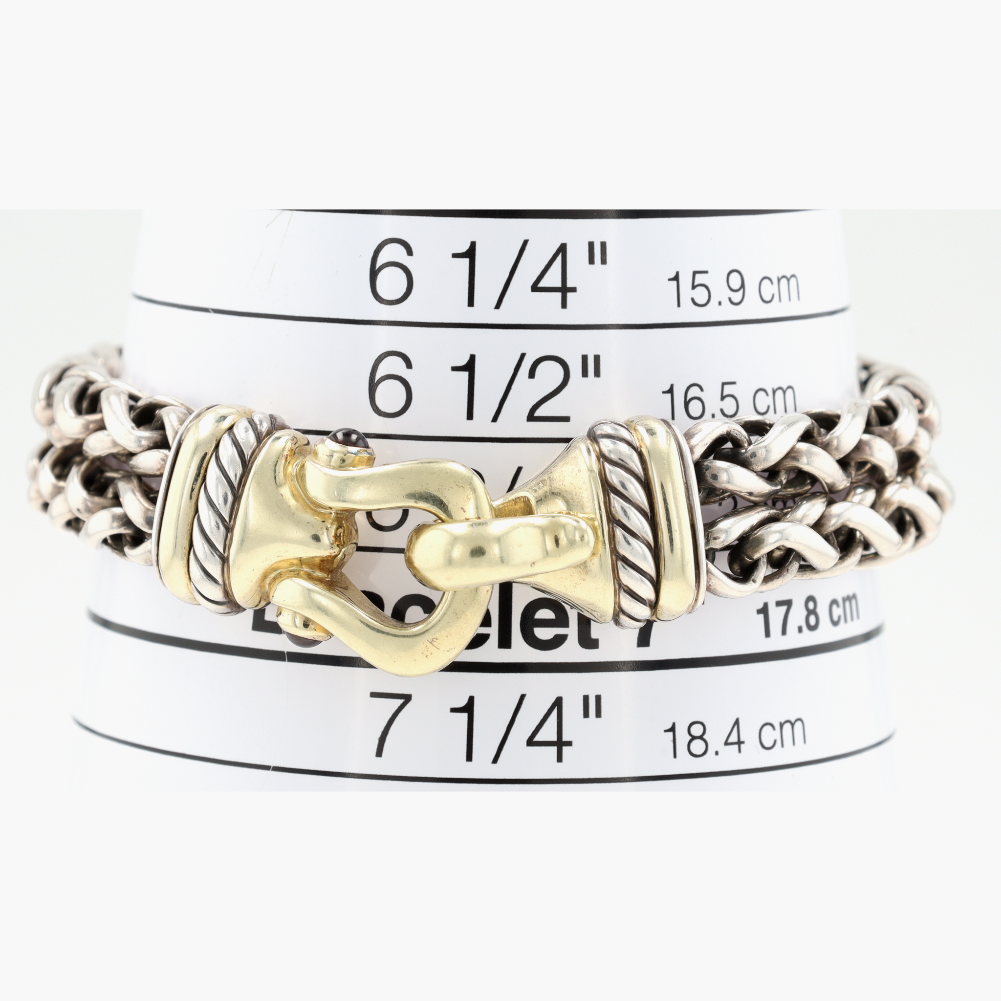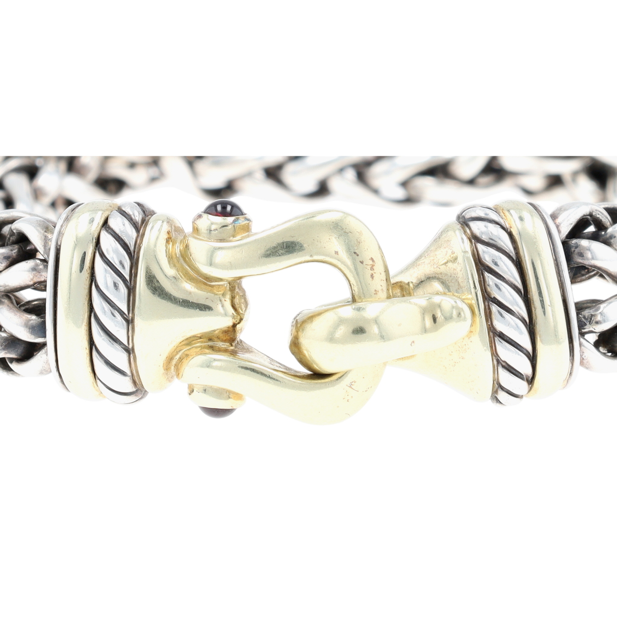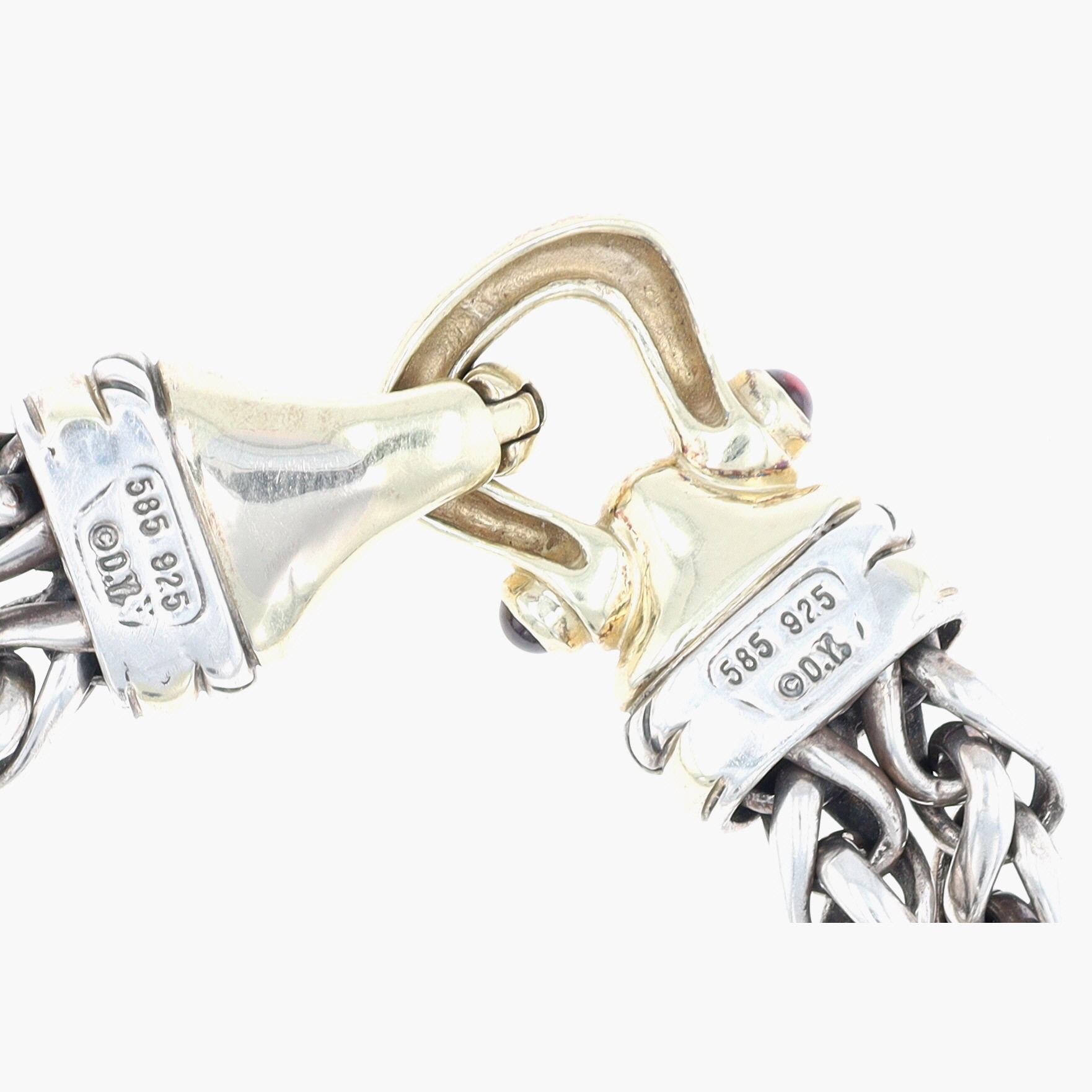 David Yurman Sterling & 14K Gold Rhodolite Double Wheat Chain Cable Buckle Bracelet | 54.8g | approx 7.75″ unclasped | Double chain with each chain at approx 6mm