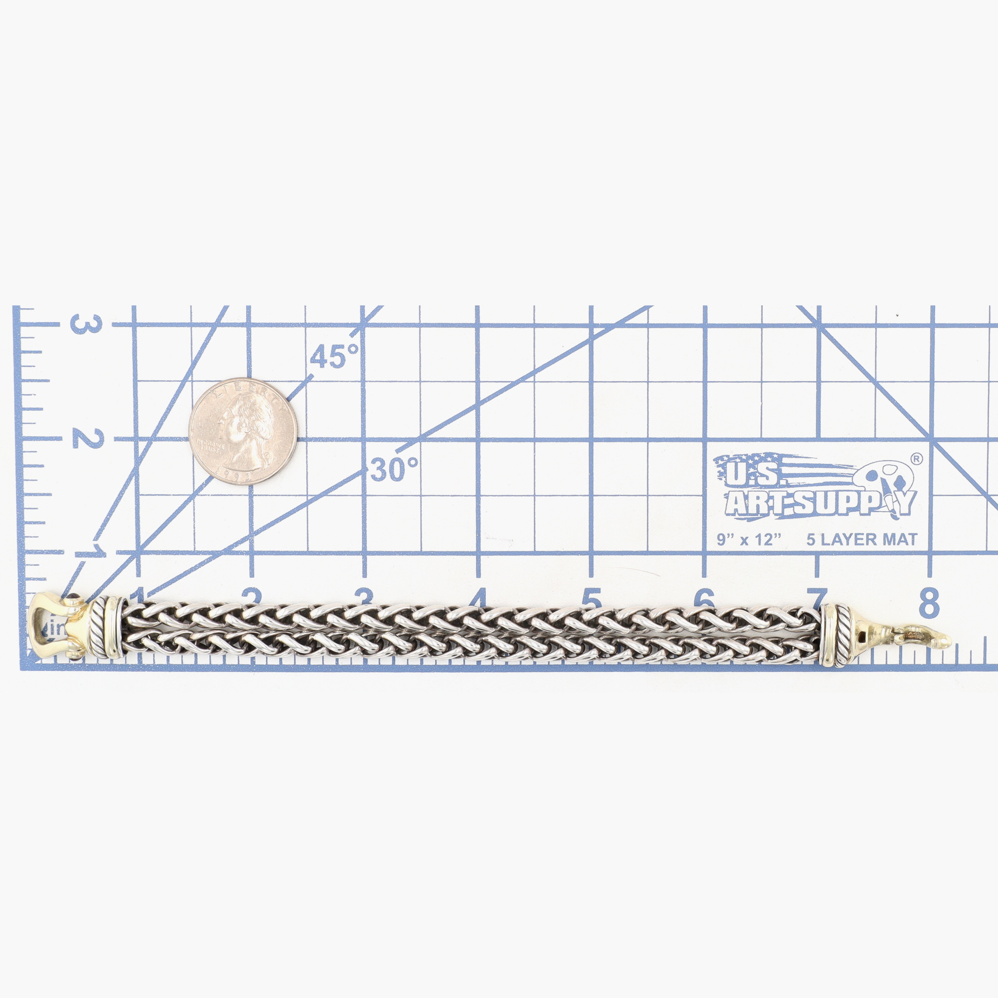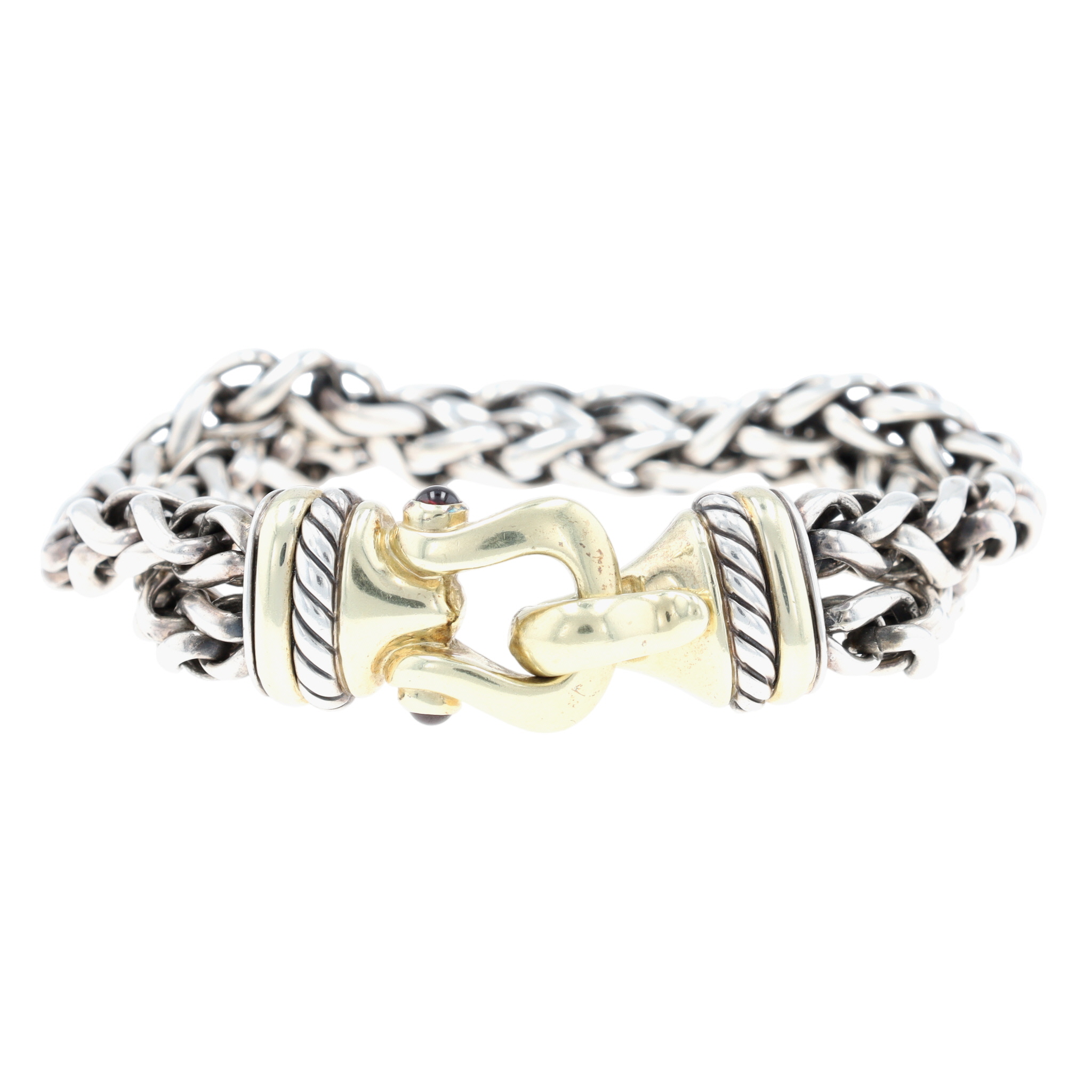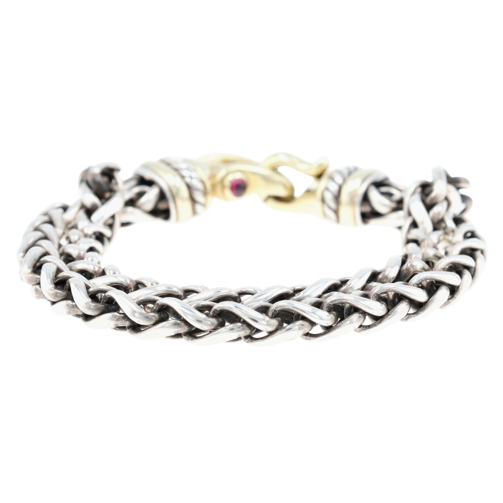 David Yurman Sterling & 14K Gold Rhodolite Double Wheat Chain Cable Buckle Bracelet | 54.8g | approx 7.75″ unclasped | Double chain with each chain at approx 6mm