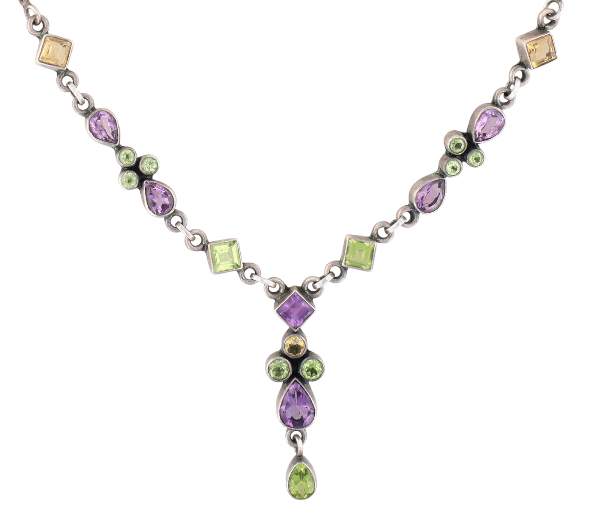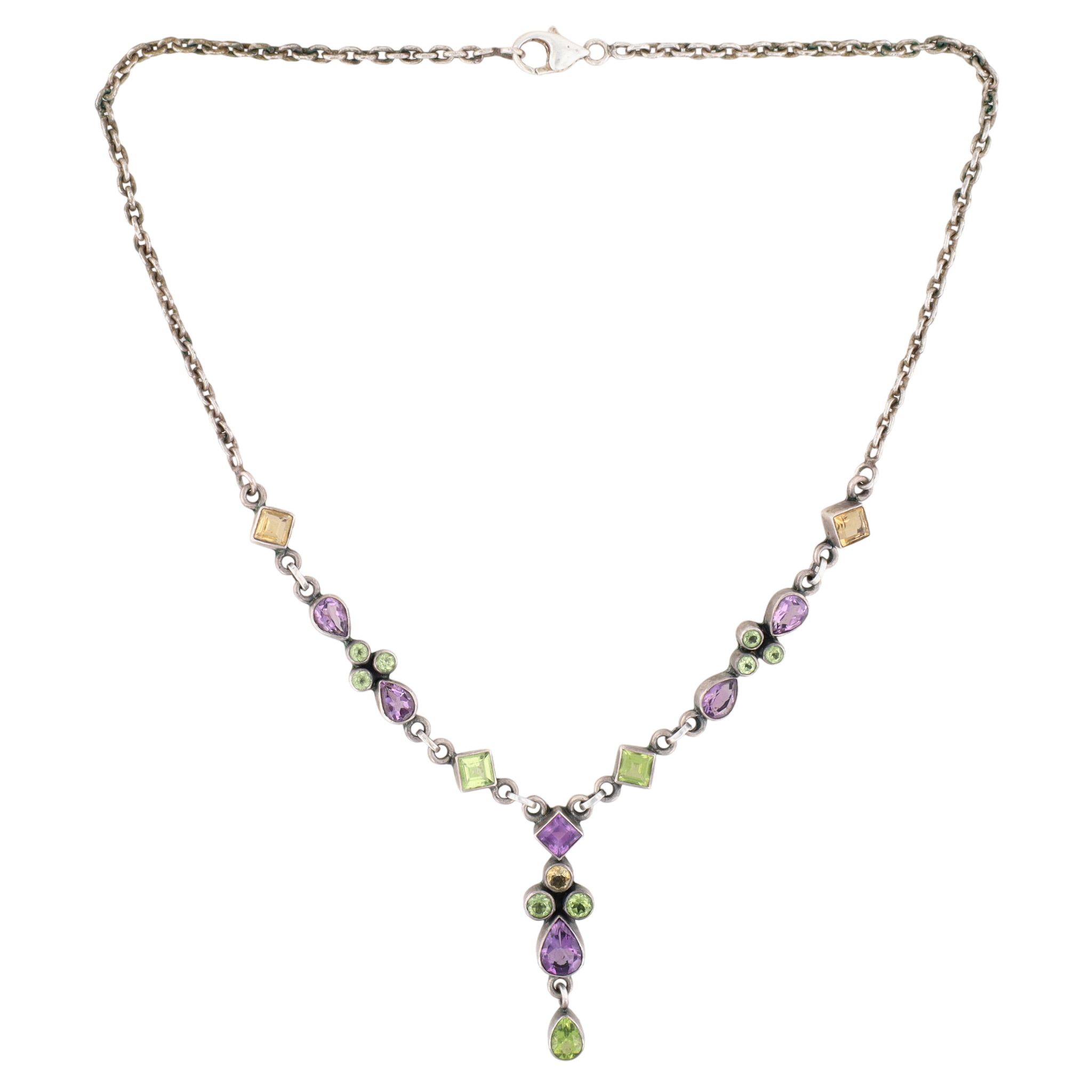 Nicky Butler Amethyst, Peridot, Citrine Dangle Necklace | 17.4g