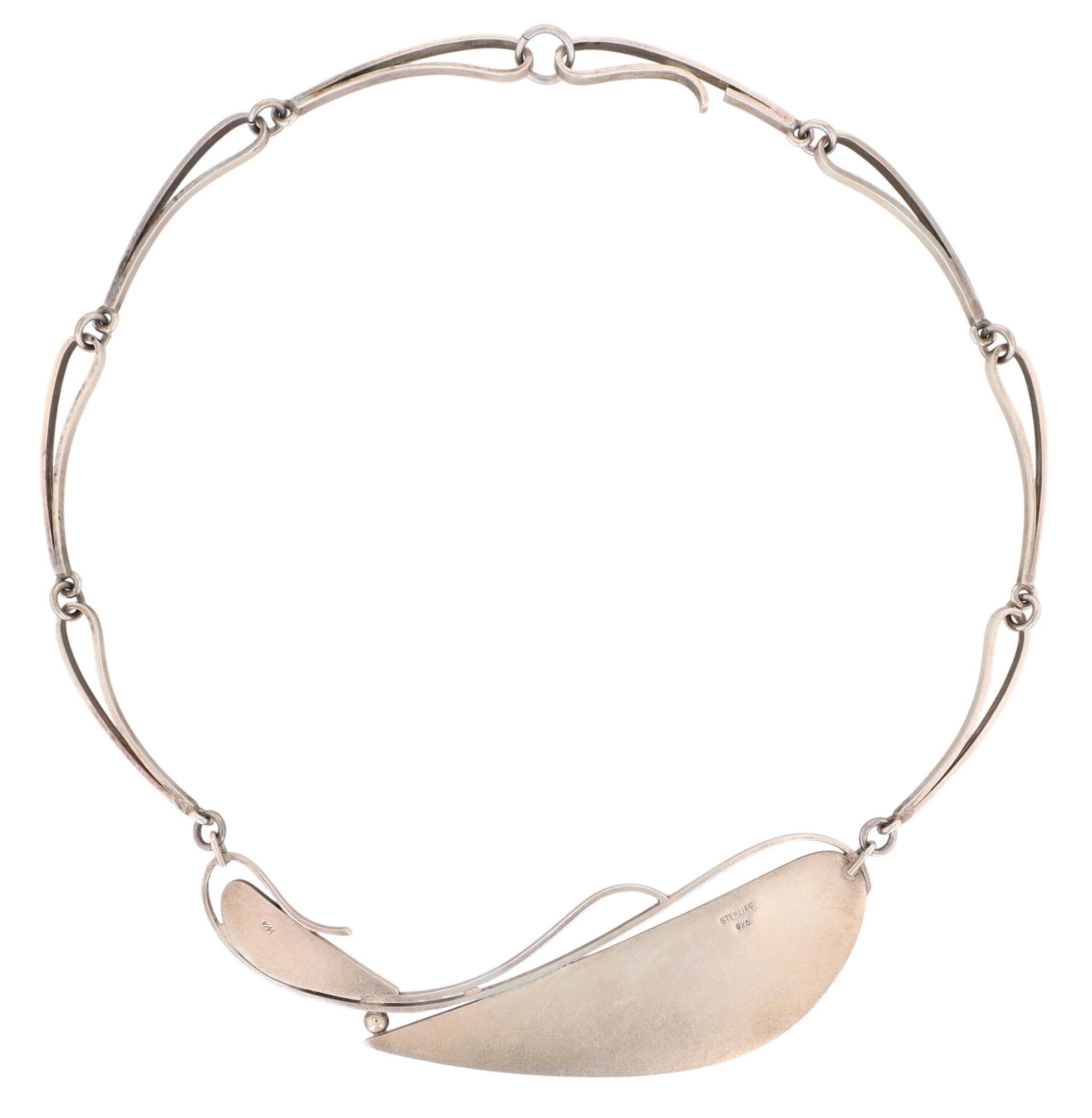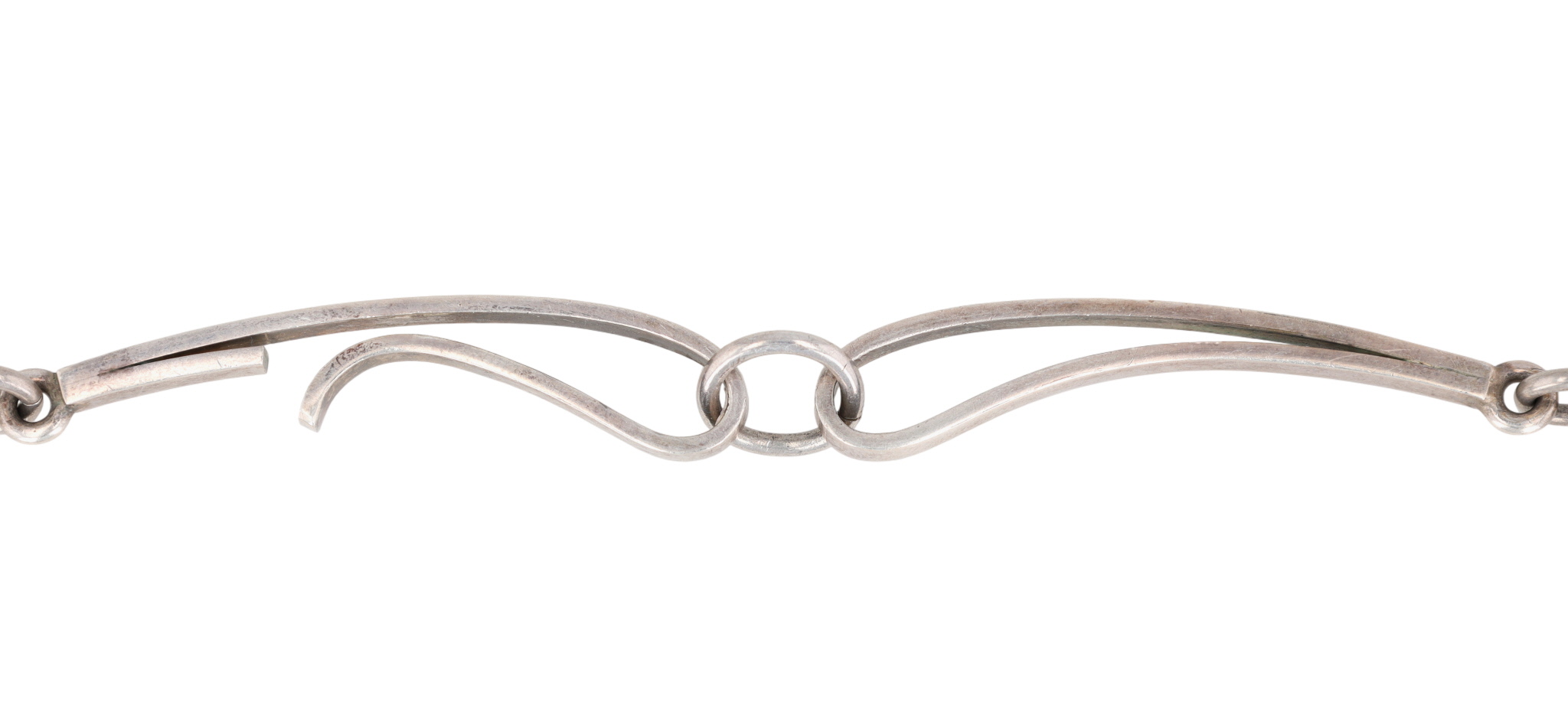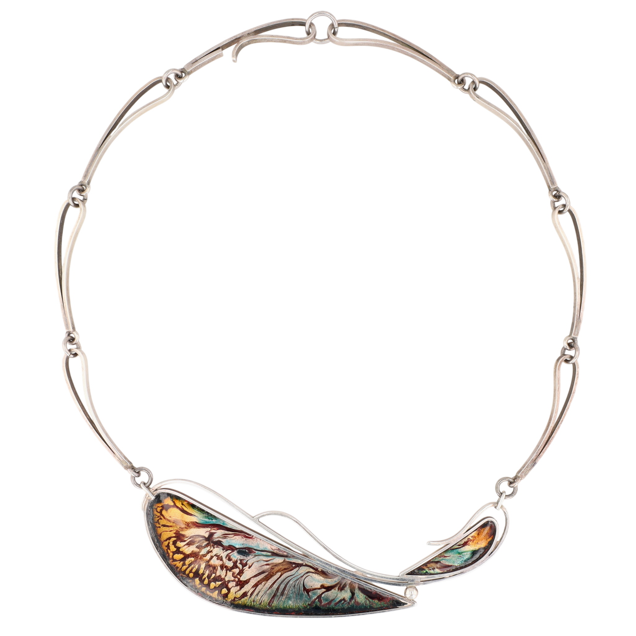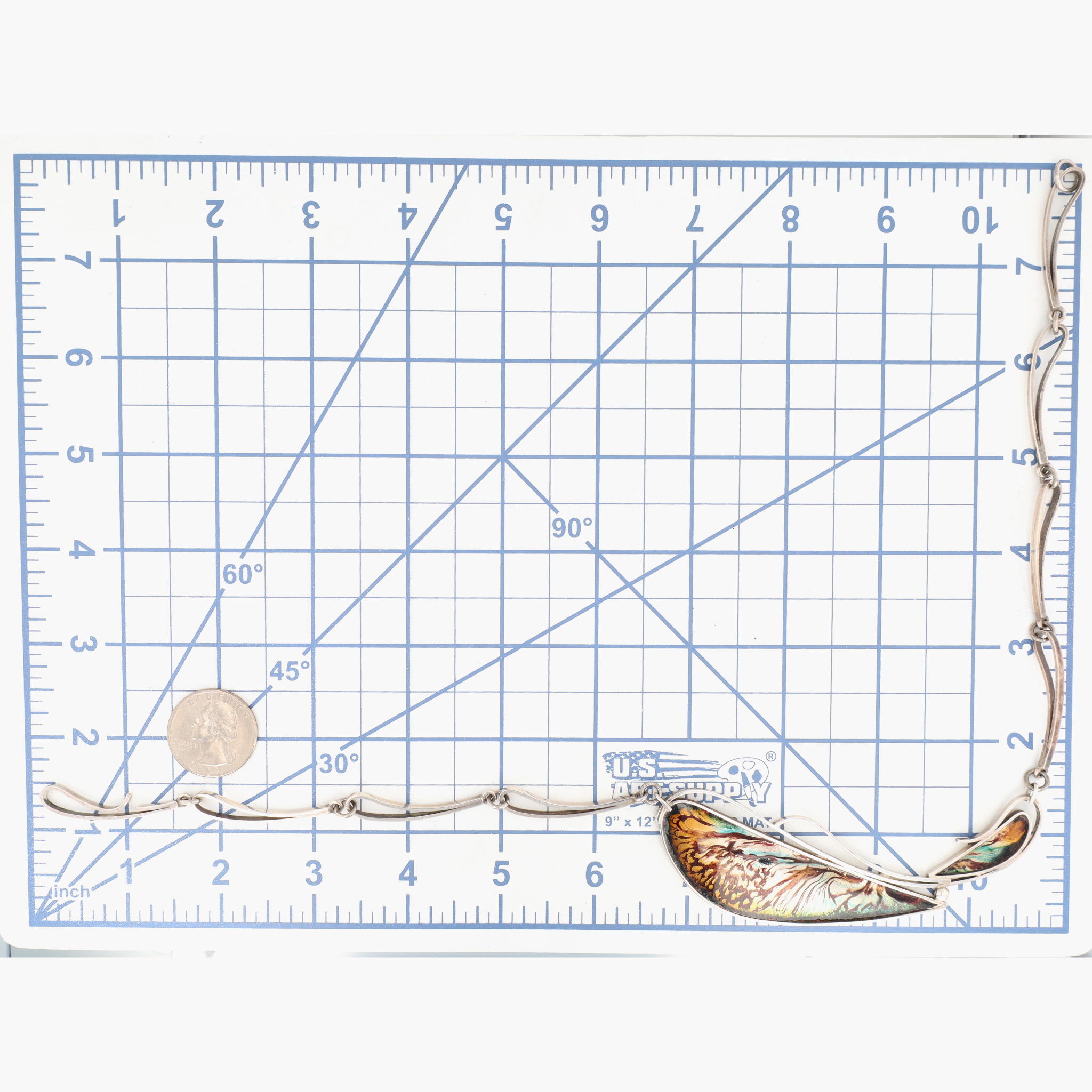 Signed Designer Sterling Enamel Modernist/Art Nouveau Style Necklace | 37g | approx 17″, pendant piece is approx. 4.1″l