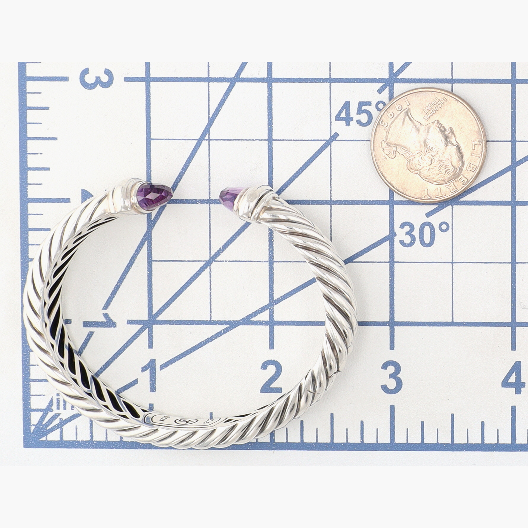 David Yurman Sterling Amethyst Waverly Cuff Bracelet