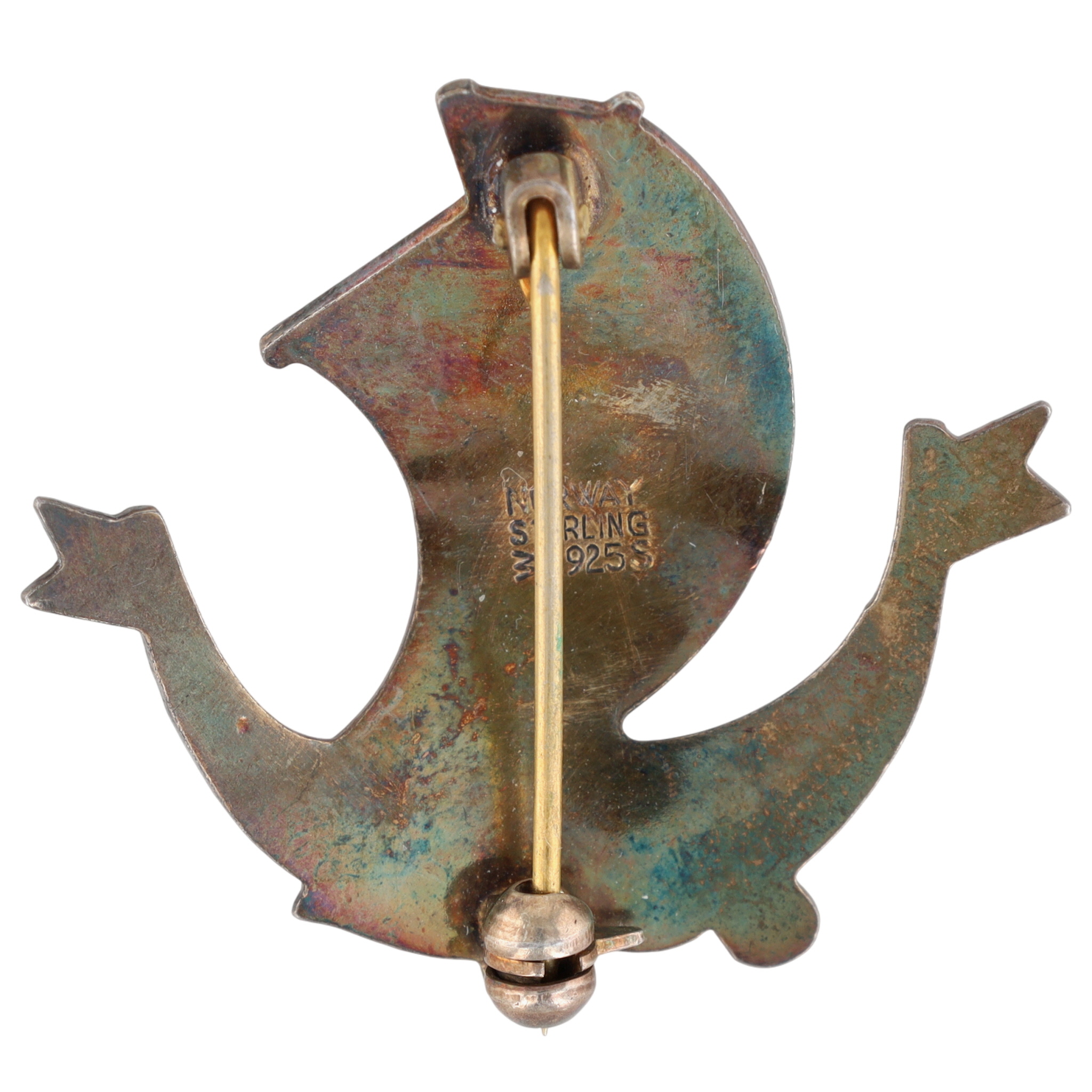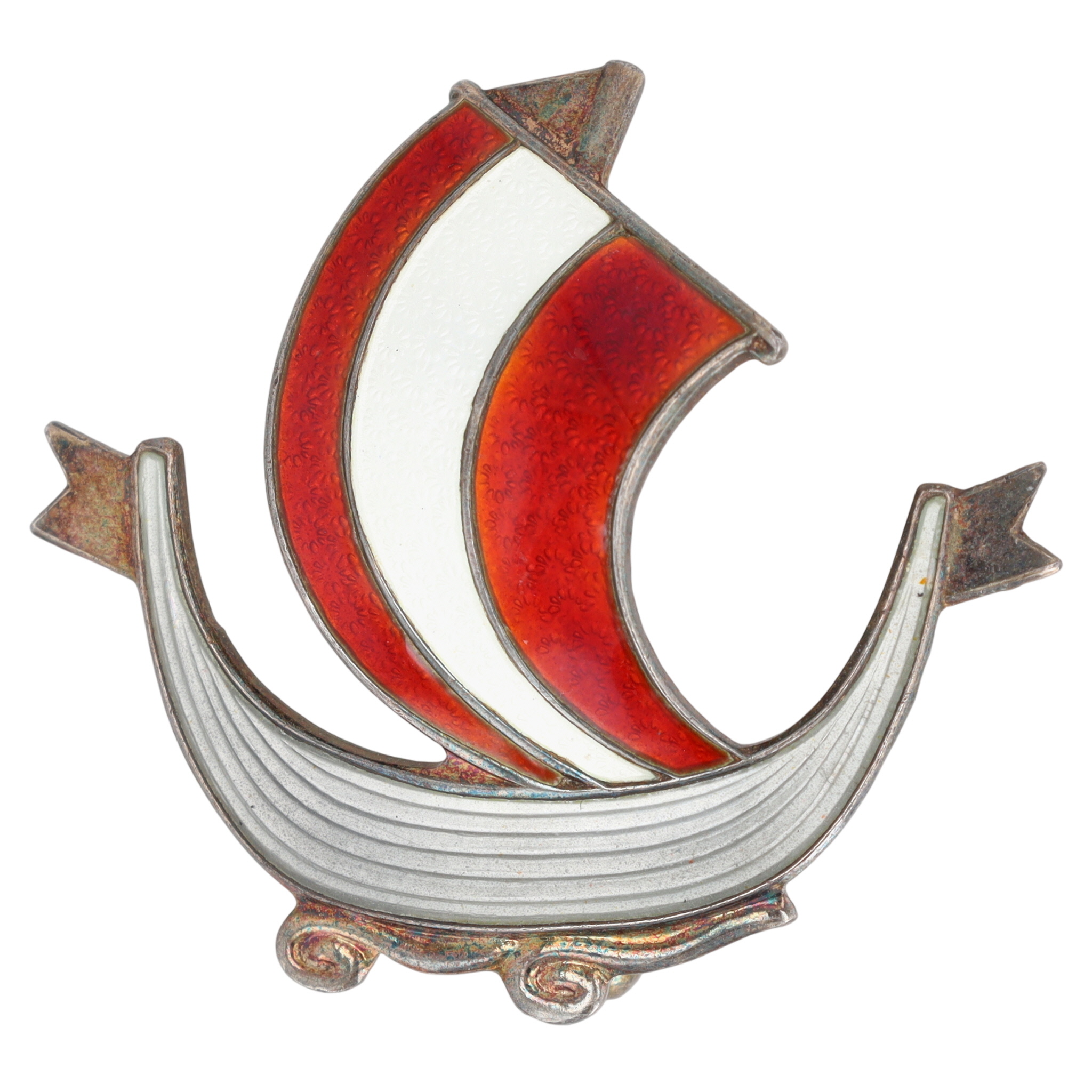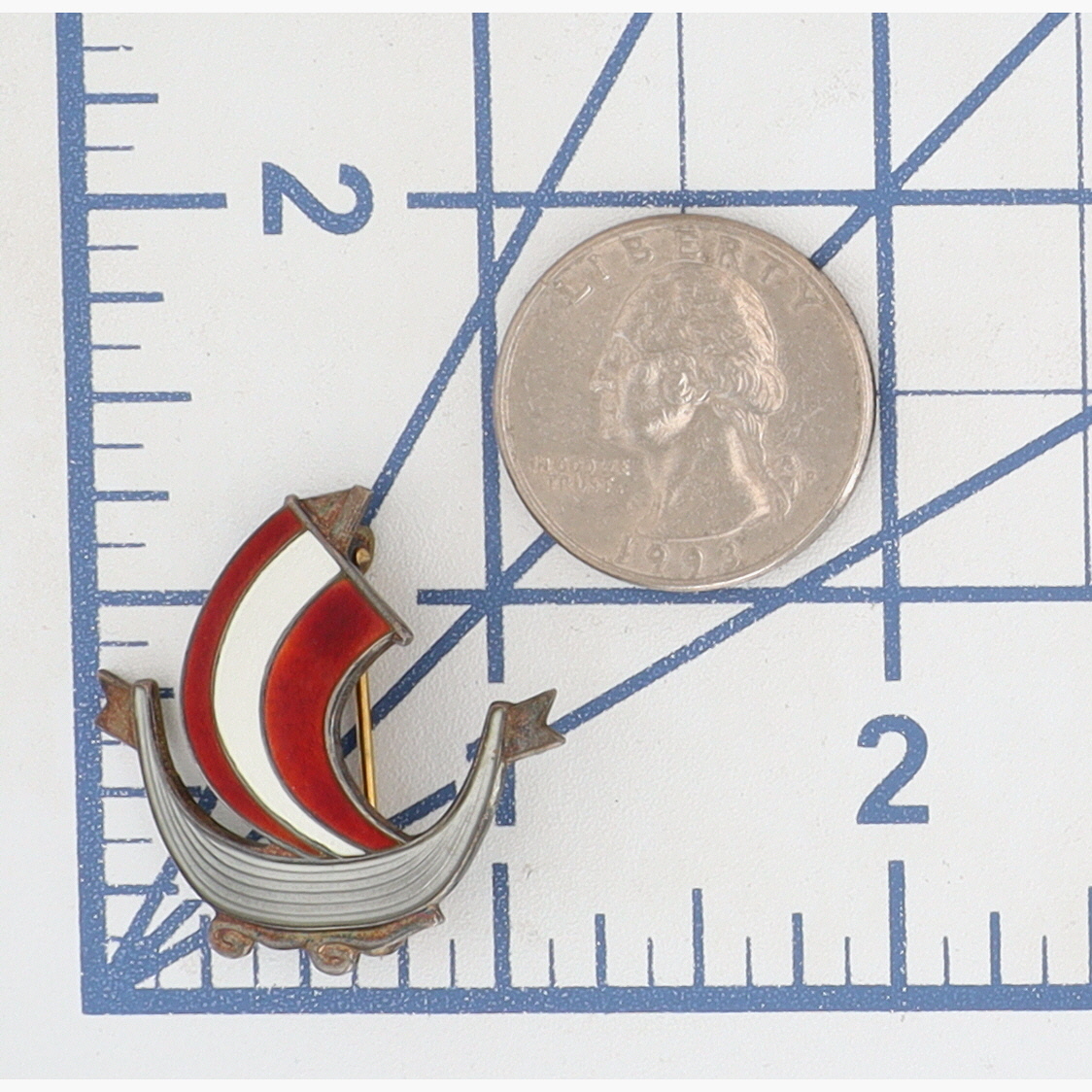 Vintage Aksel Holmsen Norway Sterling Enamel Ship Brooch | 4.6g