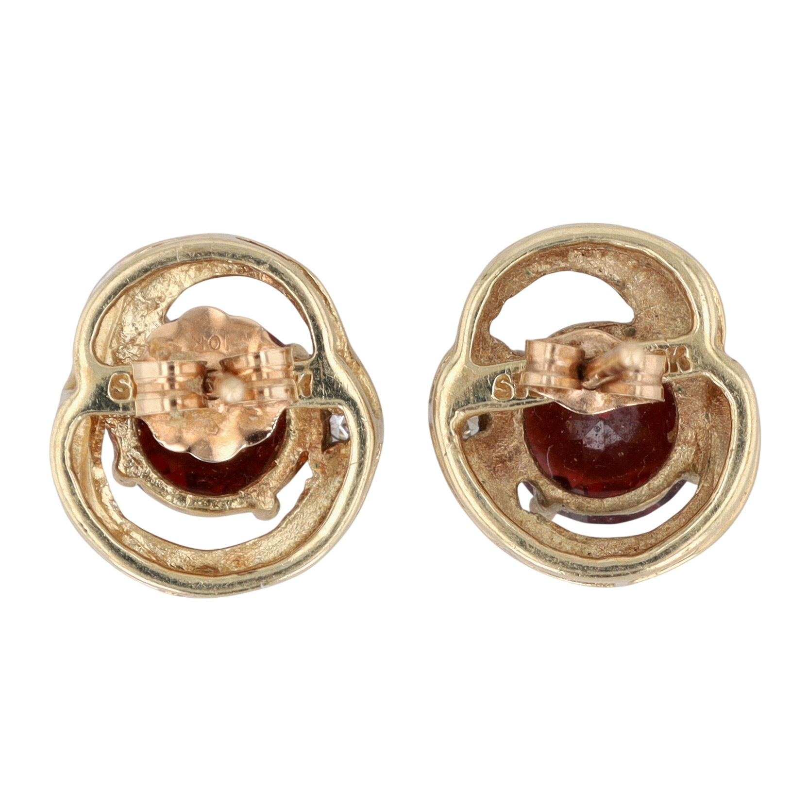 10K Gold Diamond and Garnet Earrings | 2.1g