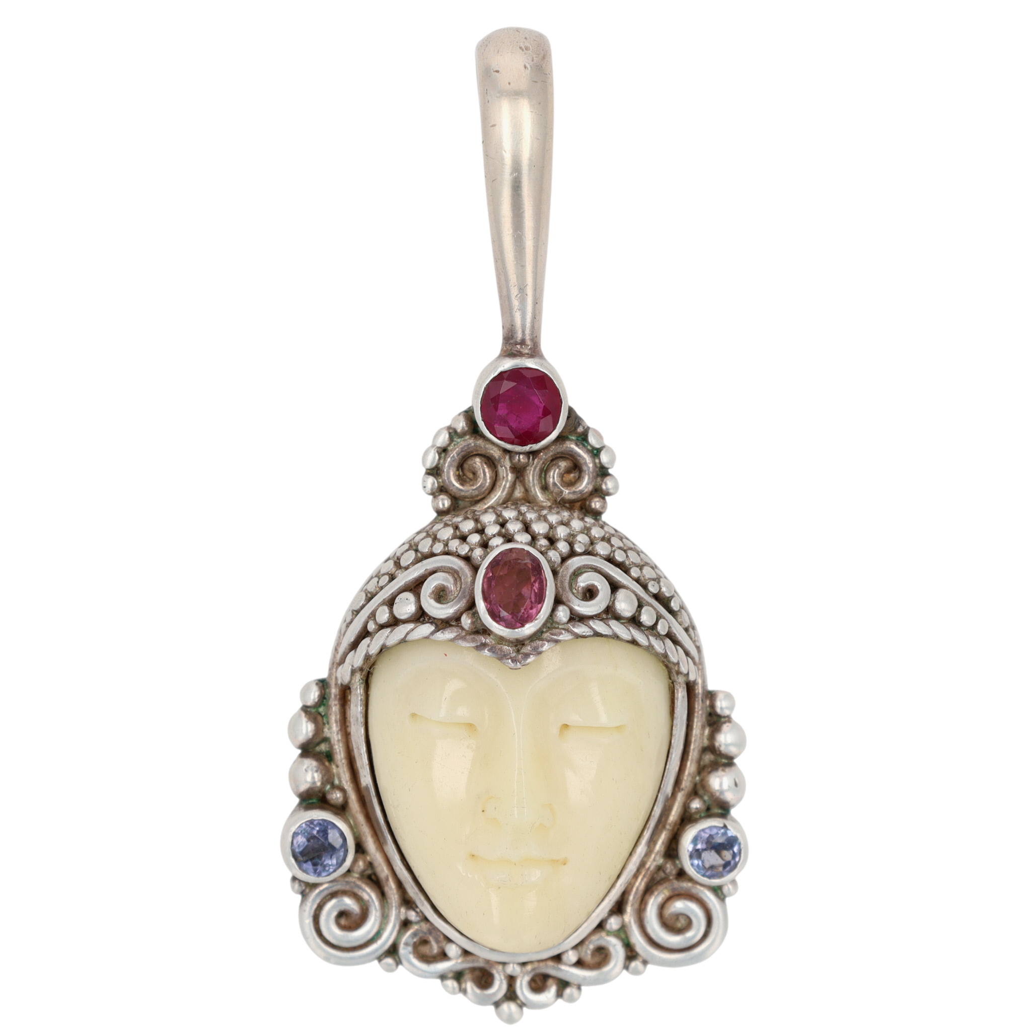 Sajen Sterling Ruby, Amethyst, Iolite Goddess Pendant | 12.6g