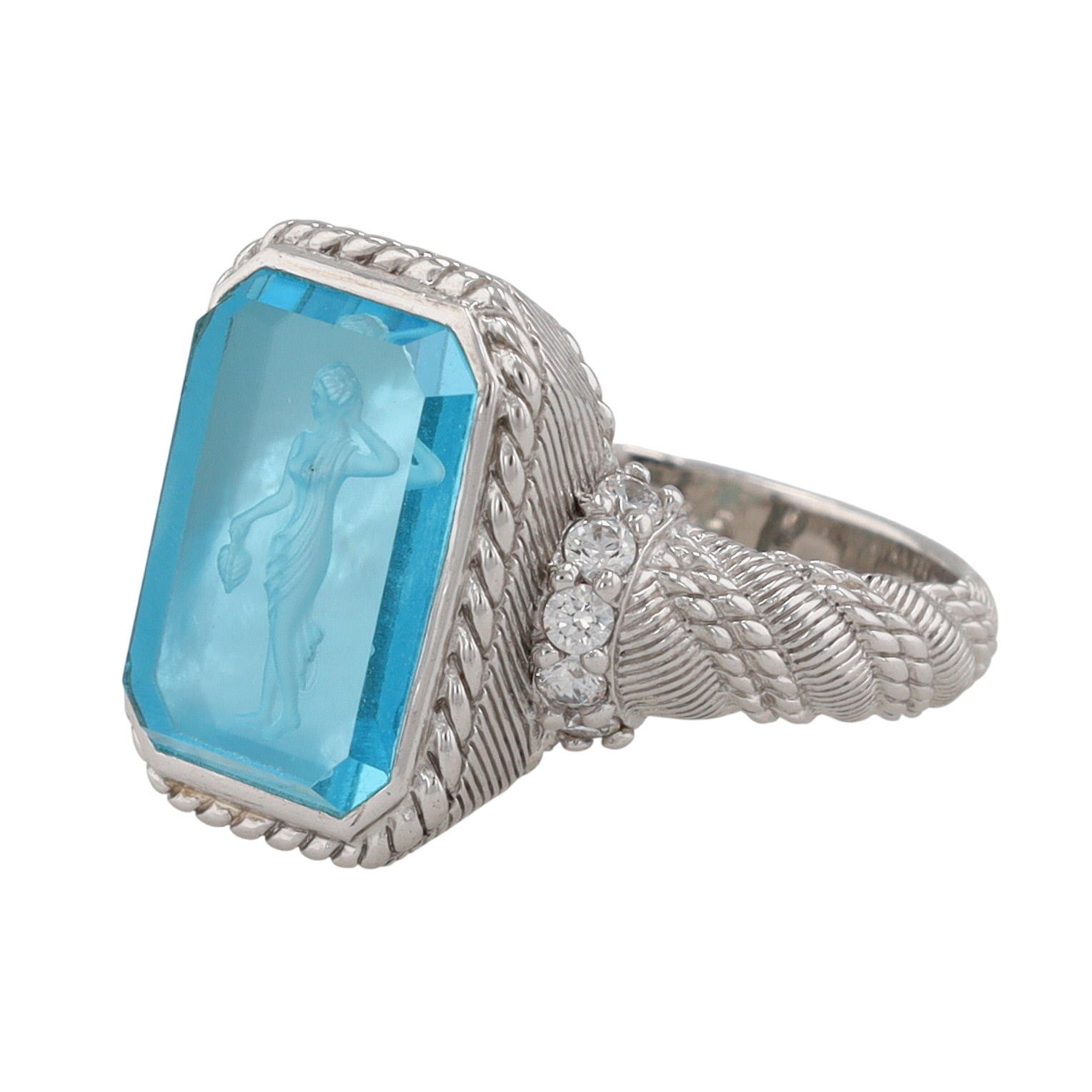Judith Ripka Sterling Diamonique Intaglio Doublet Ring Sz 8 | 8.1g