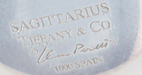 Tiffany & Co. Elsa Peretti Sterling Zodiac Sagittarius Necklace, 28″ chain, pendant approx .8″ x 1.1″ | 14.6g | Retail: $480 on a 16″ chain – this necklace is on a 28″ chain