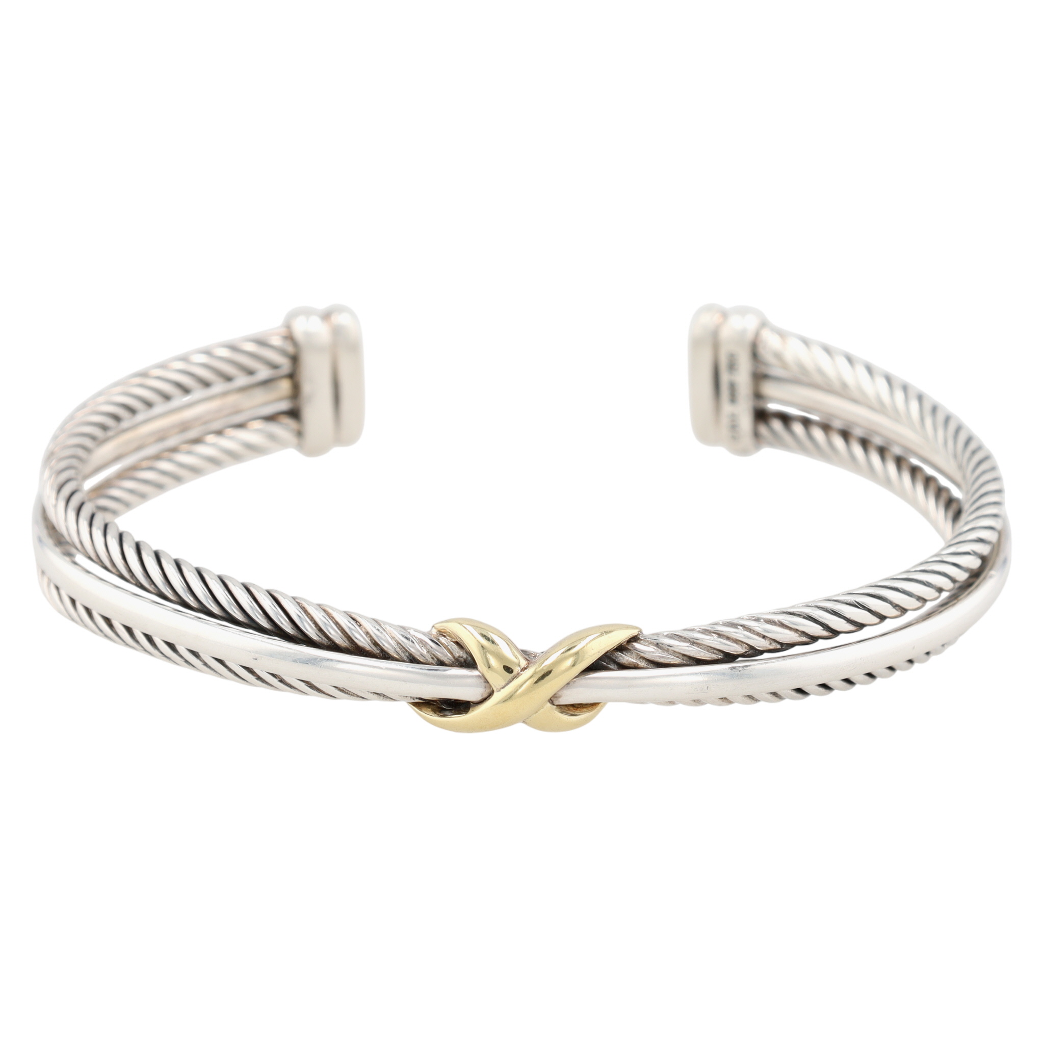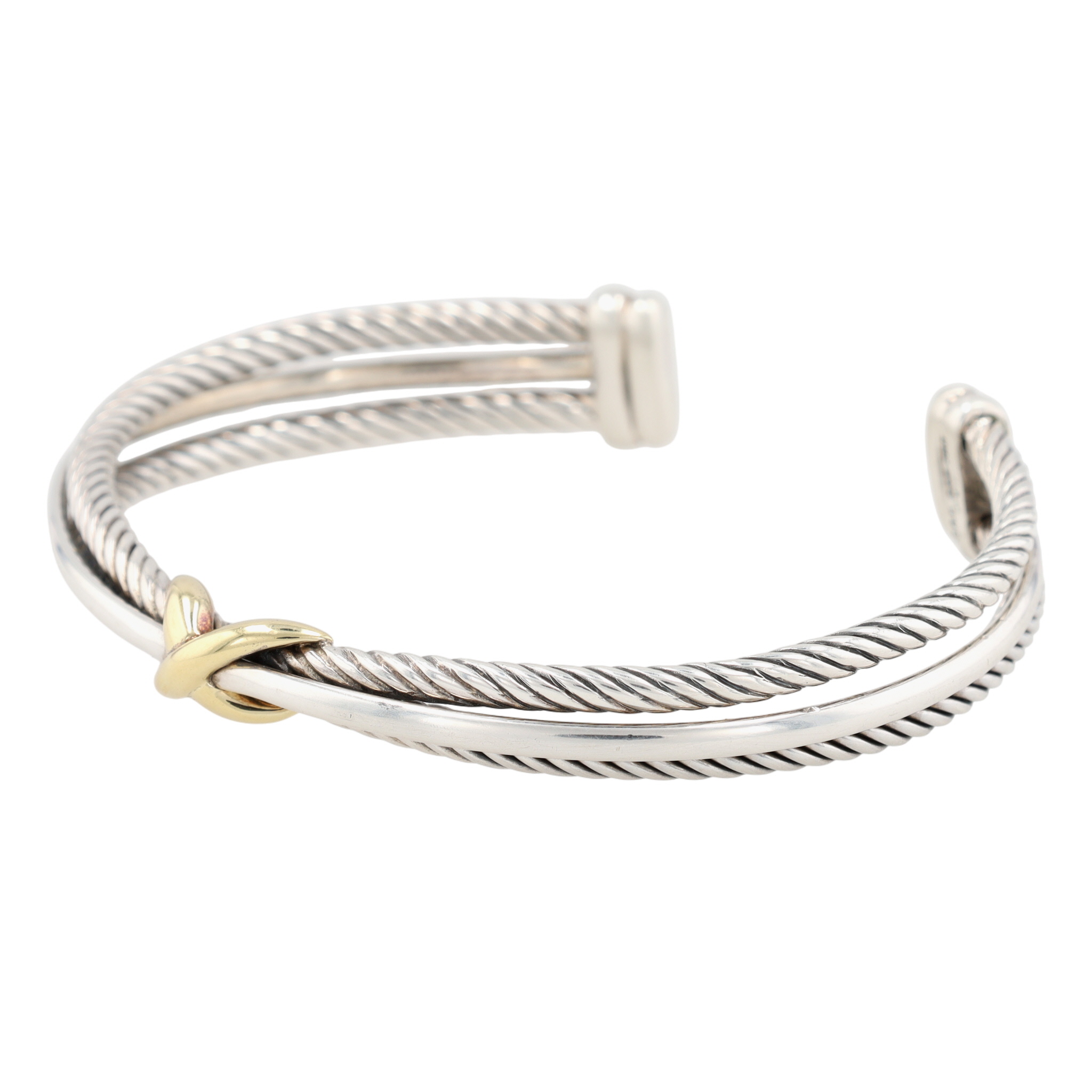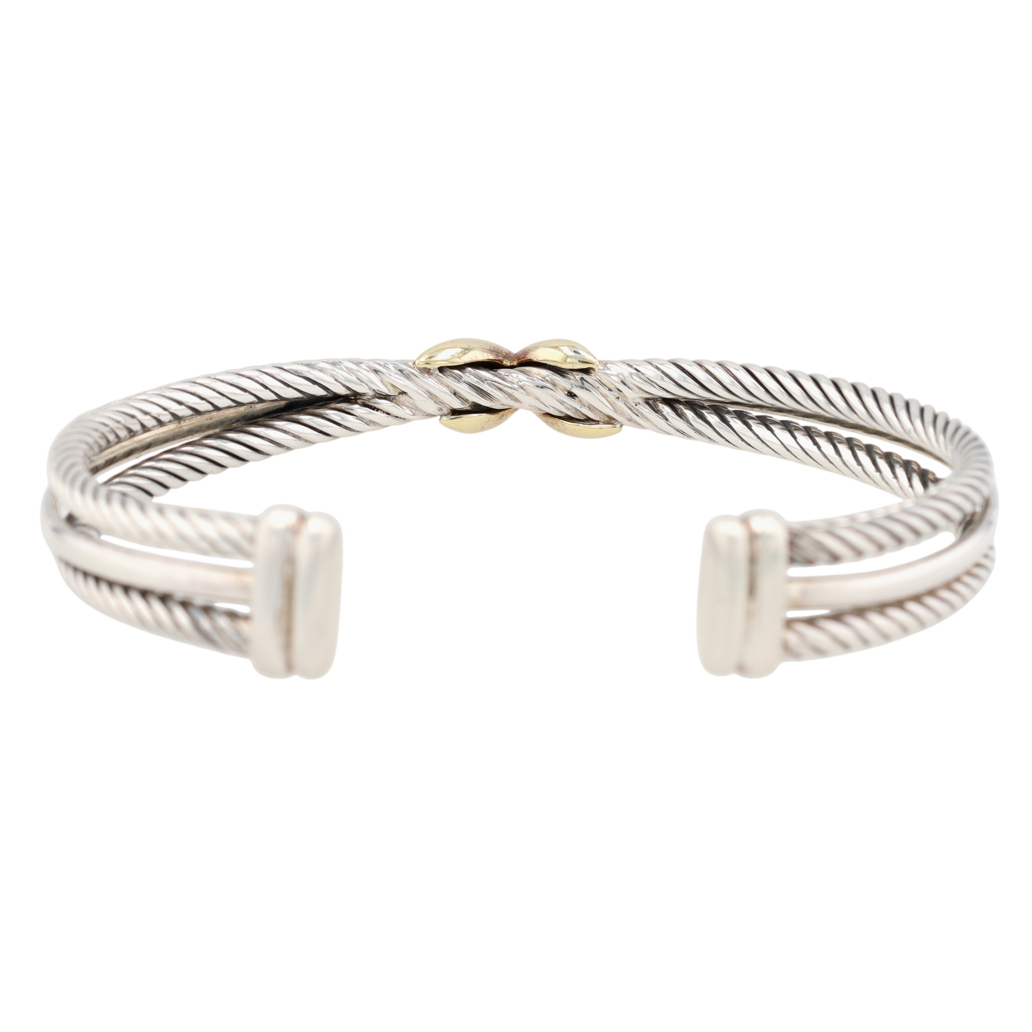 David Yurman Sterling & 18K Gold X Triple Crossover Cuff Bracelet, 6-9mm | 24.1g