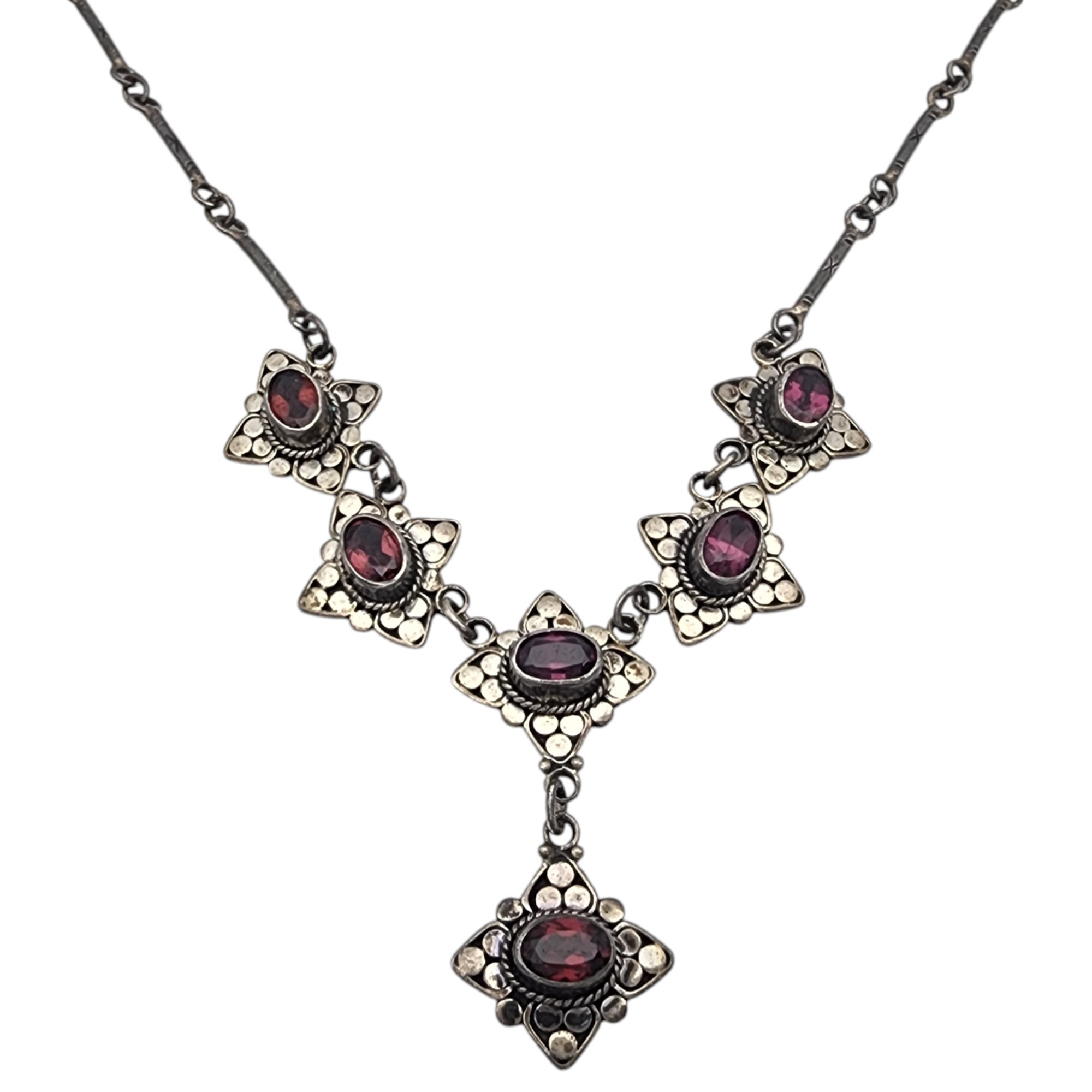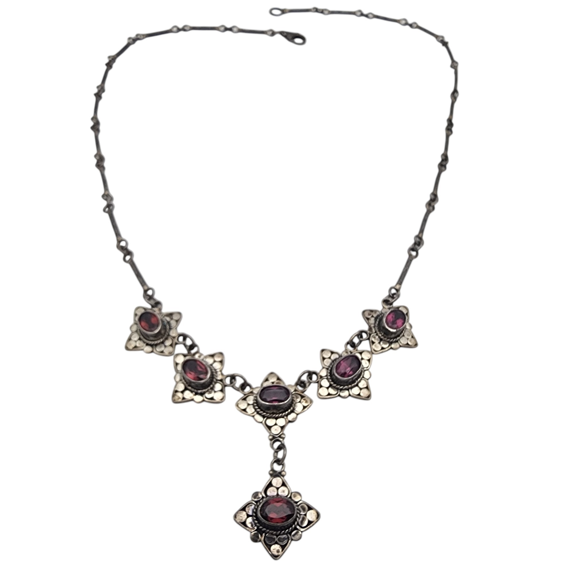 Sterling and Tourmaline/Garnet Drop Necklace – 15.8g