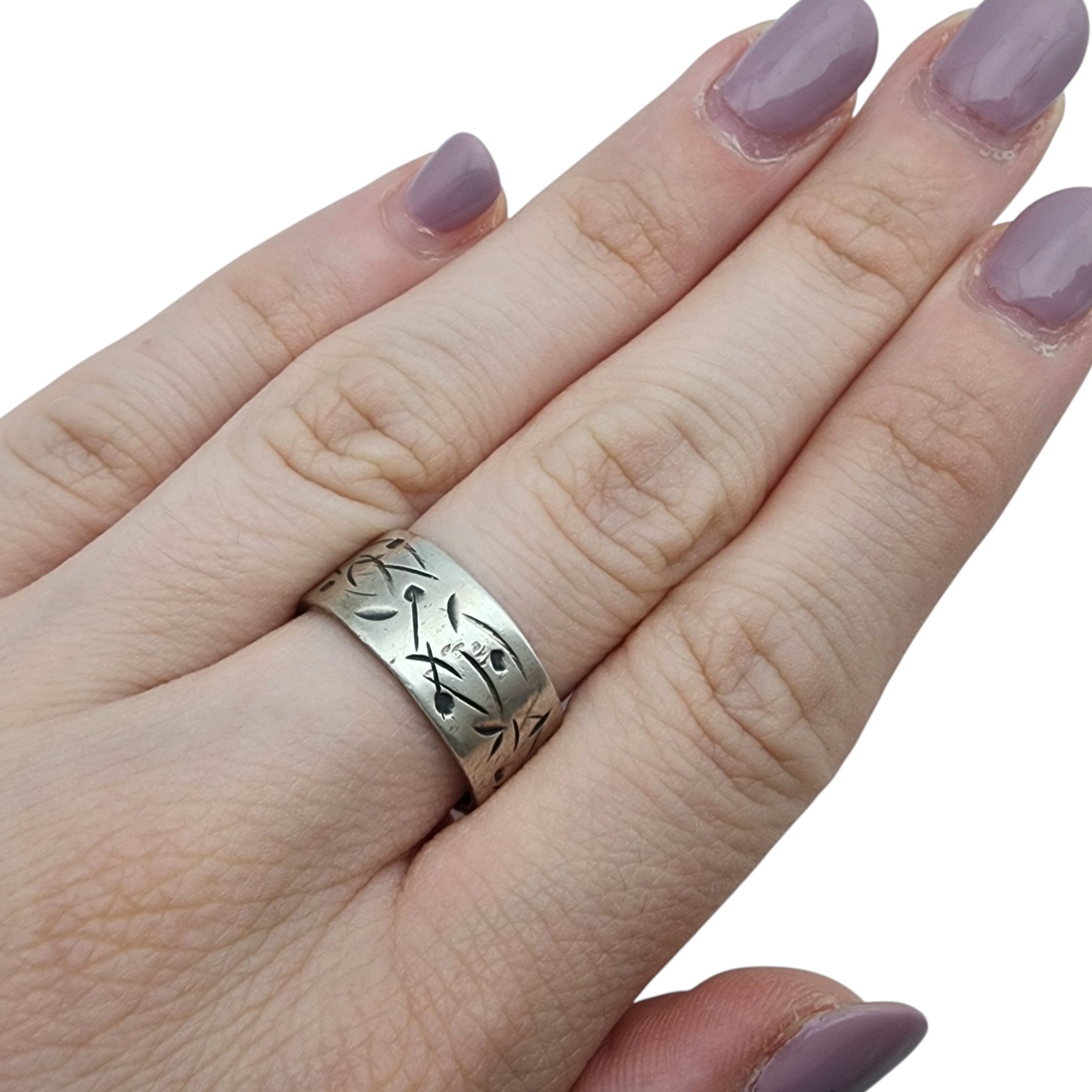 Signed LMN Sterling Textured Ring Band Sz 8 6.3g