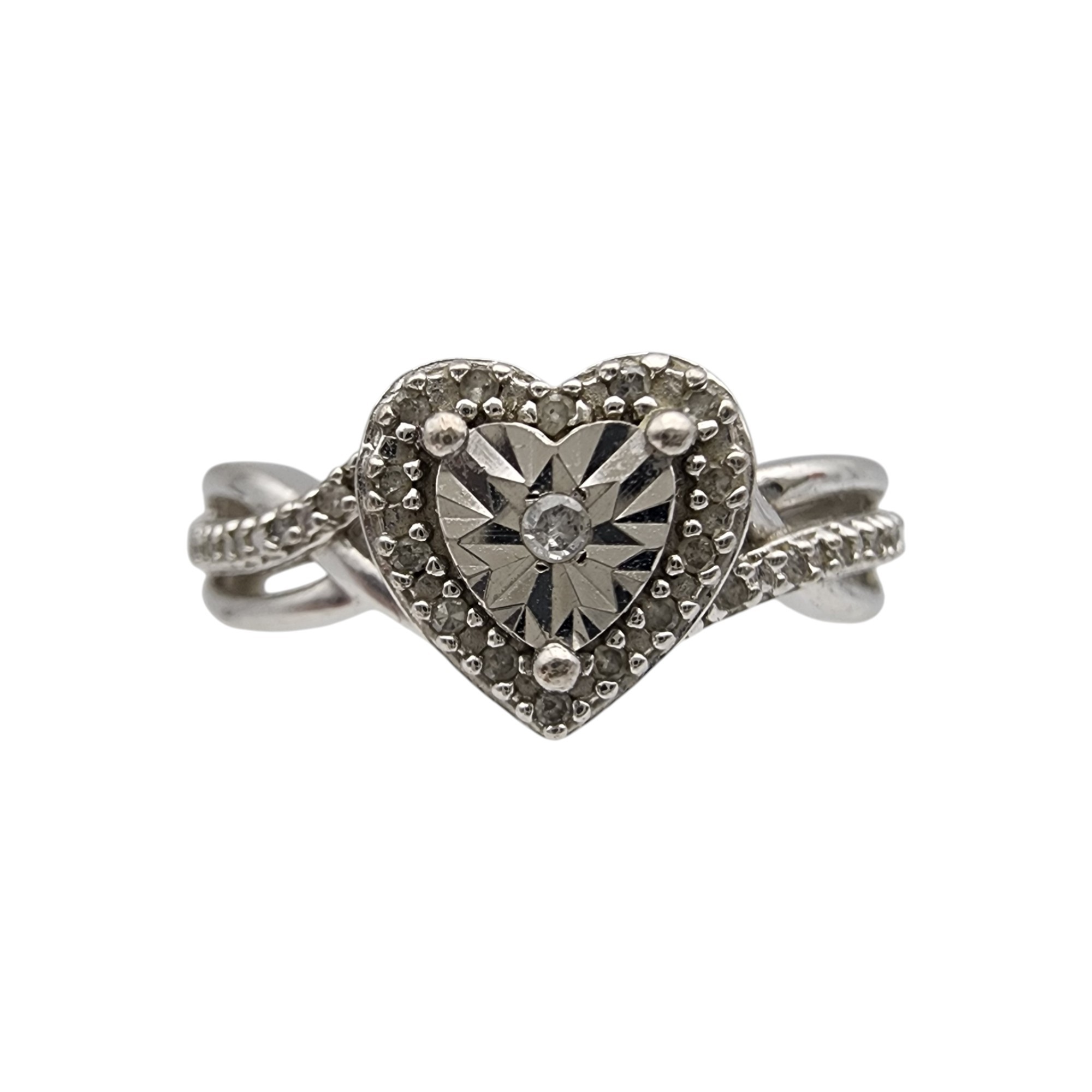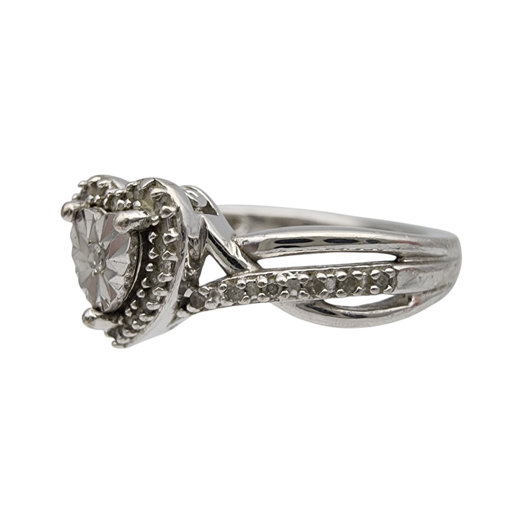 Sterling and Diamond Ring Sz 7 – 3.1g – Note: A Presidium Gem Tester was used to test the stone and tested in the diamond/moissanite range.