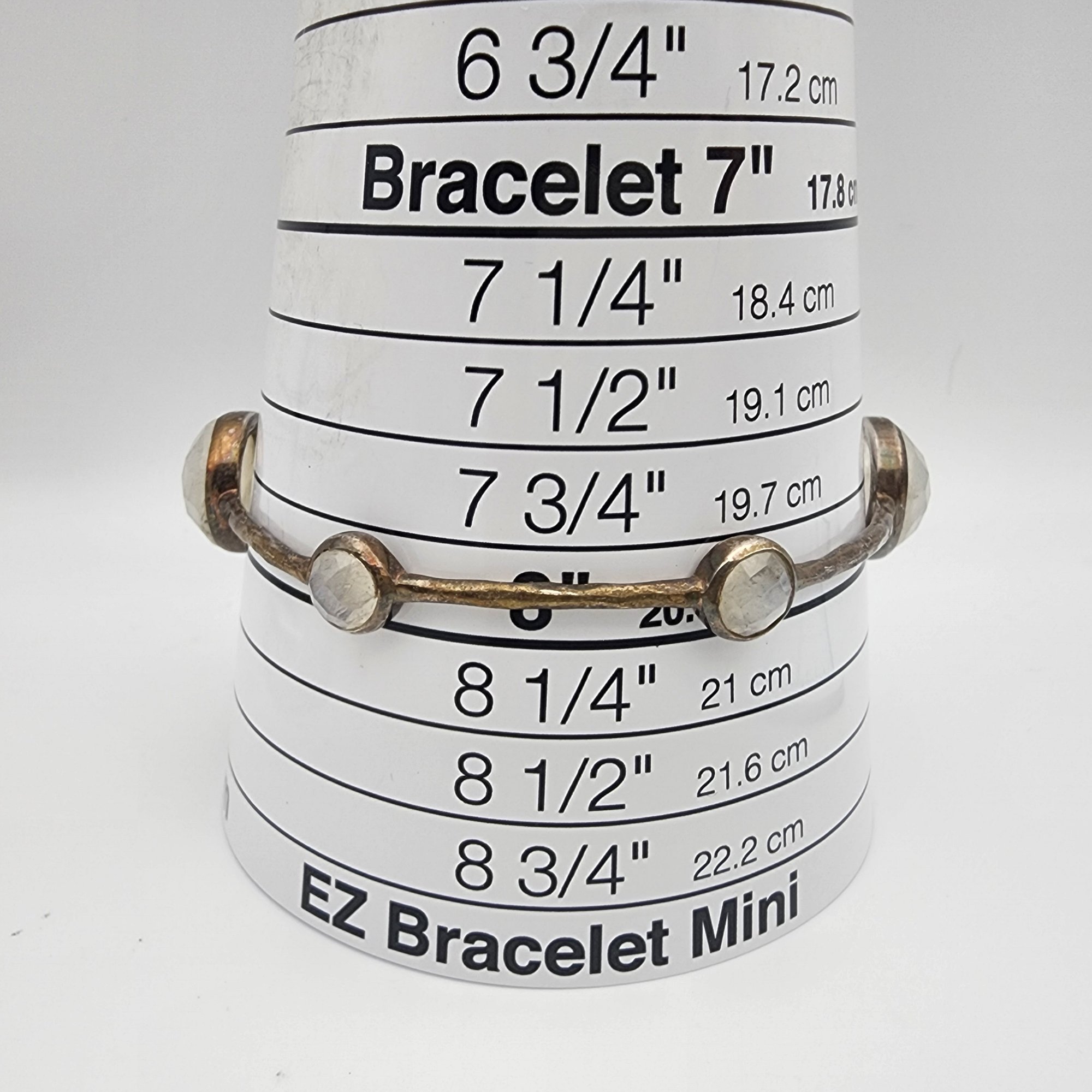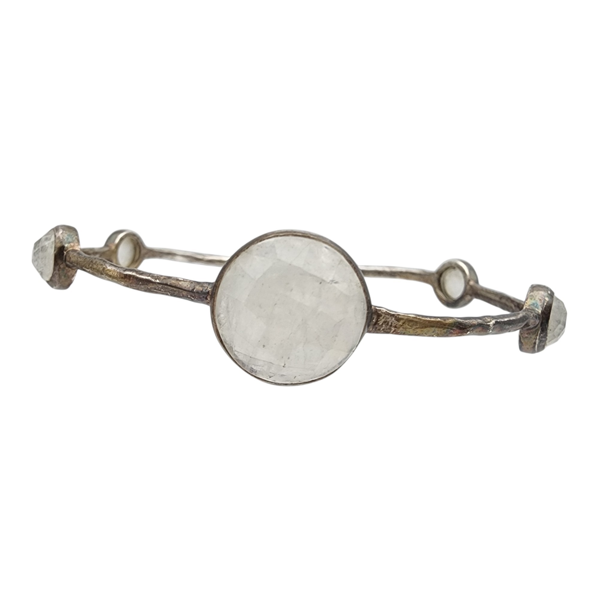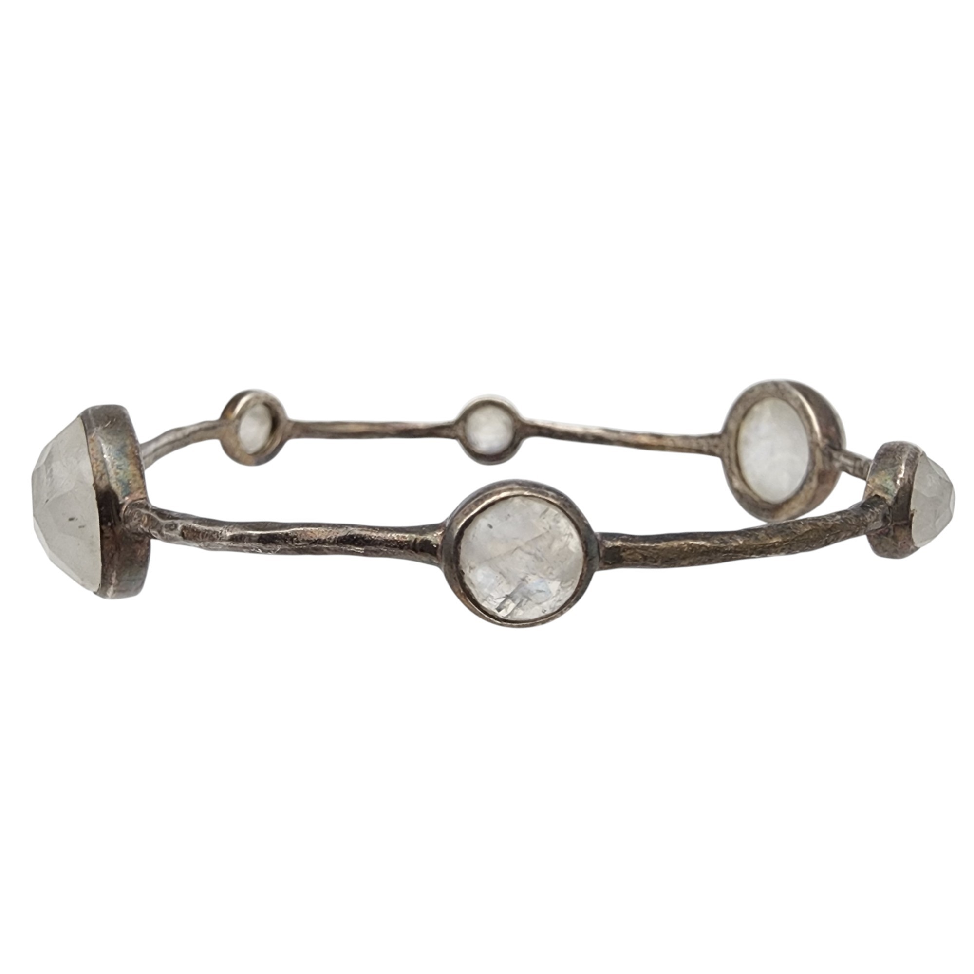 Vintage Sterling and Moonstone Station Bangle Bracelet – 15.3g