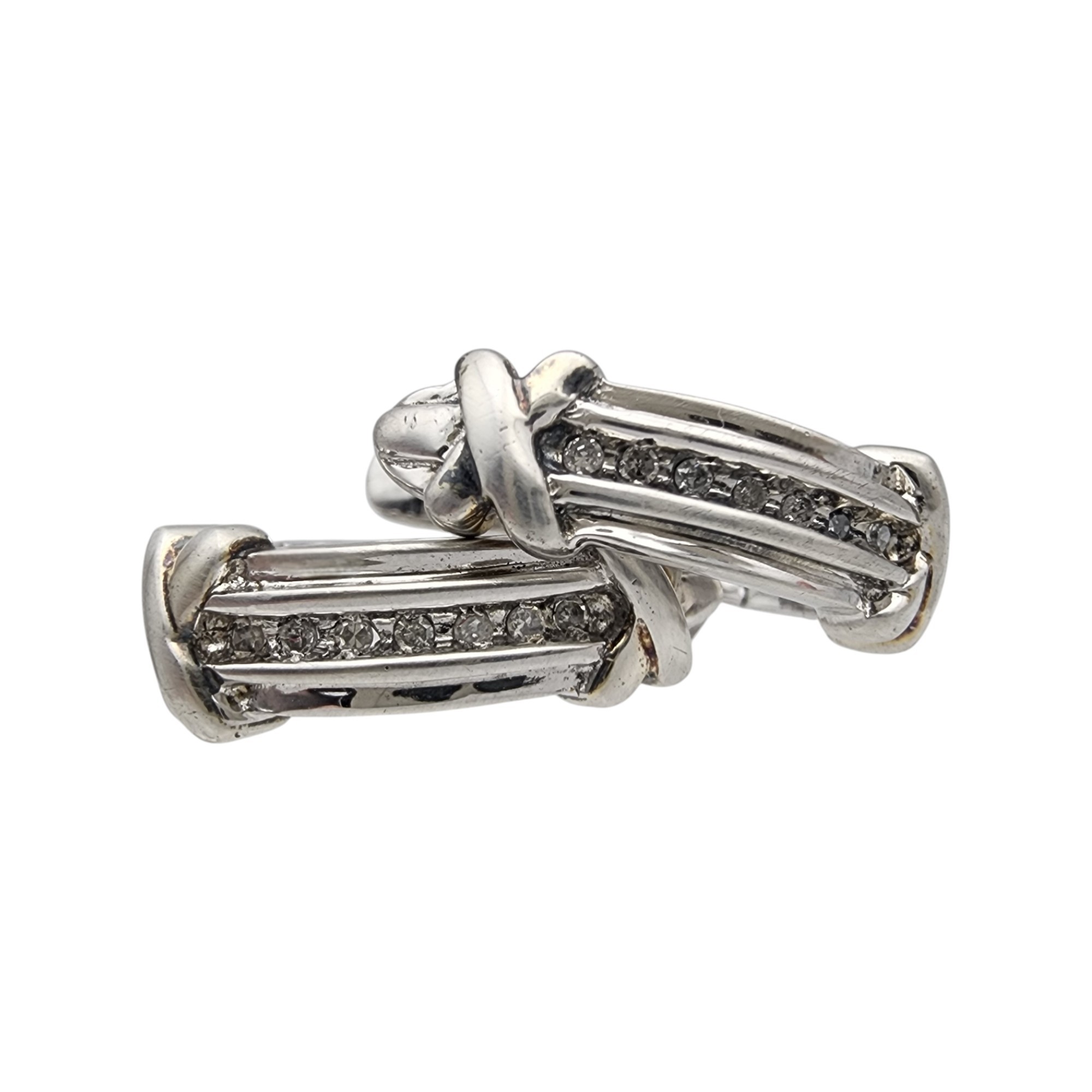 Sterling and Diamond/Moissanite Curved Bar Earrings – 4.8g – Note: A Presidium Gem Tester was used to test the stone and tested in the diamond/moissanite range.