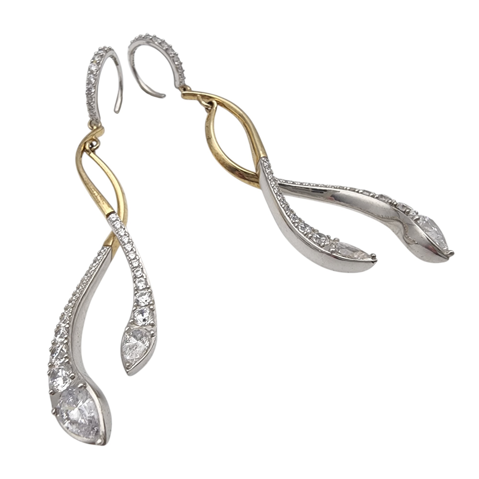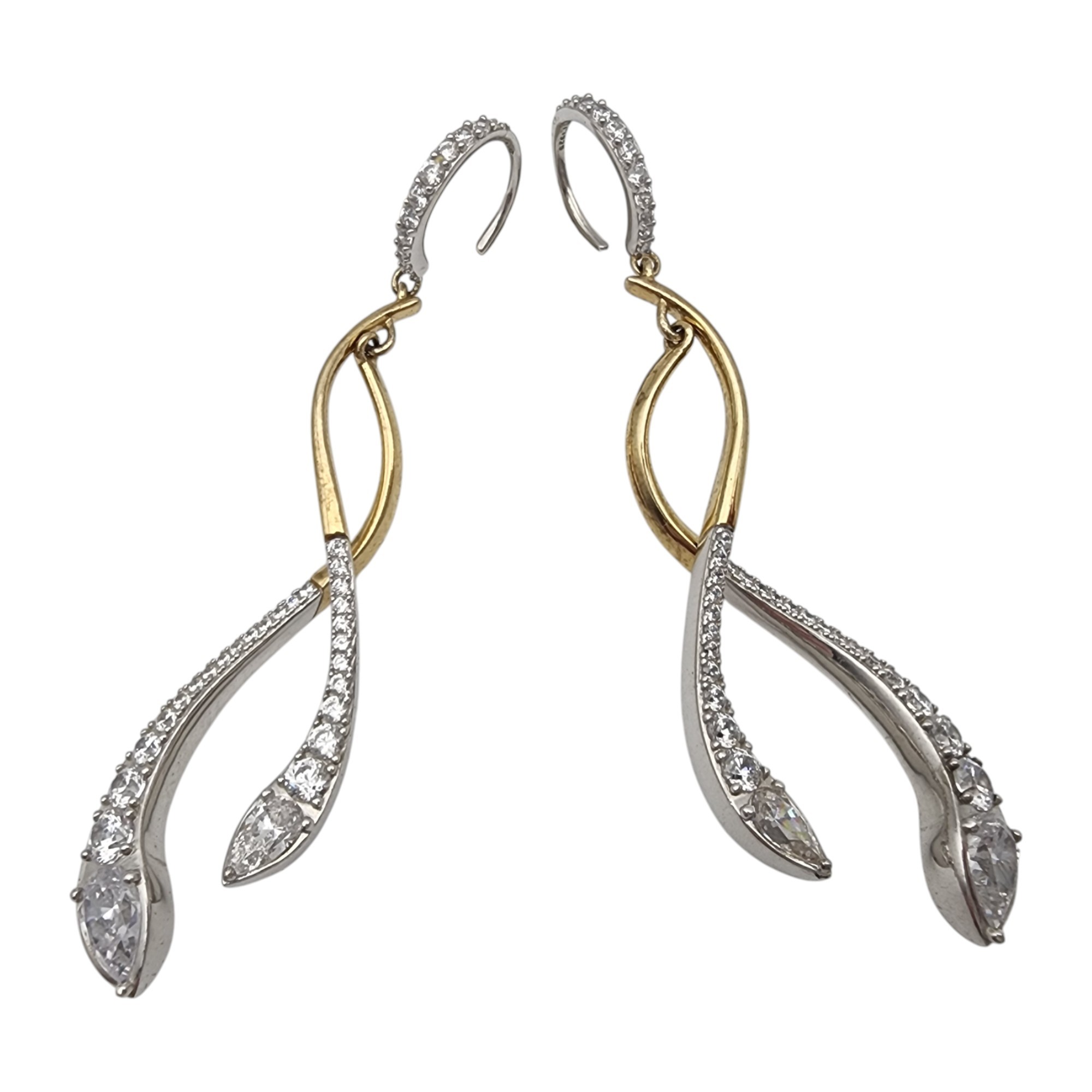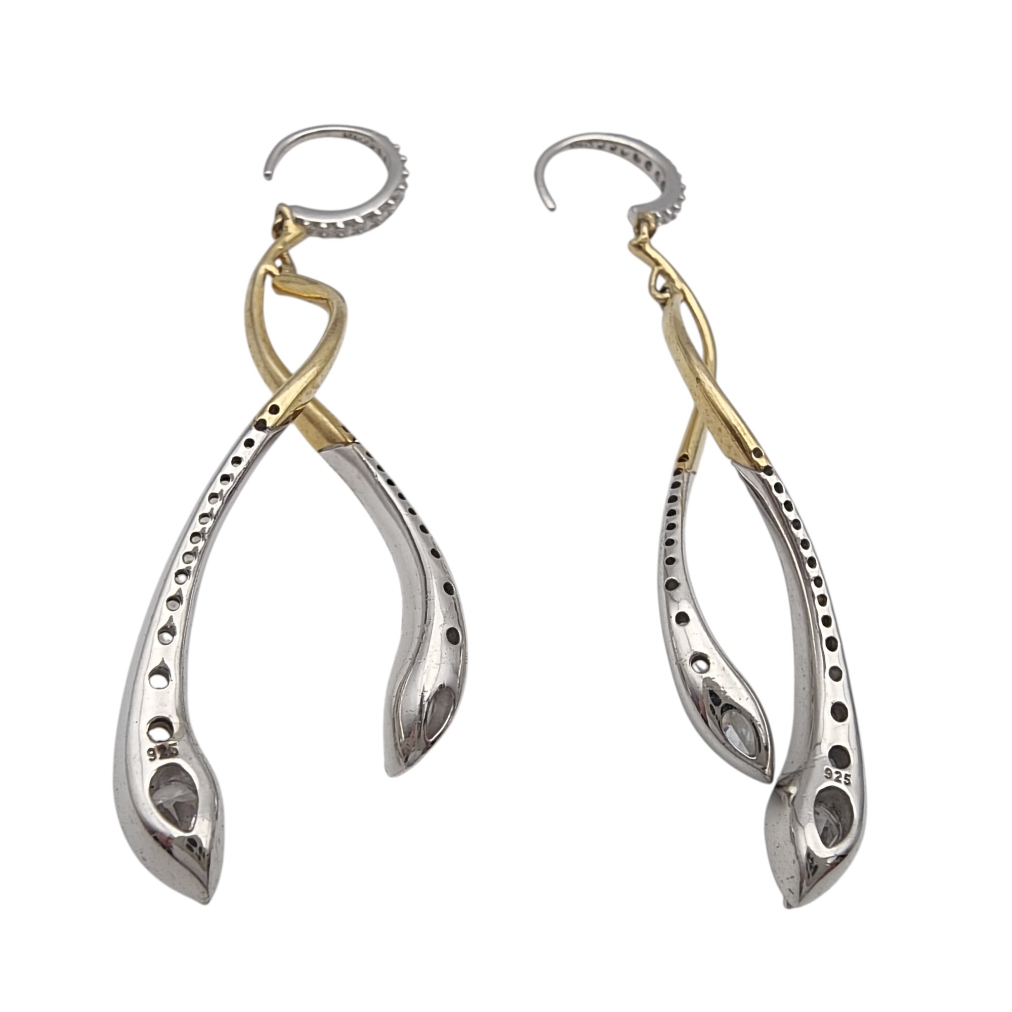 Sterling Rhinestone Twist Dangle Earrings – 6.9g