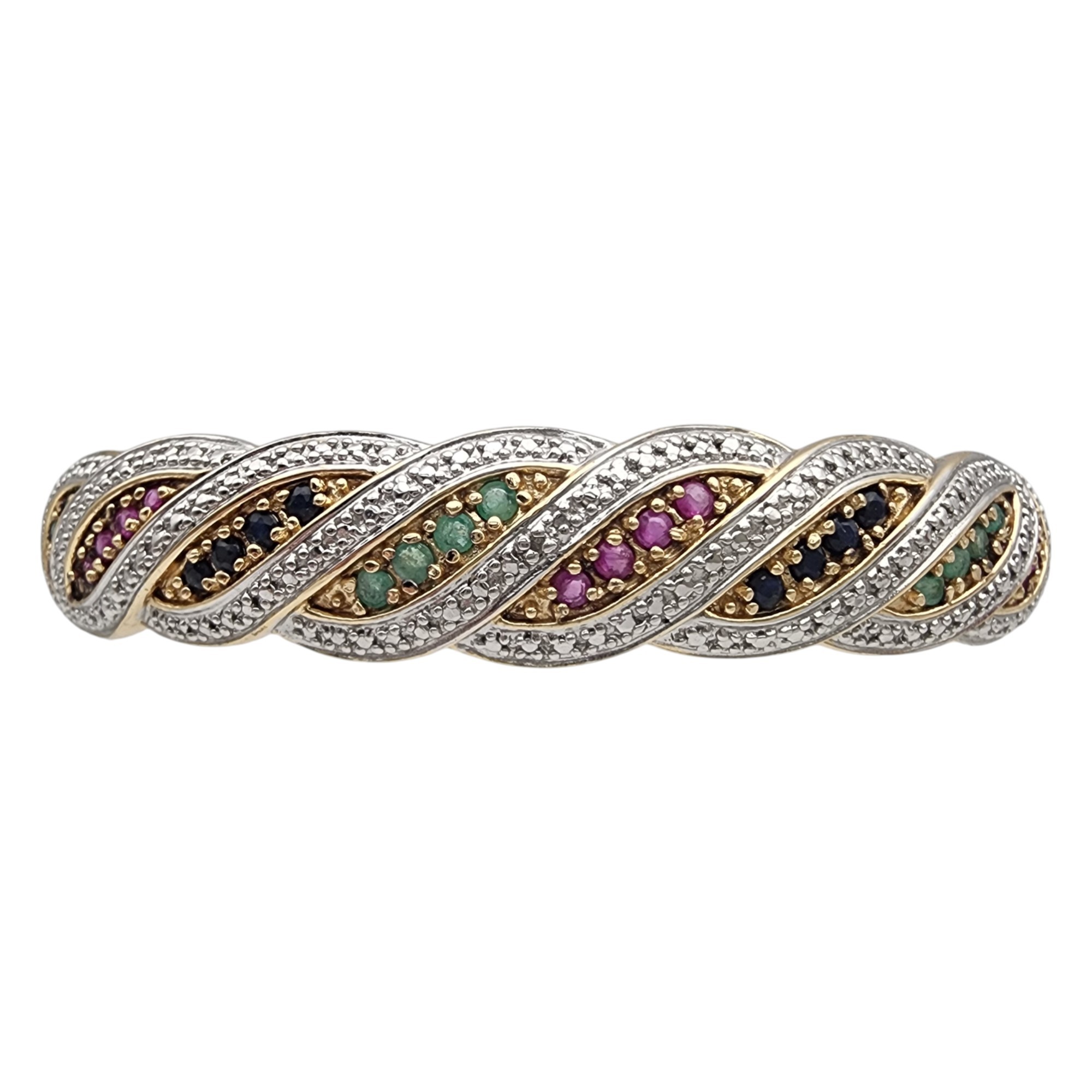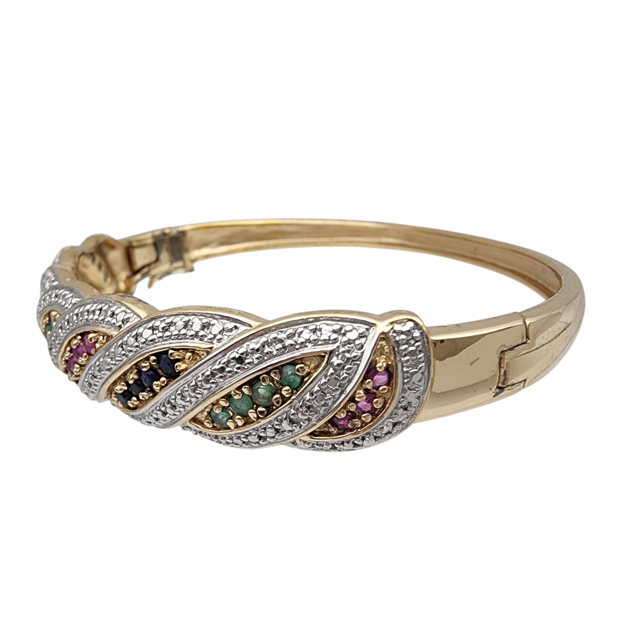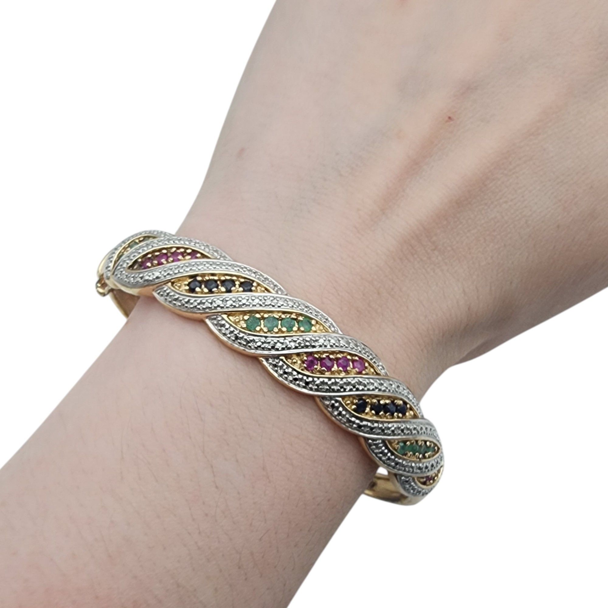 Ross Simons Gold over Sterling Emerald, Ruby, and Sapphire Bangle Bracelet – 24.9g