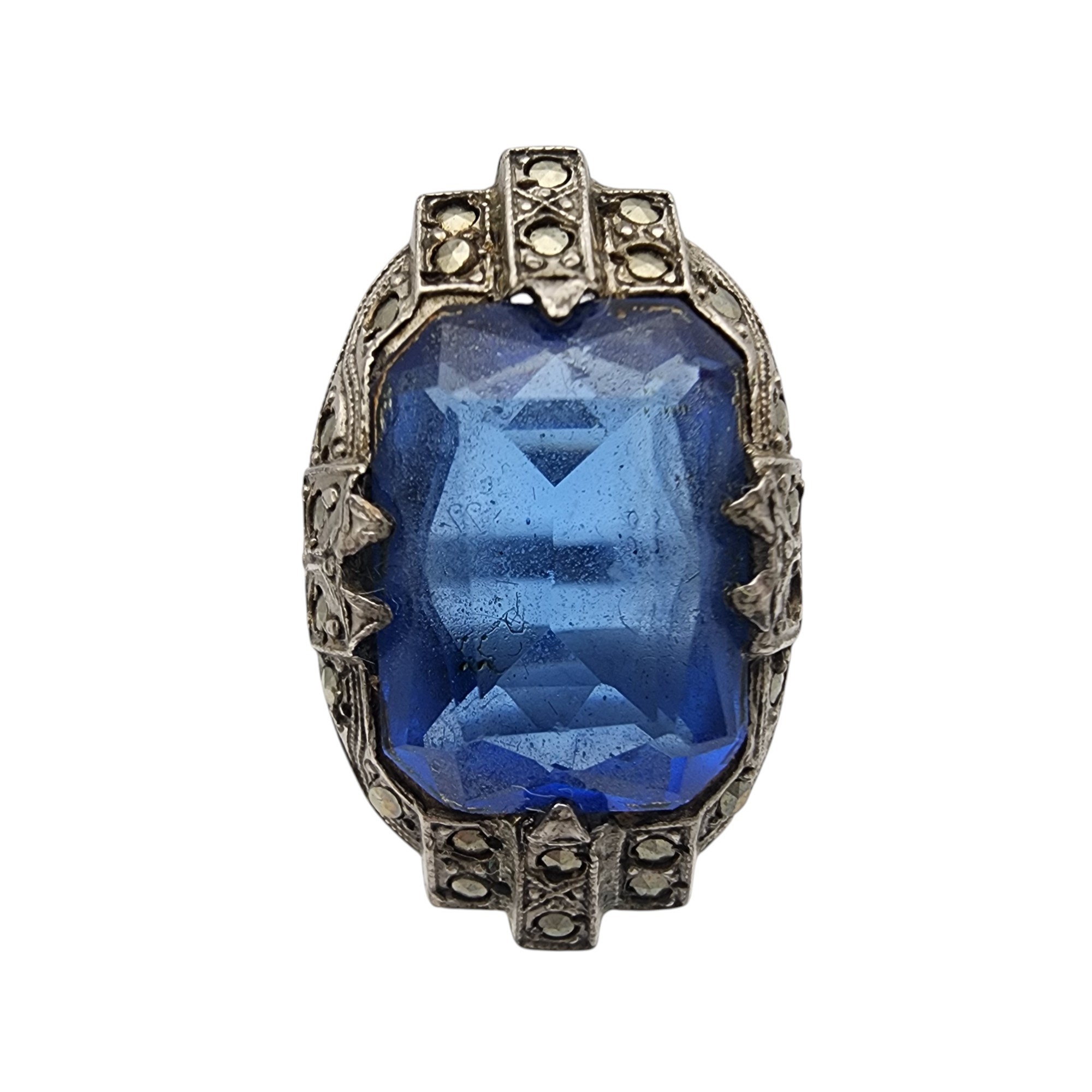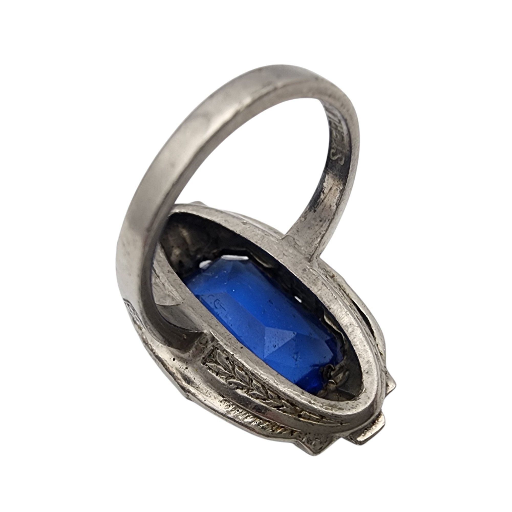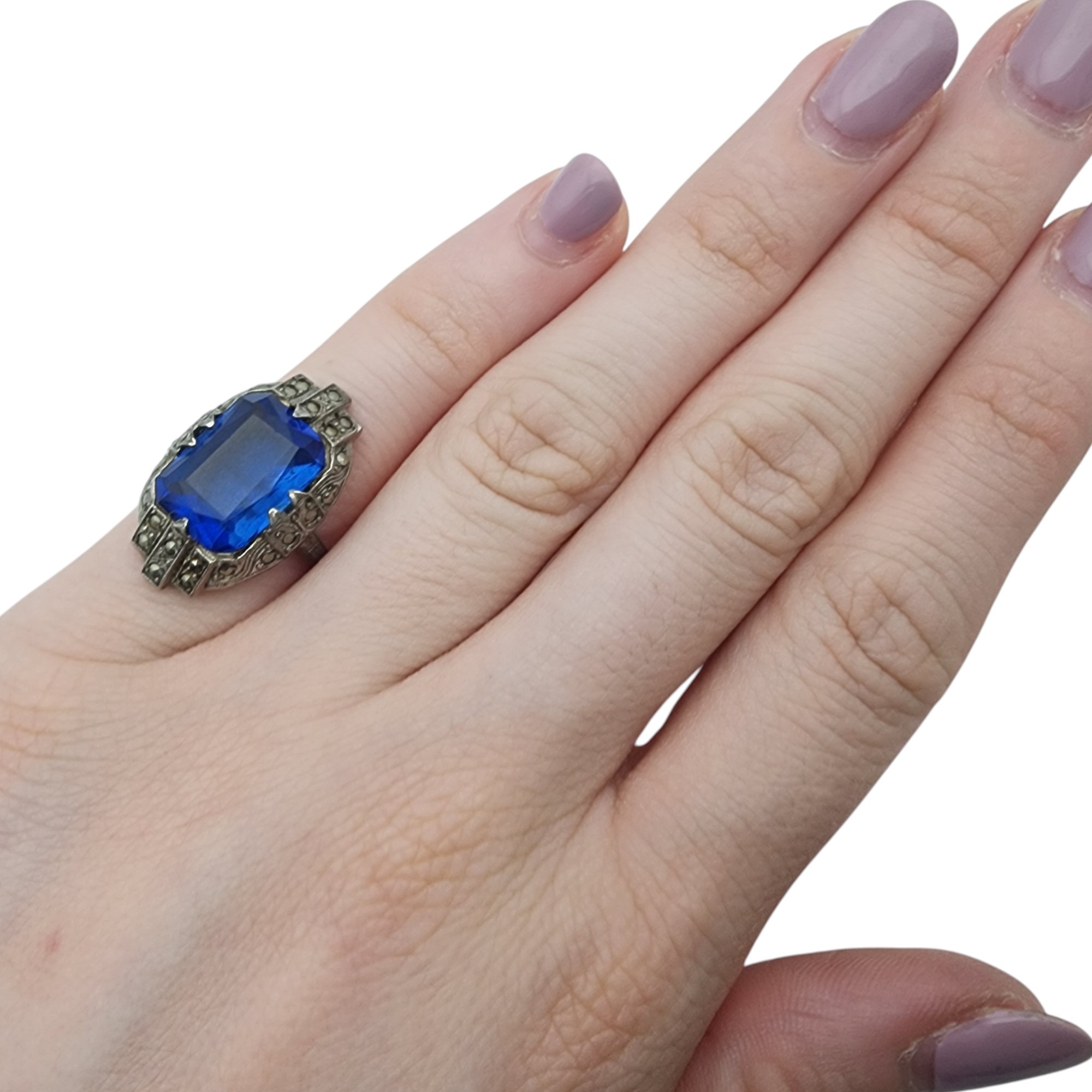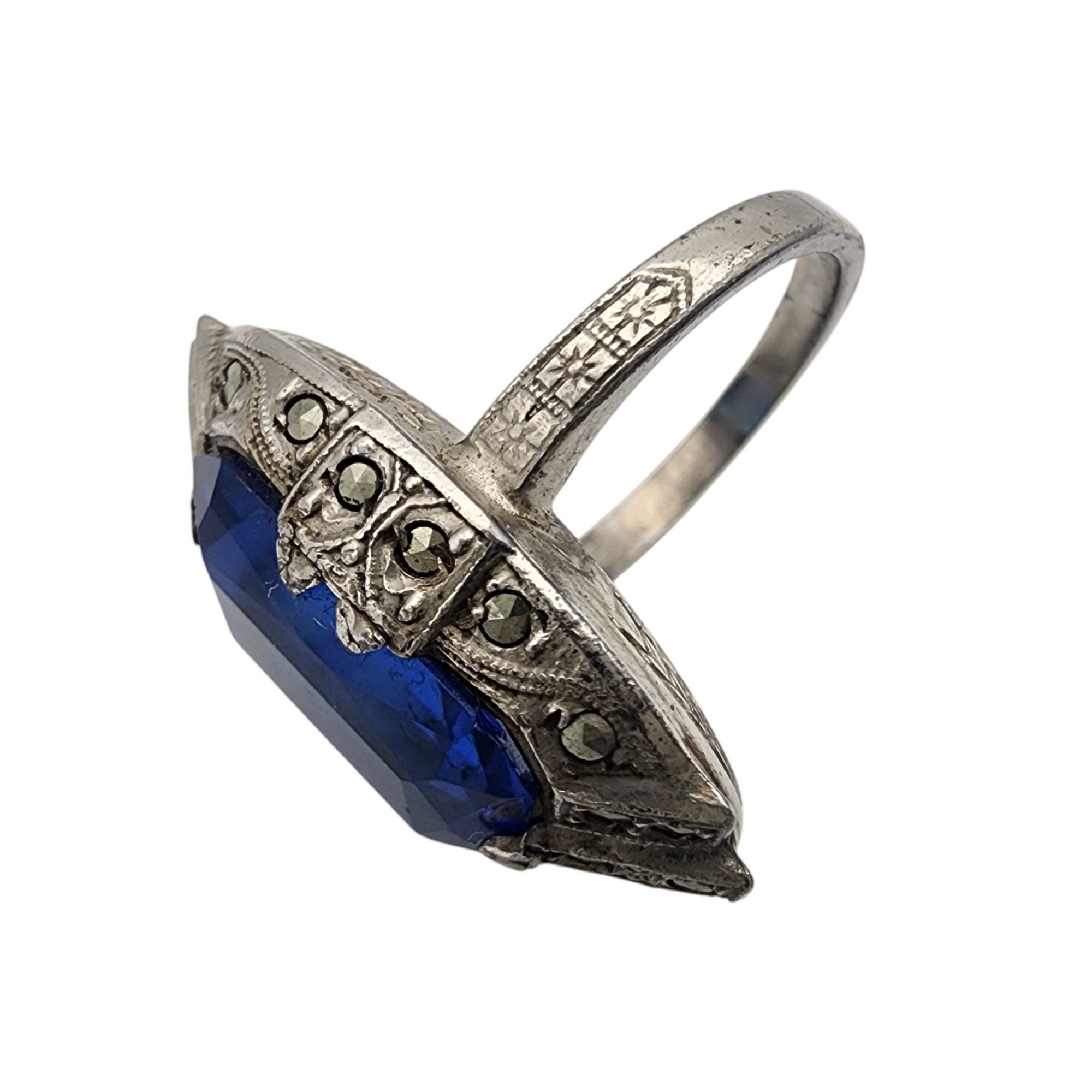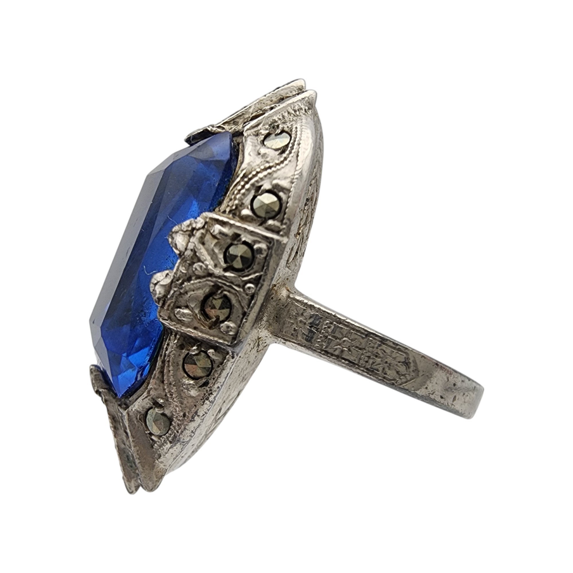 Vintage Art Deco Style Sterling Blue Glass Ring Sz 4.5 – 5.5g
