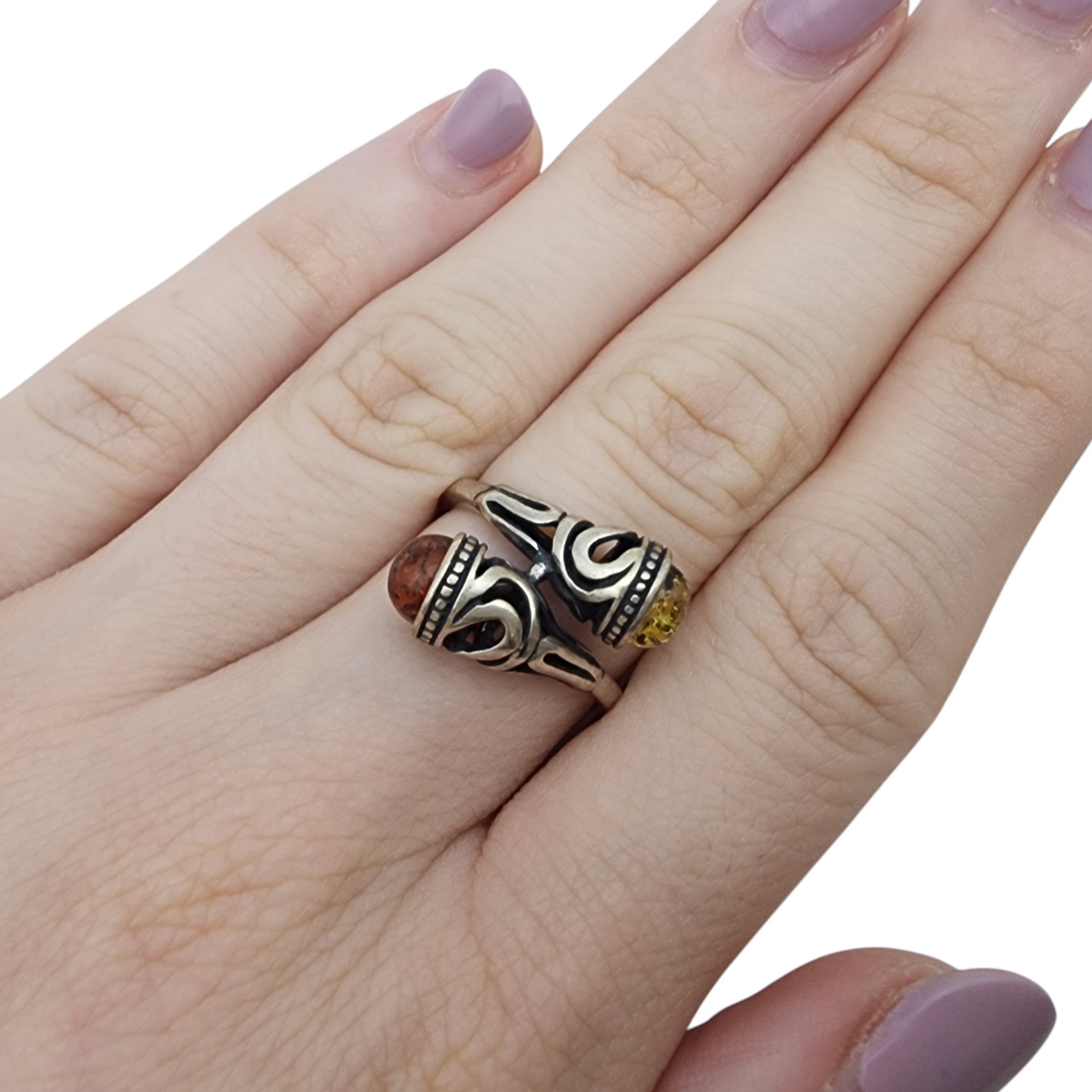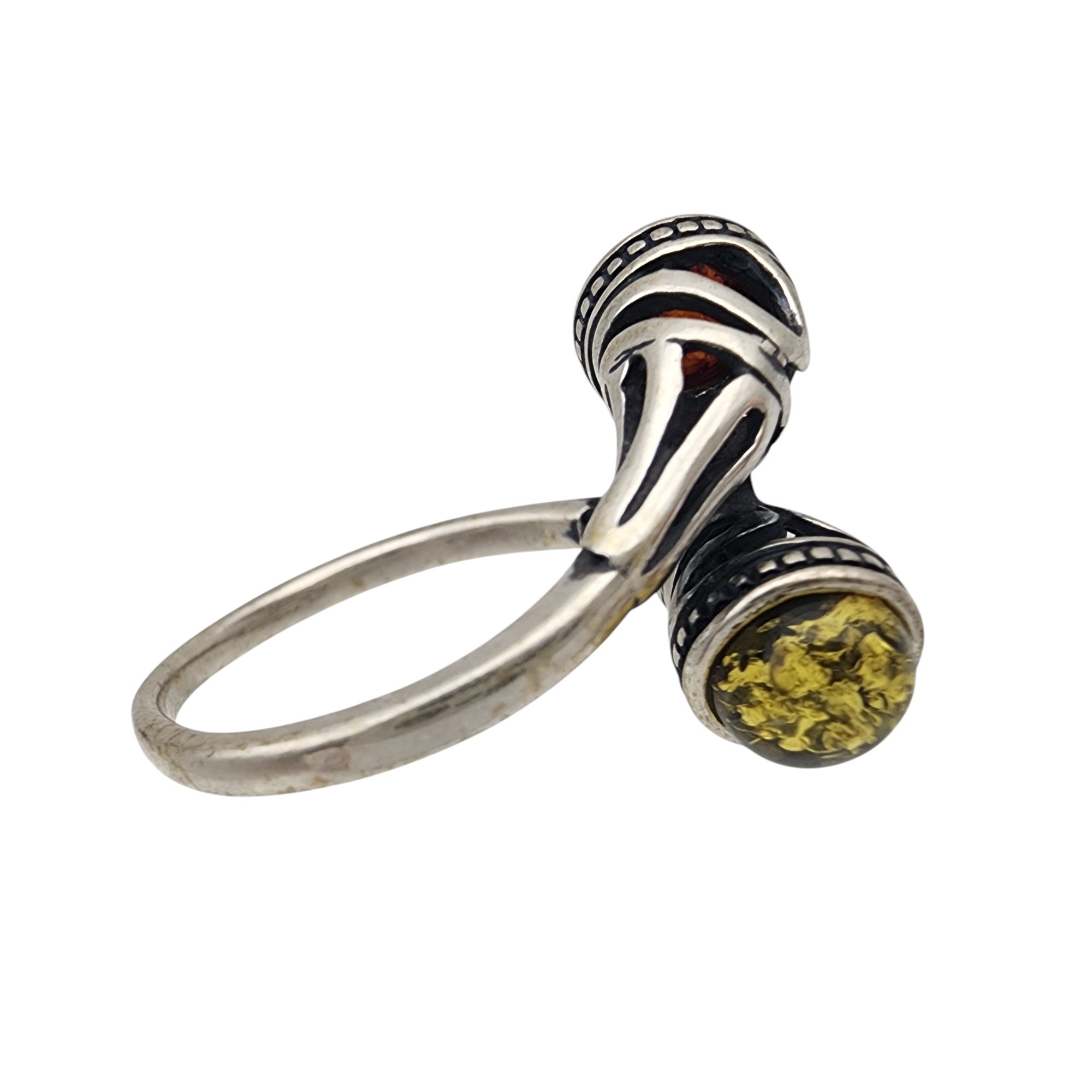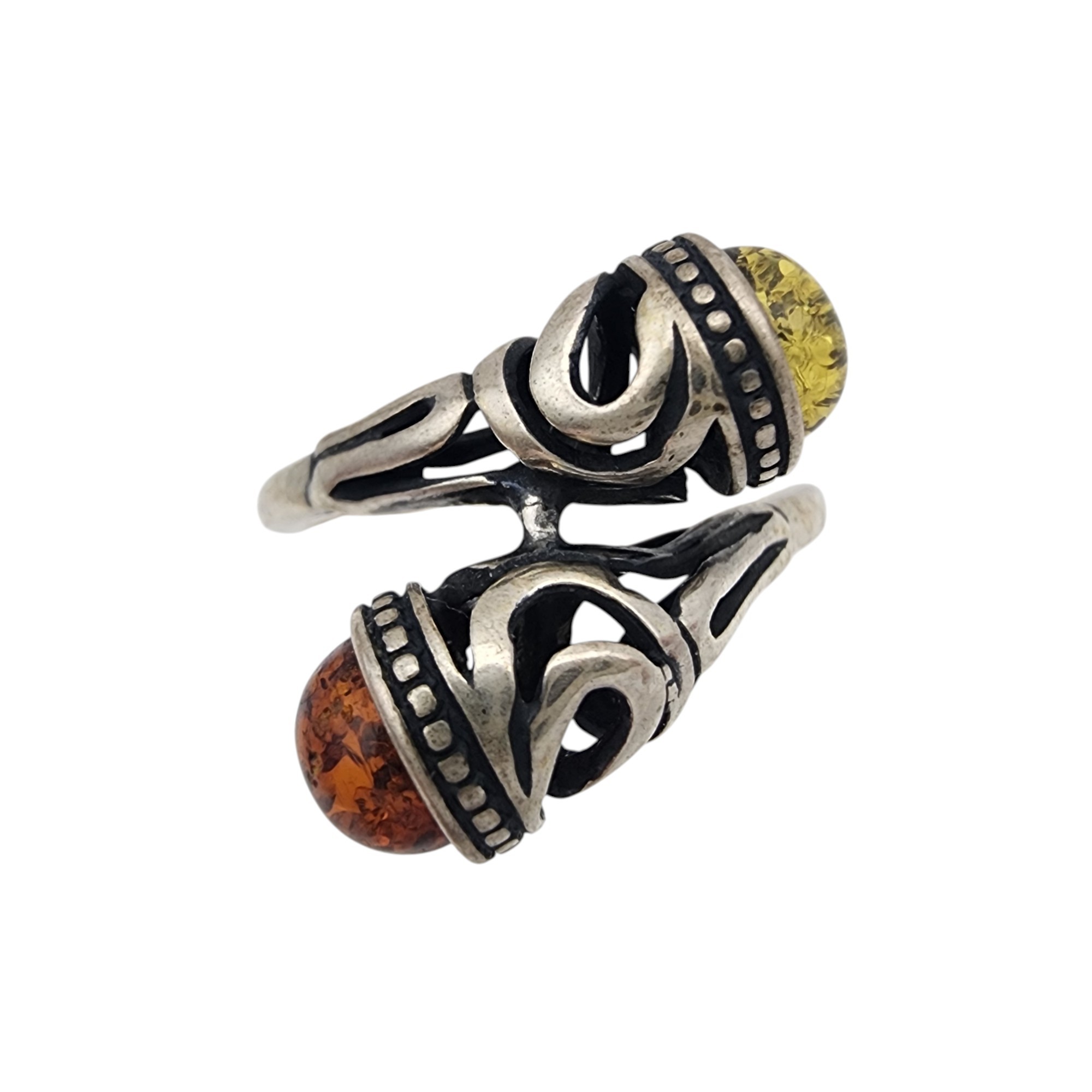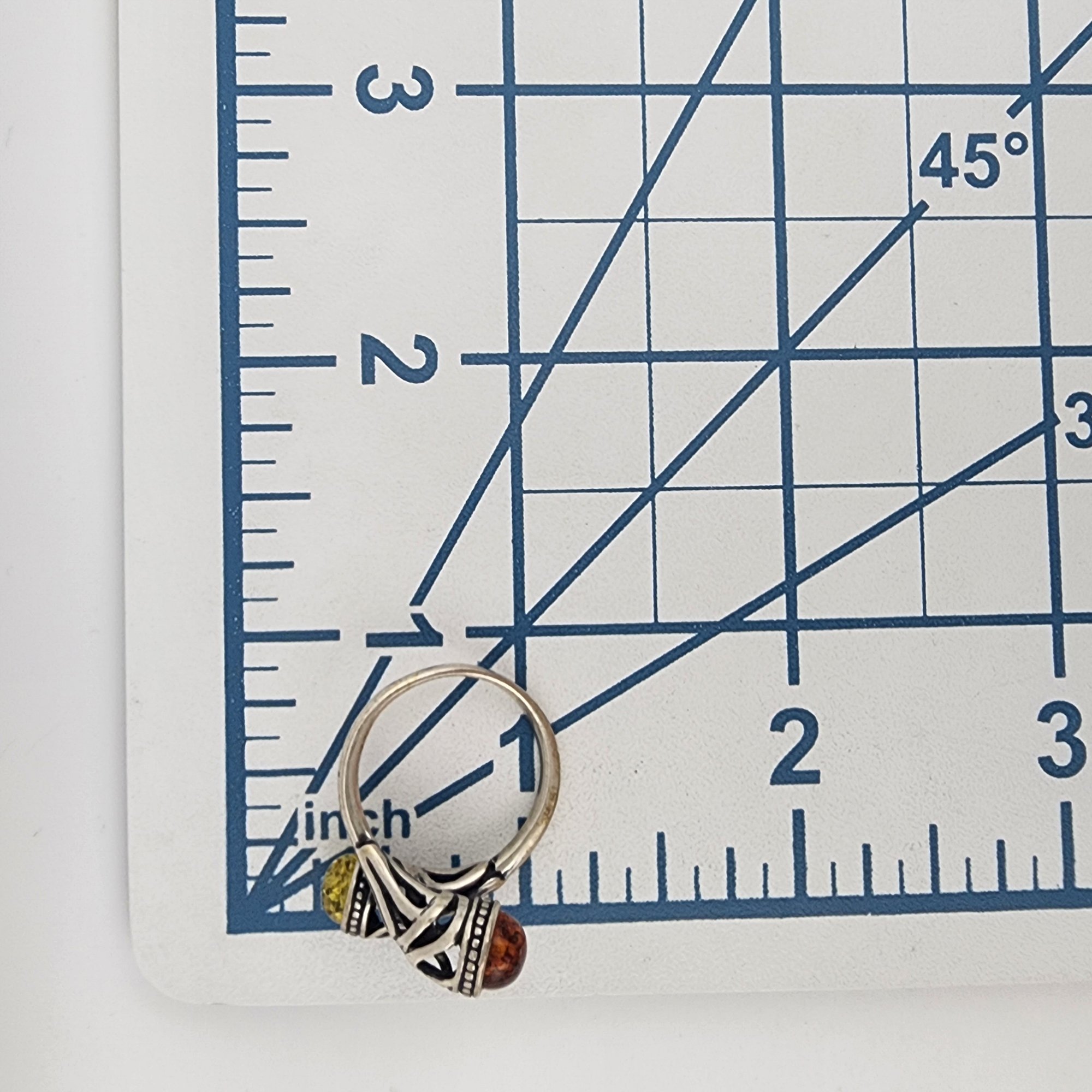 Sterling Amber Resin Bypass Ring Sz 7/Adjustable – 3.5g