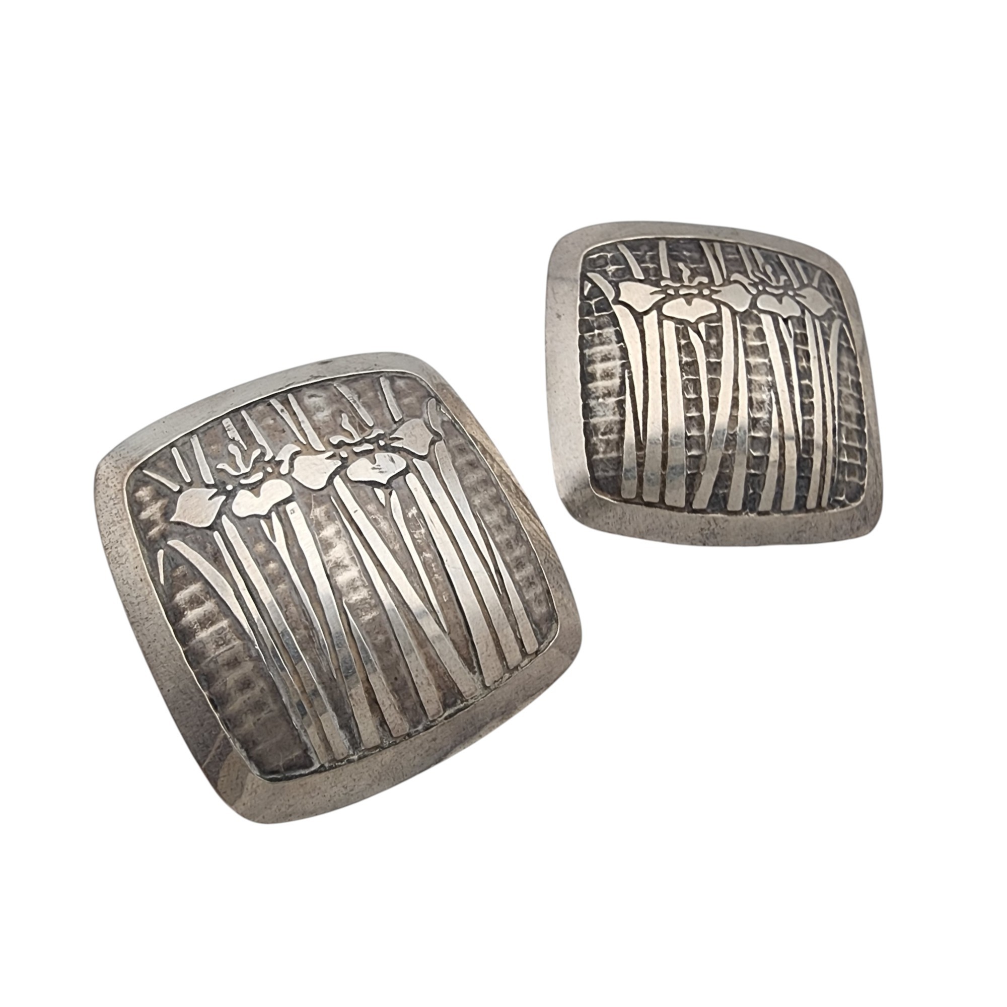 Vintage Sterling Flower Panel Earrings – 7g