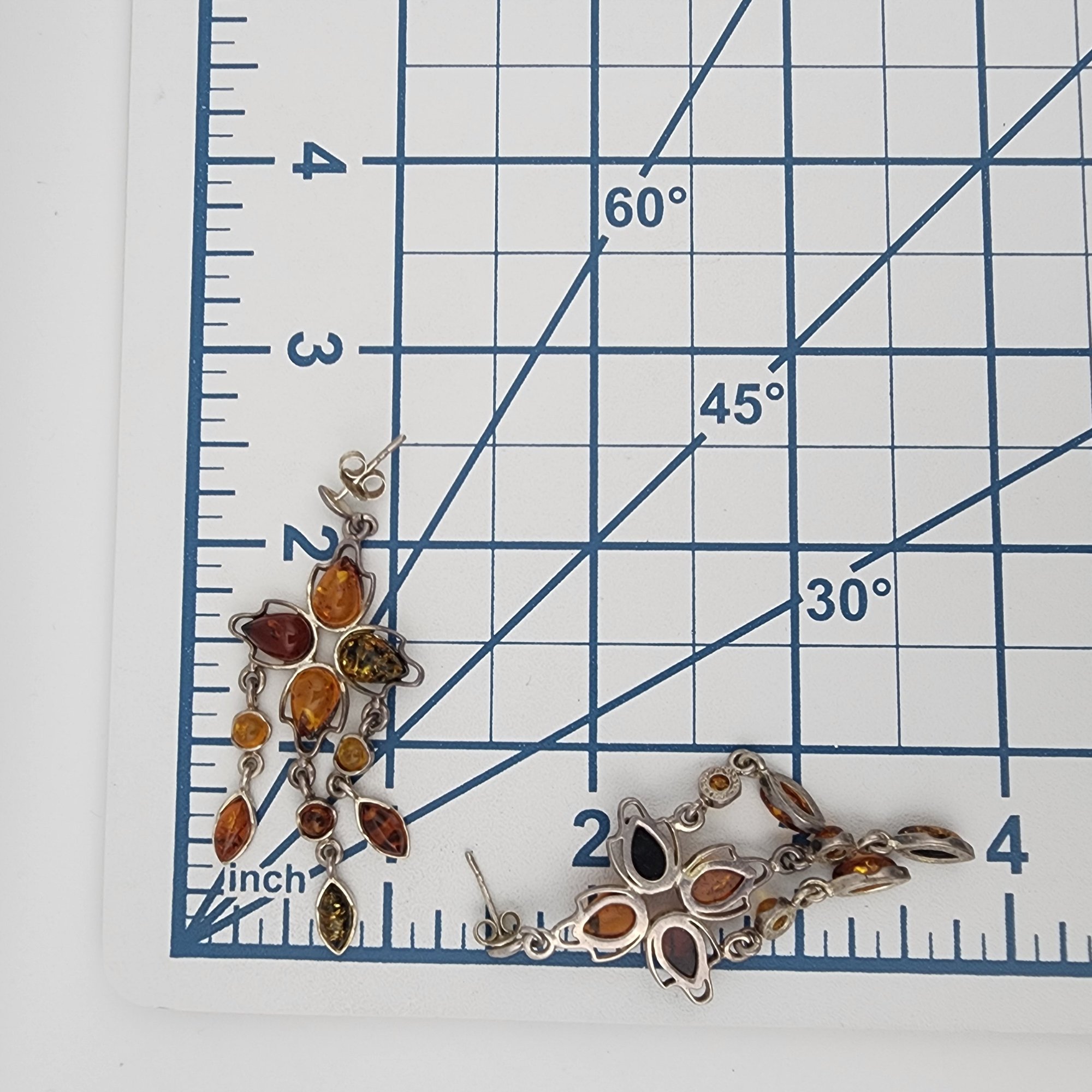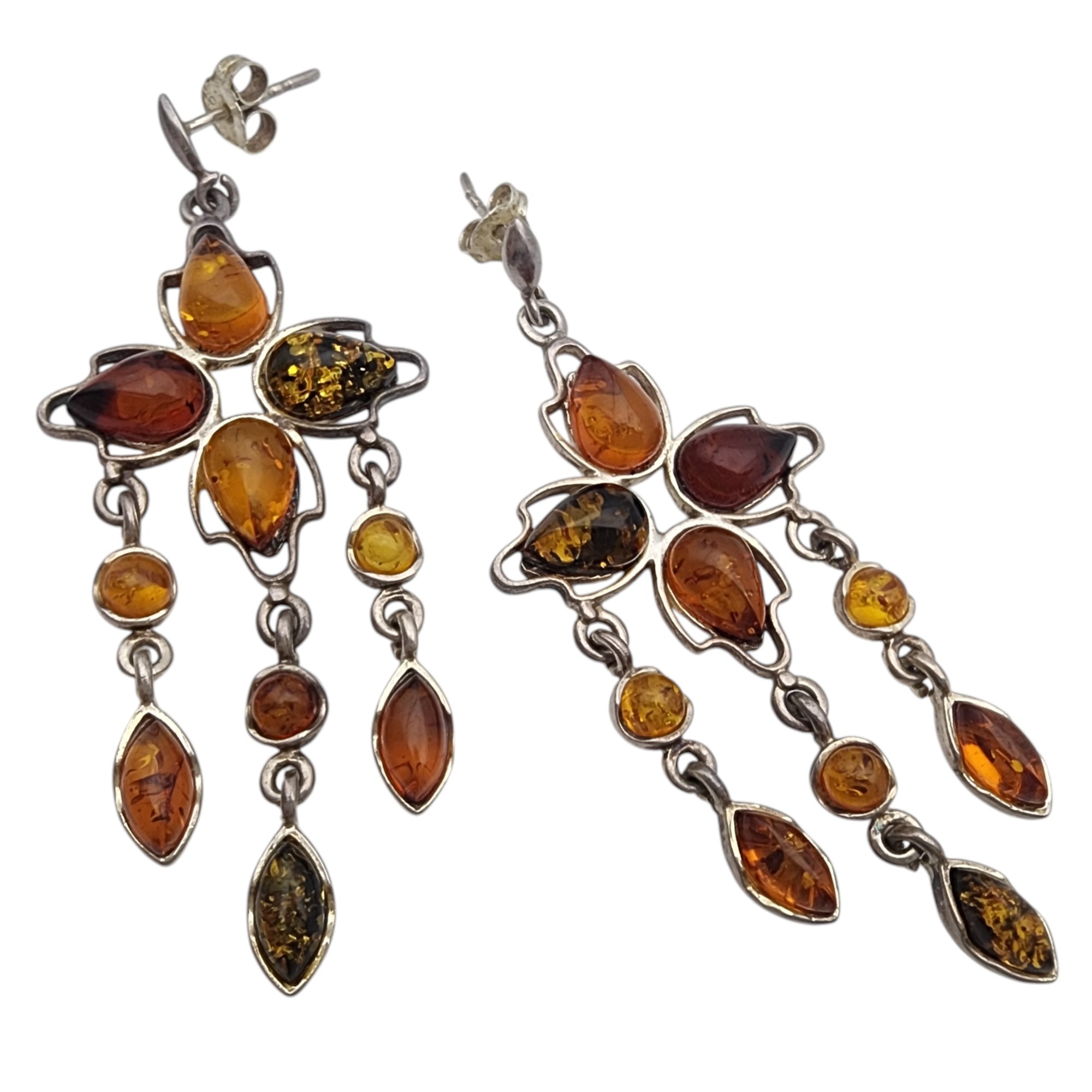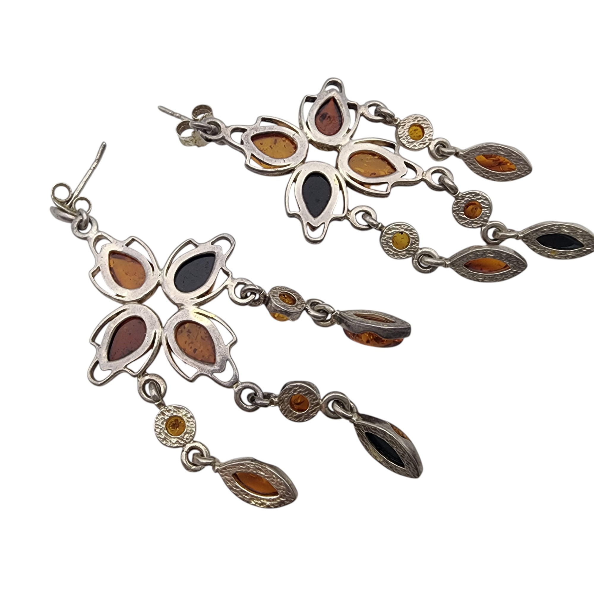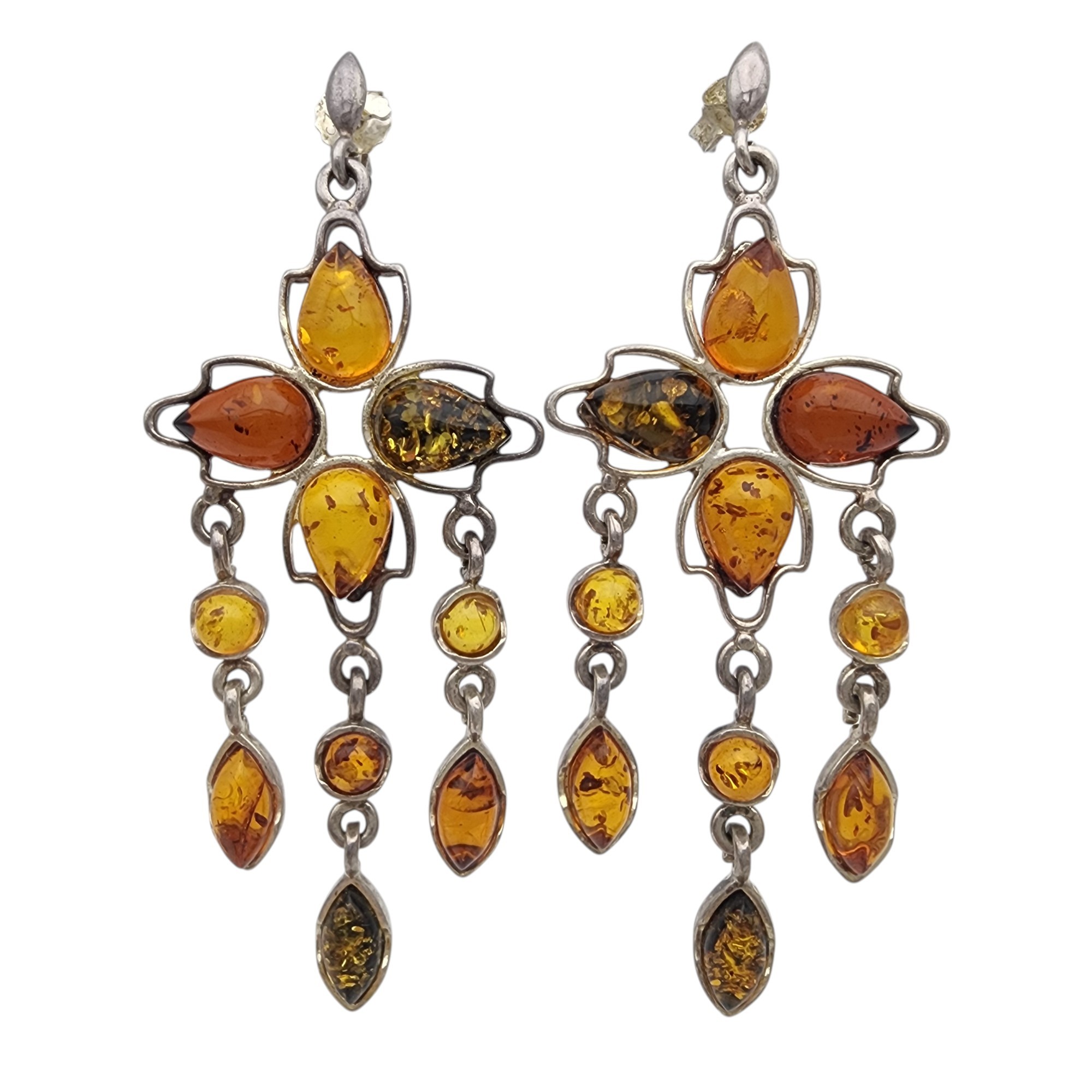 Gorgeous Sterling Multicolor Amber Chandelier Dangle Earrings – 10.4g