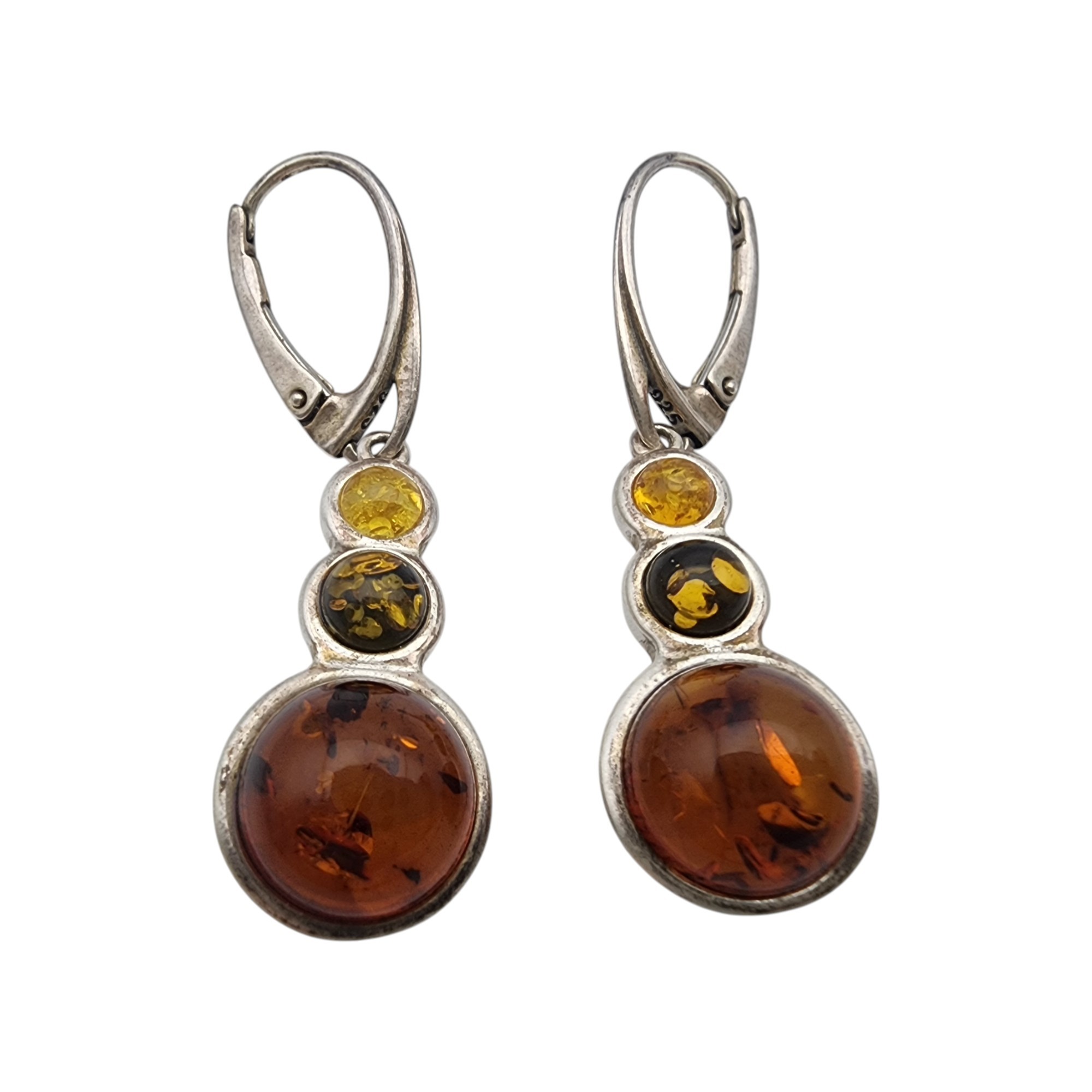 Sterling Graduated Amber Dangle Earrings – 6.8g