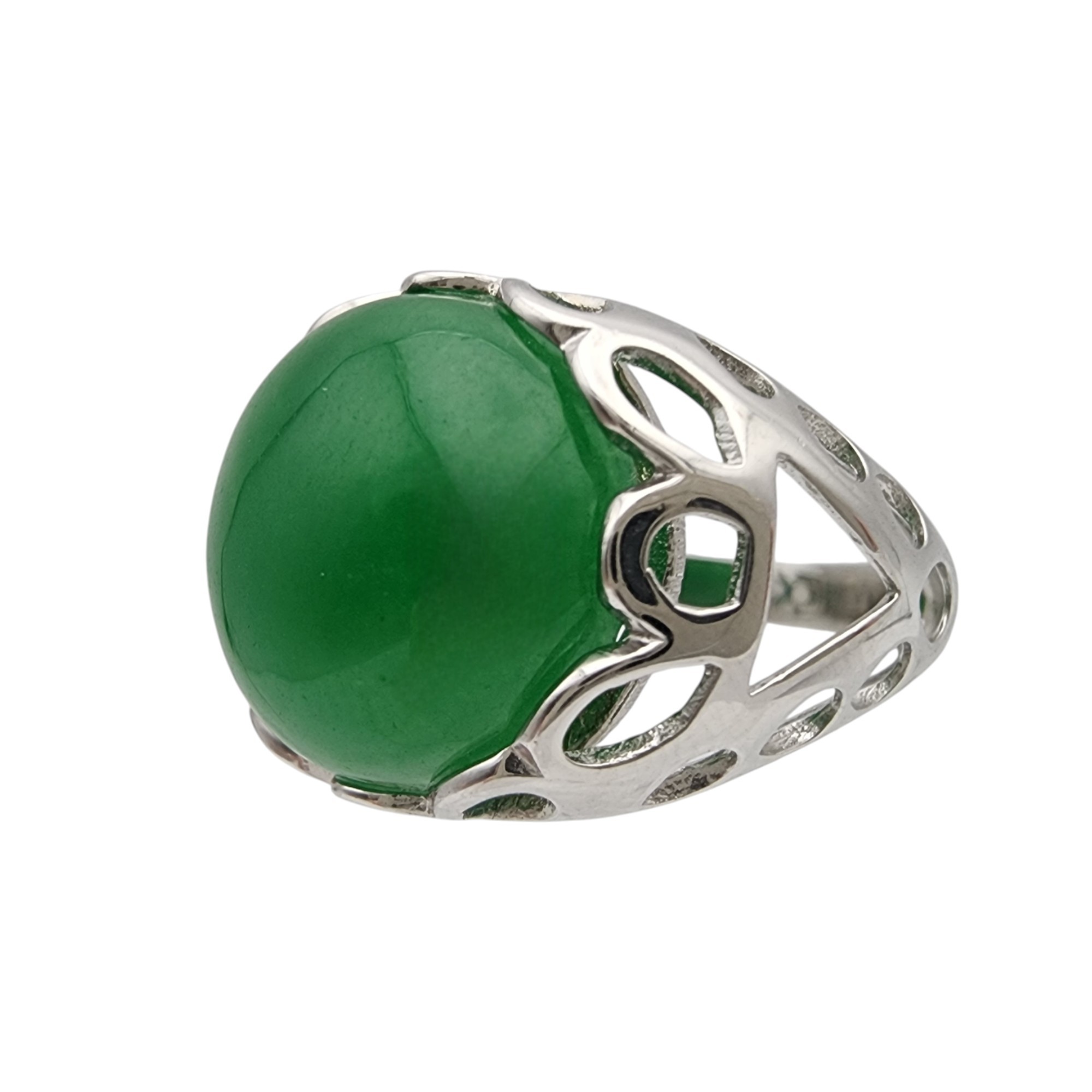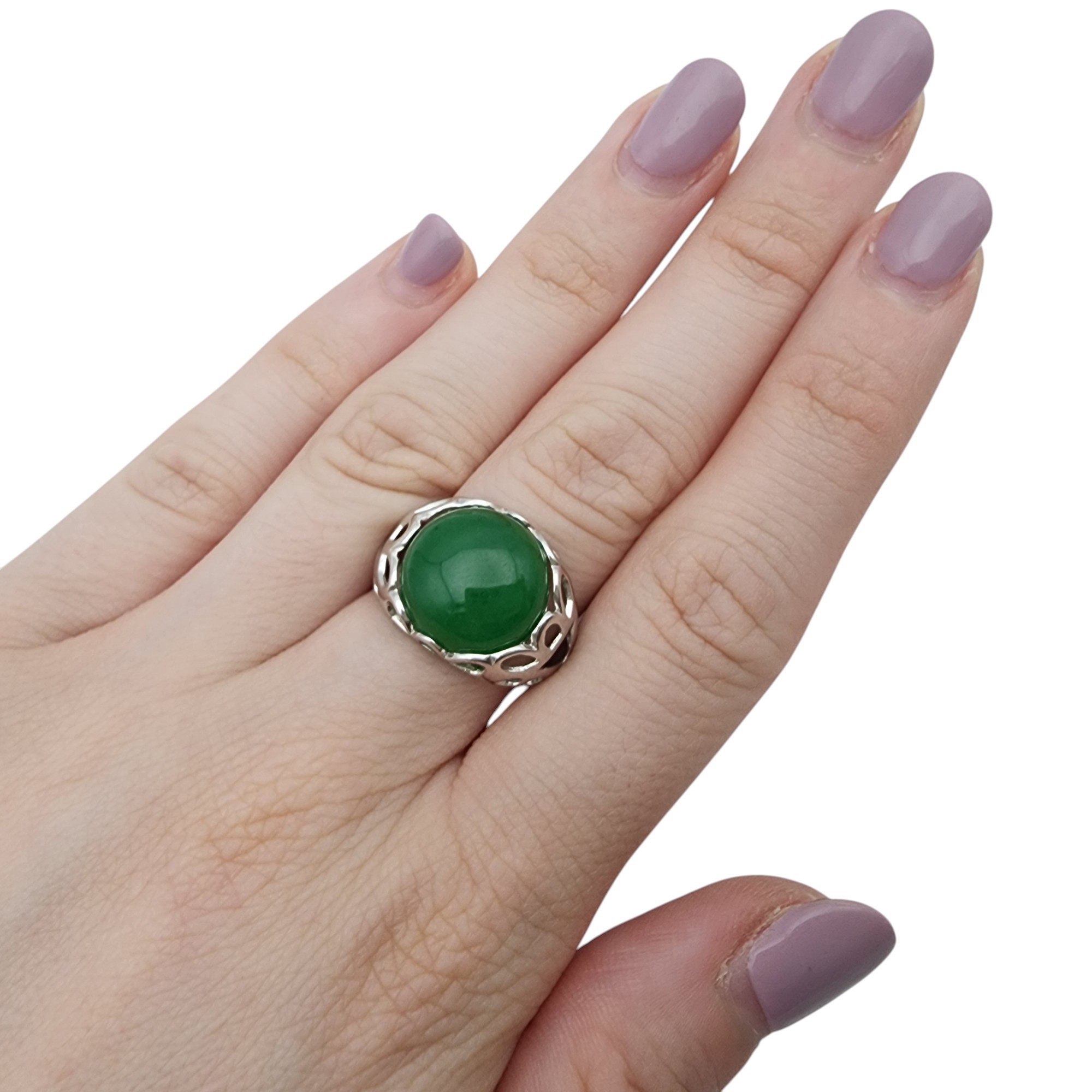 Sterling Jadeite Dome Ring Sz 7 5.3g