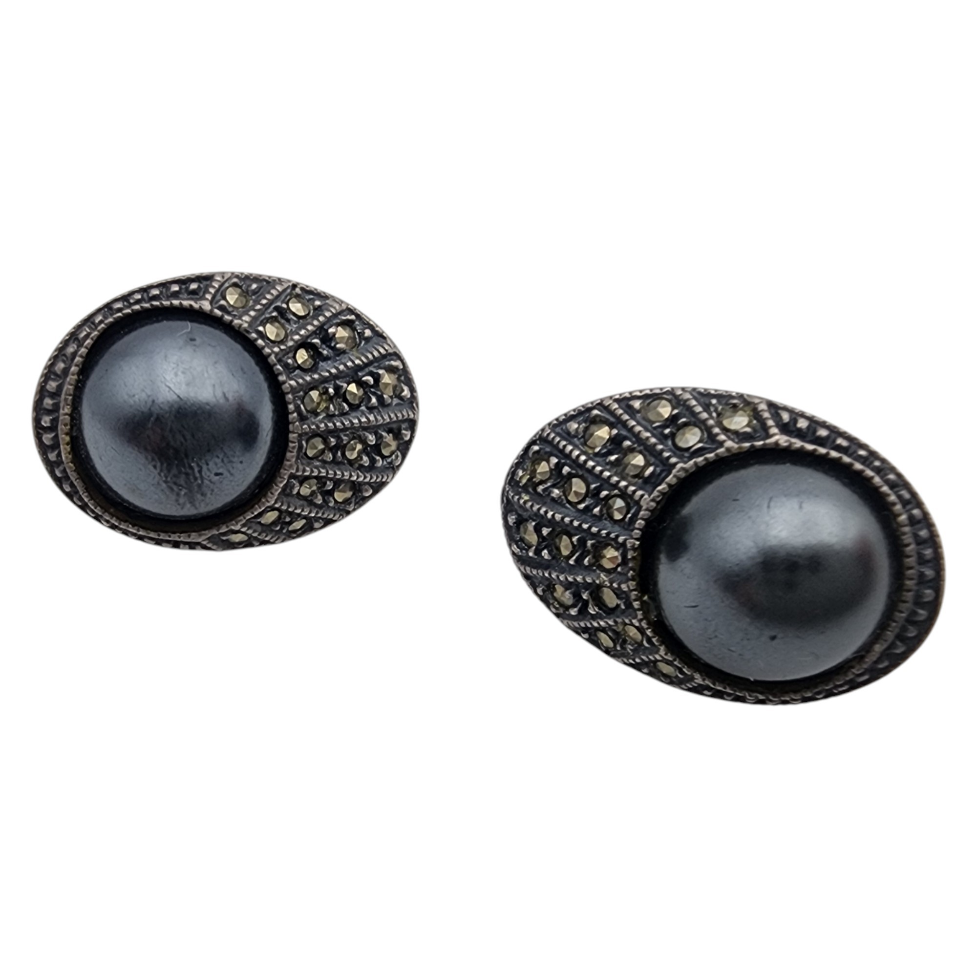 Judith Jack Sterling Marcasite and Pearl Earrings – 5.8g
