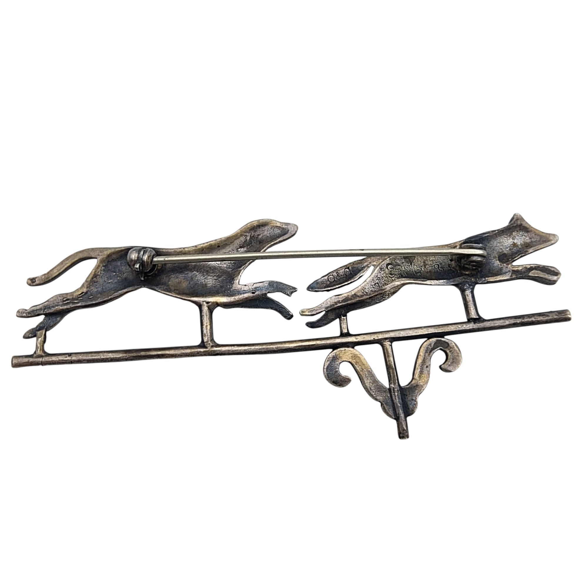 Signed C&C/S.M. Vintage Sterling Fox & Hound Art Deco Brooch – 6.7g