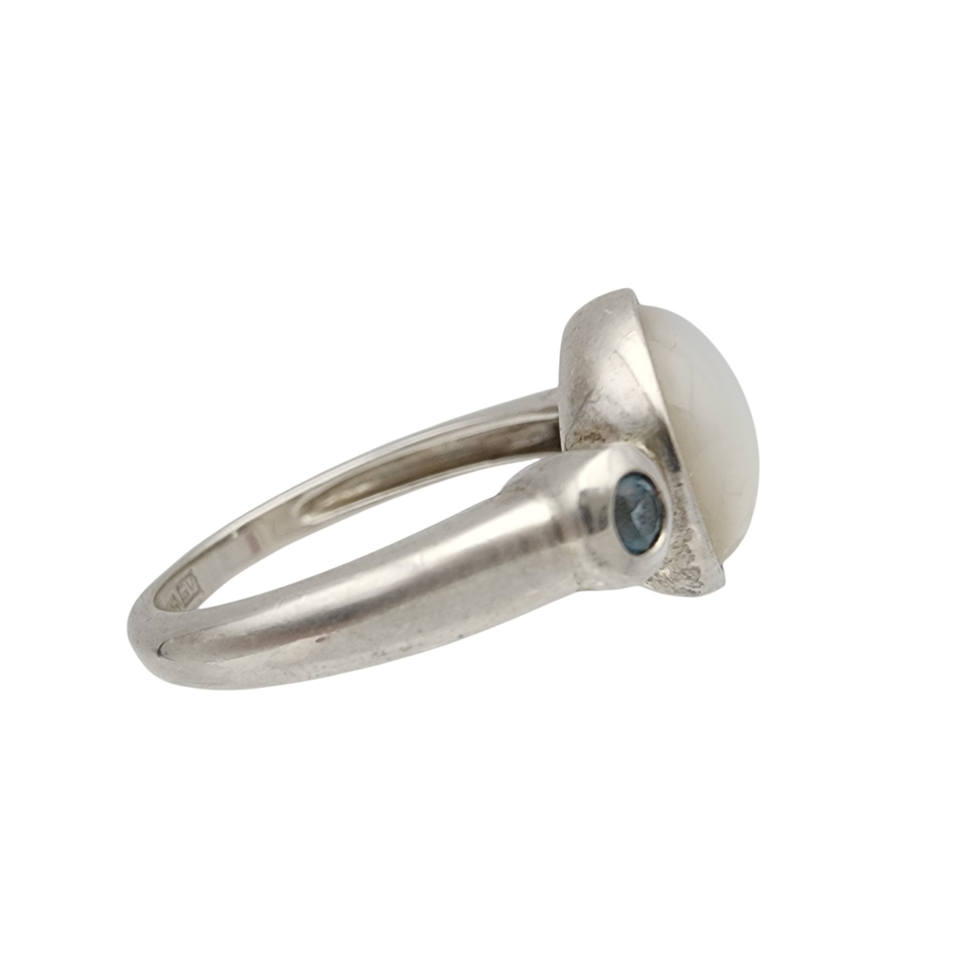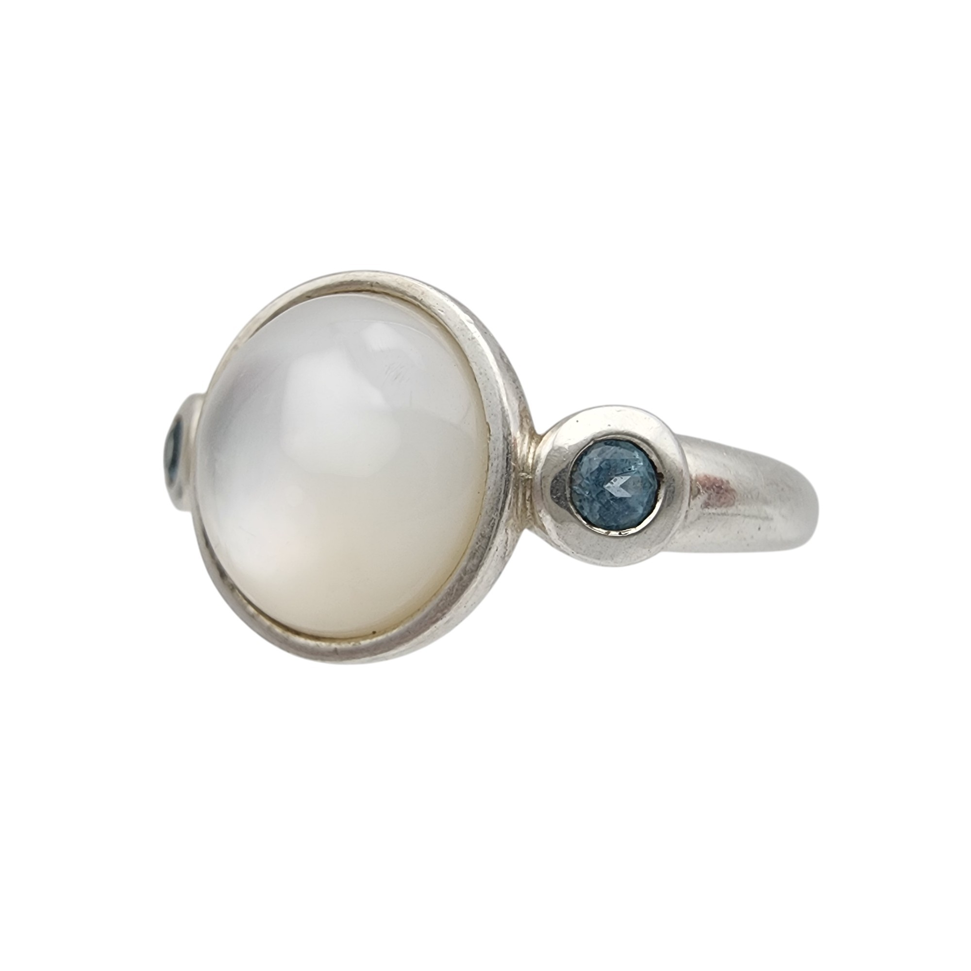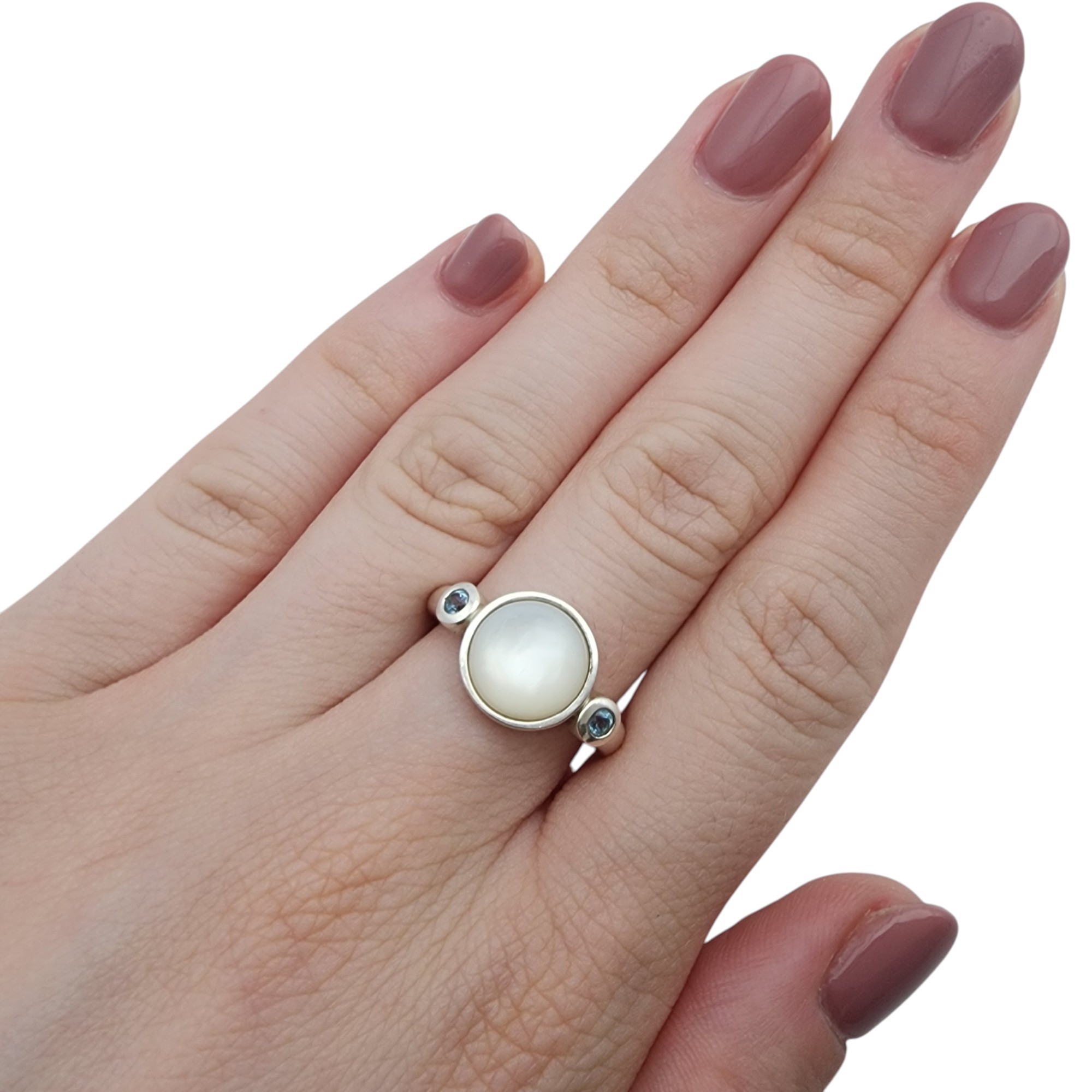 Signed GV Sterling Mother of Pearl and Topaz Ring Sz 8 – 3.9g