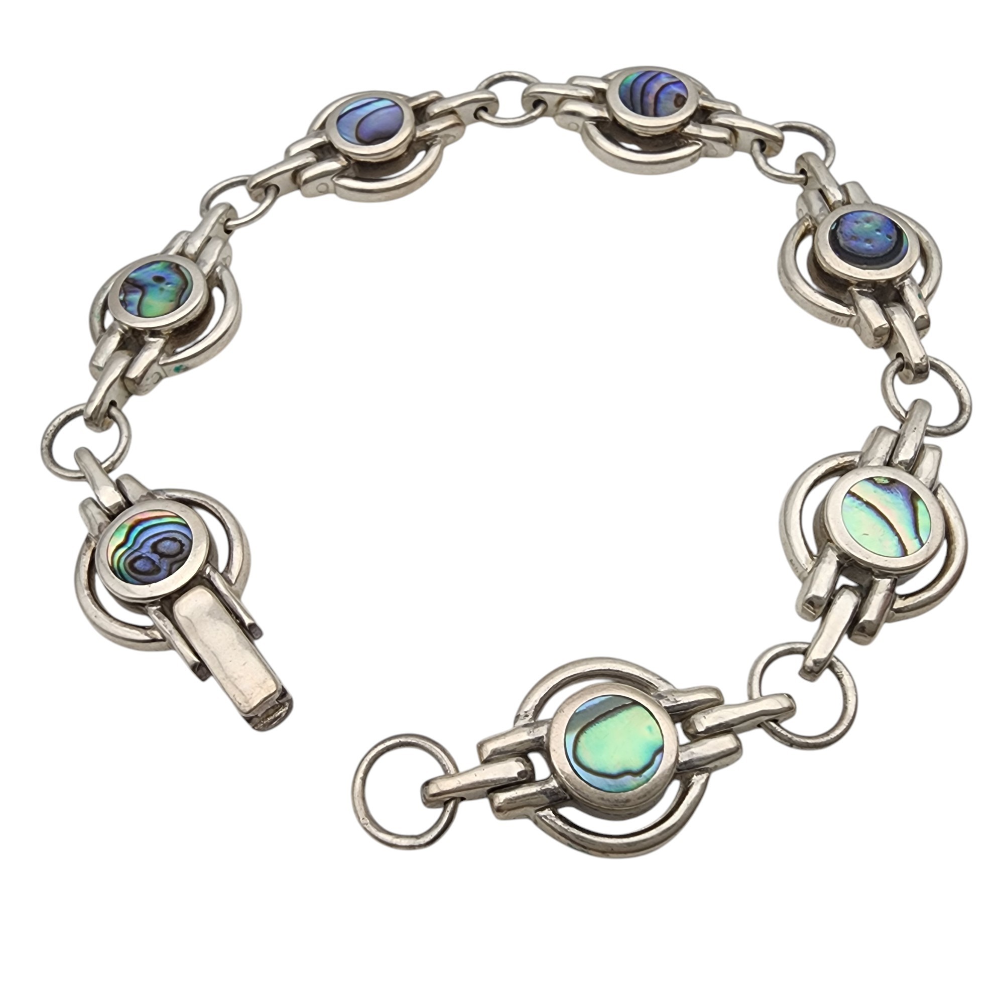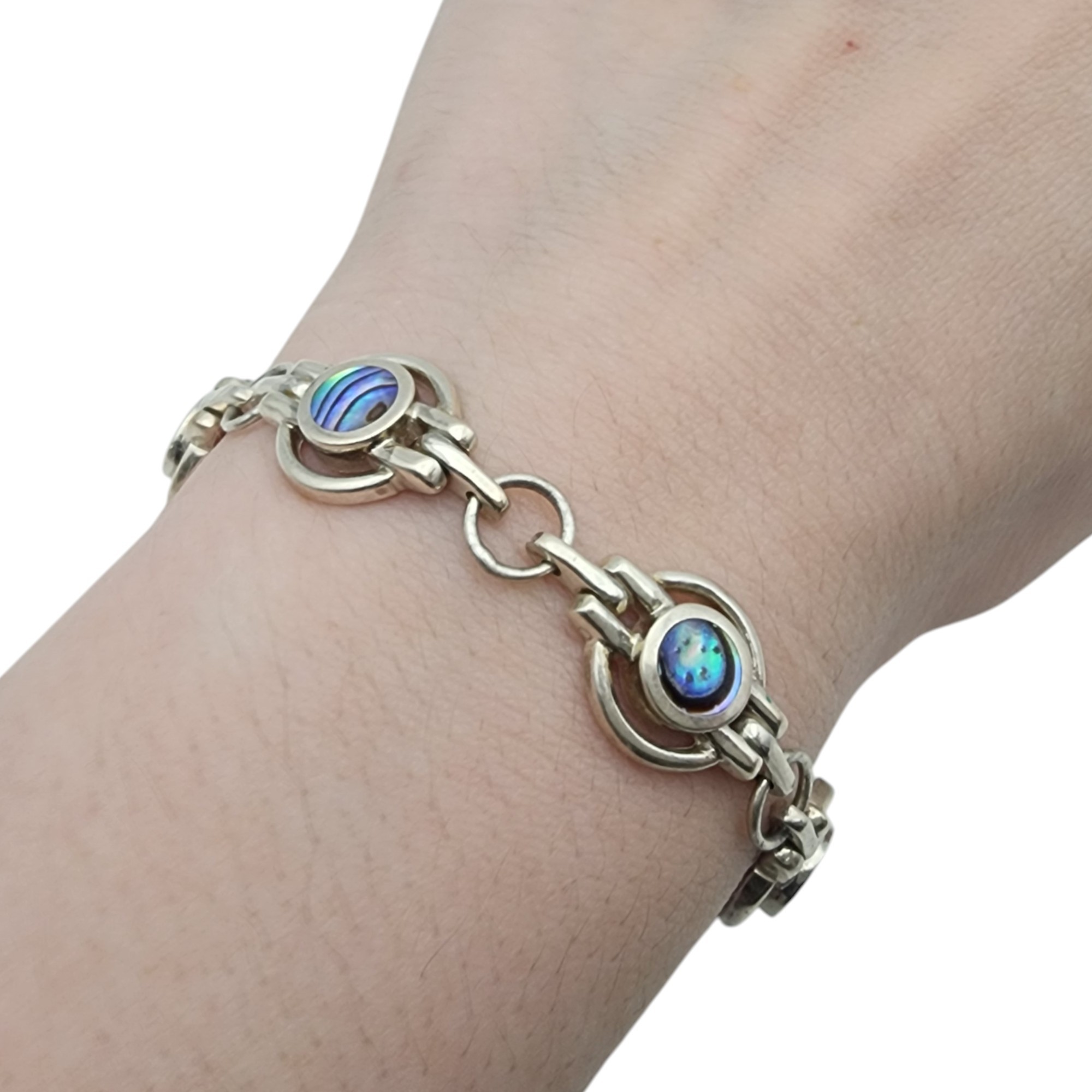 Signed Sterling Abalone Link Bracelet – 20.2g