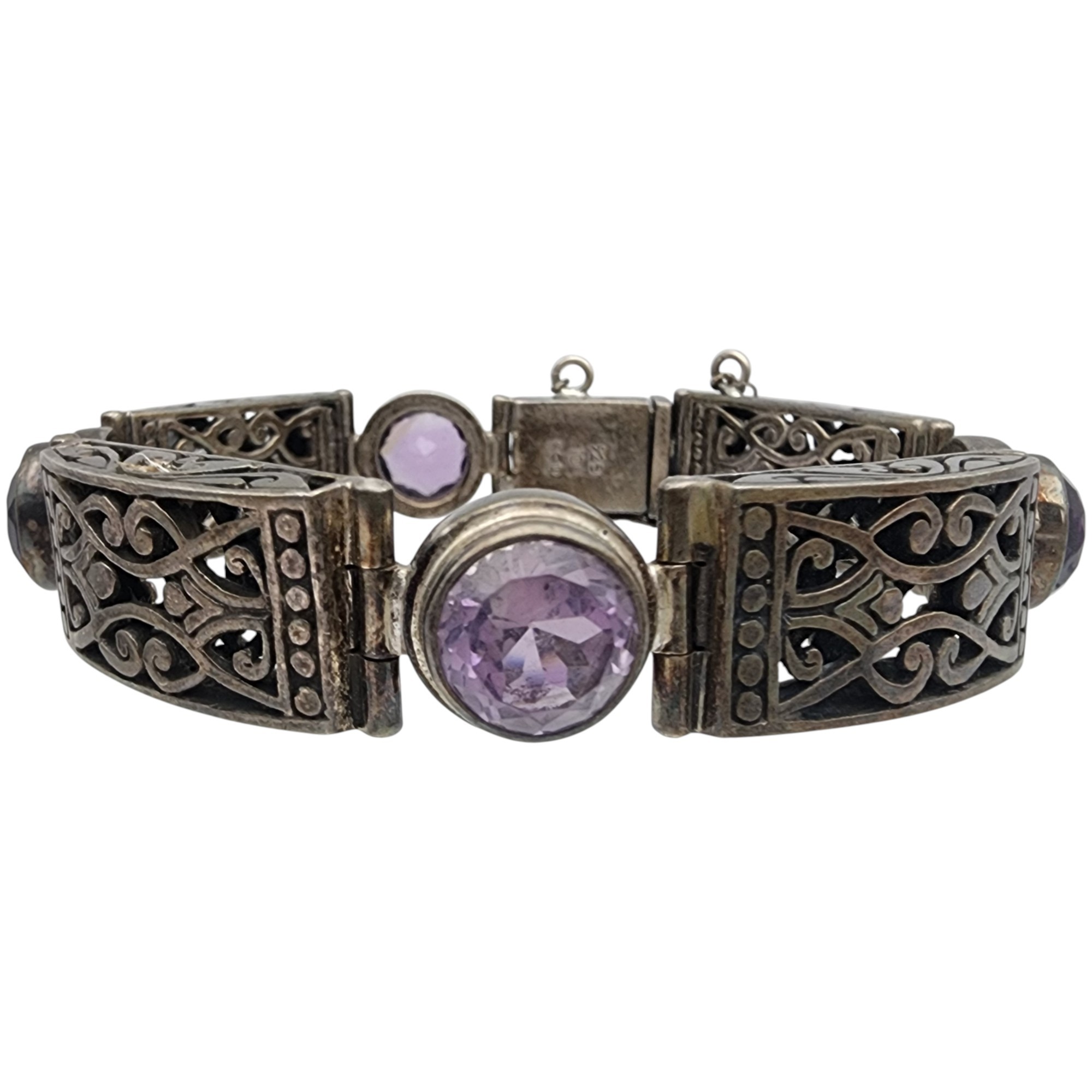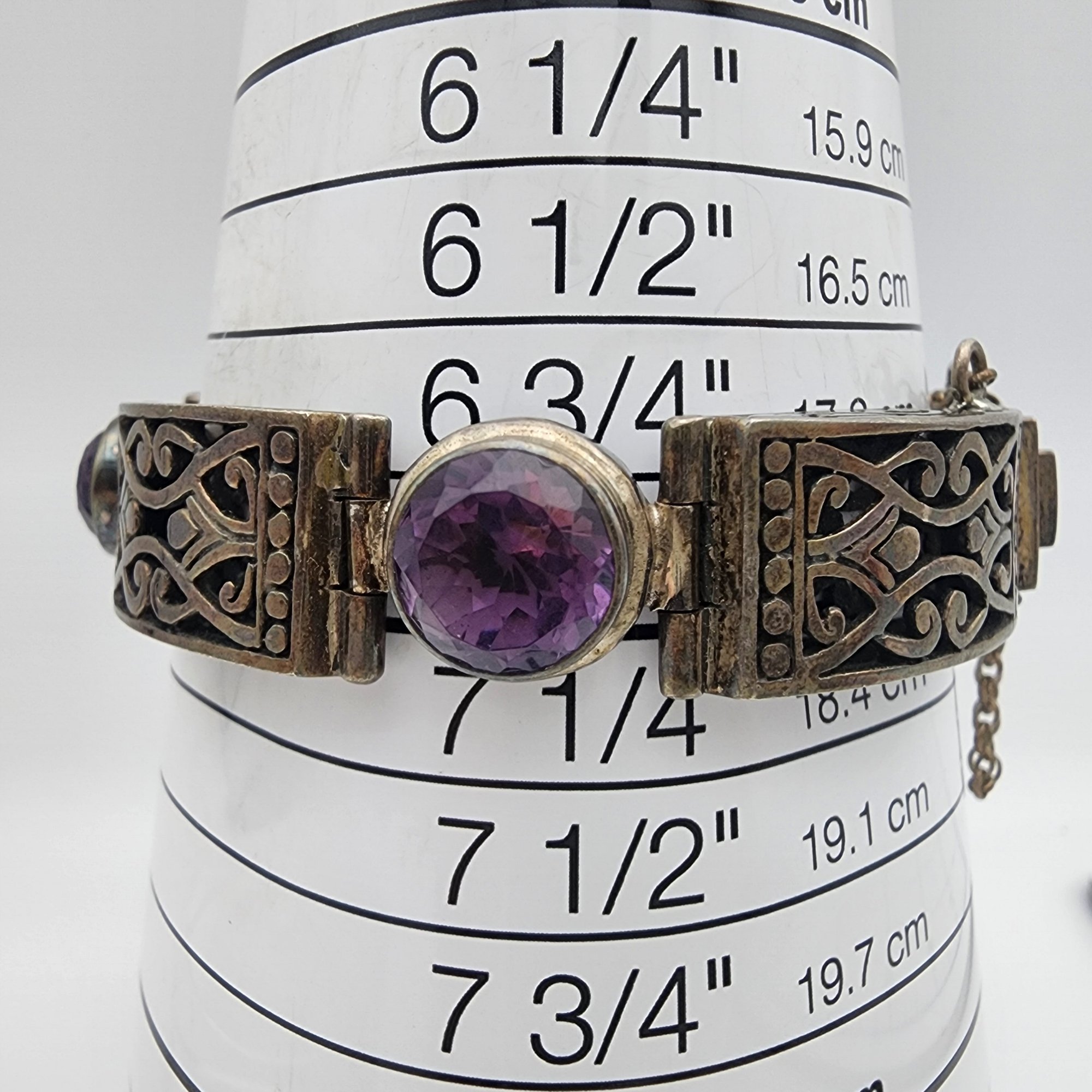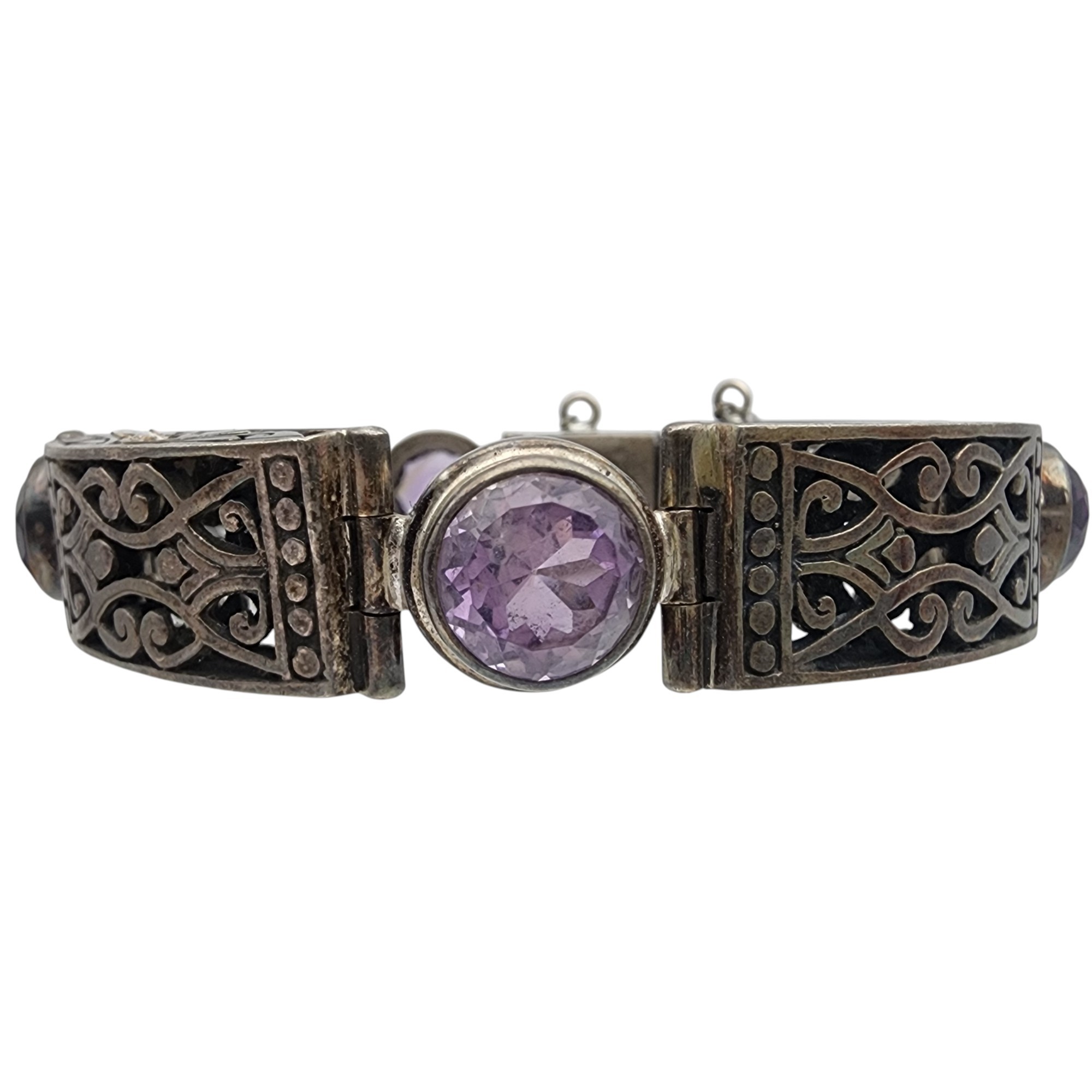 Sterling Amethyst Hinged Bracelet – 50.9g
