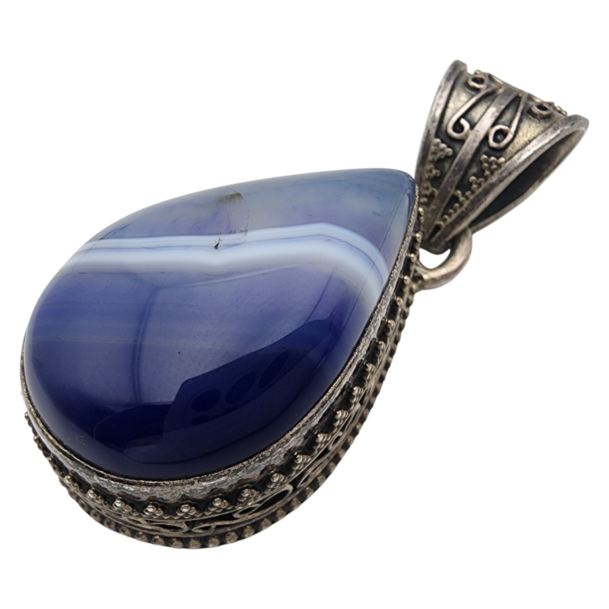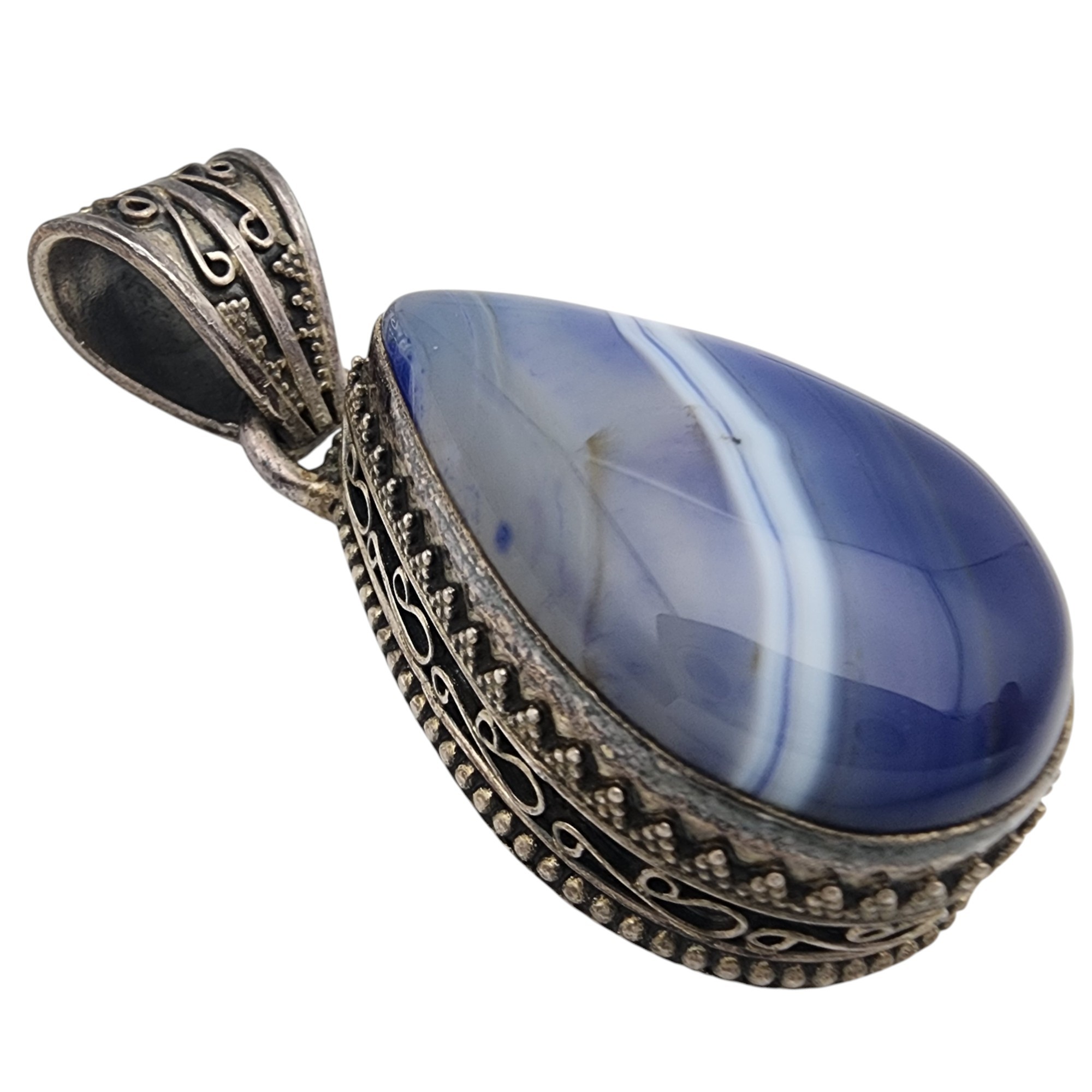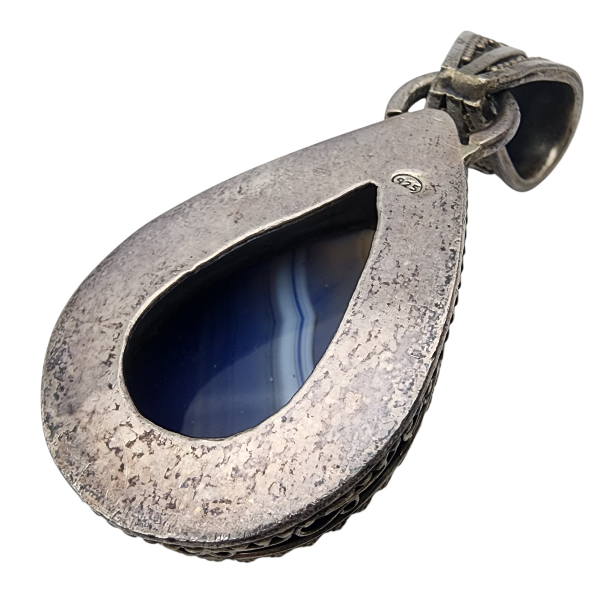 Sterling Blue Botswana Agate Pendant – 23.7g