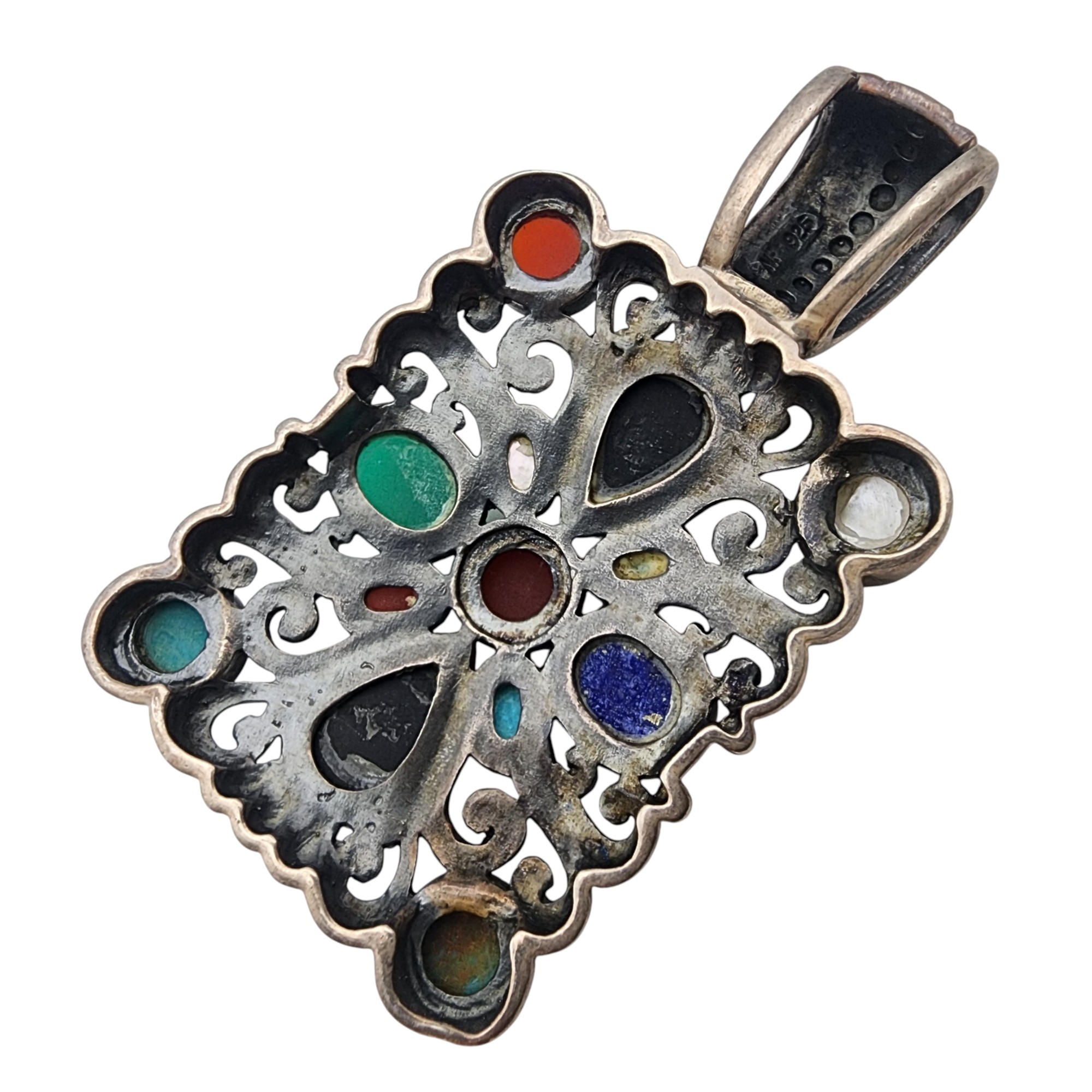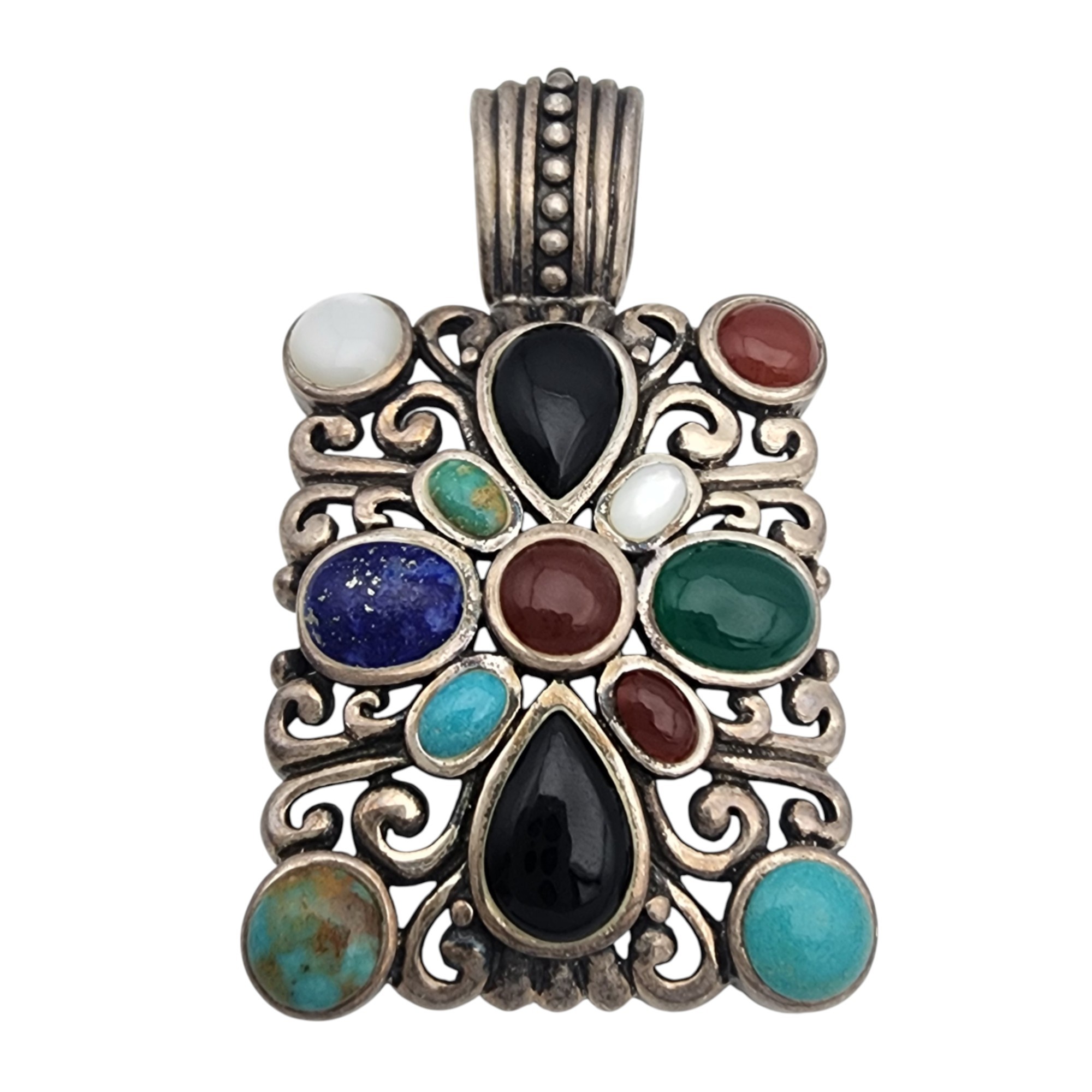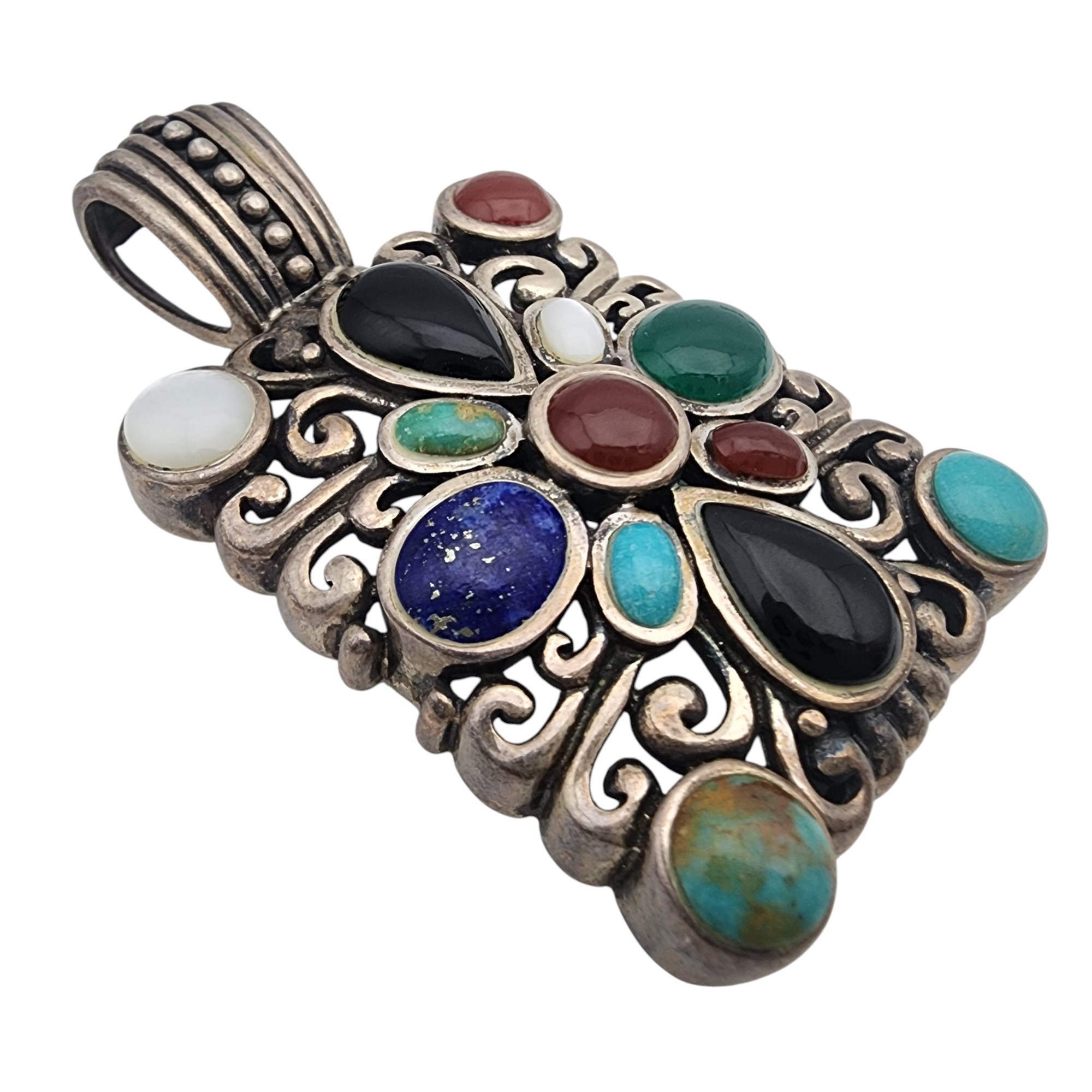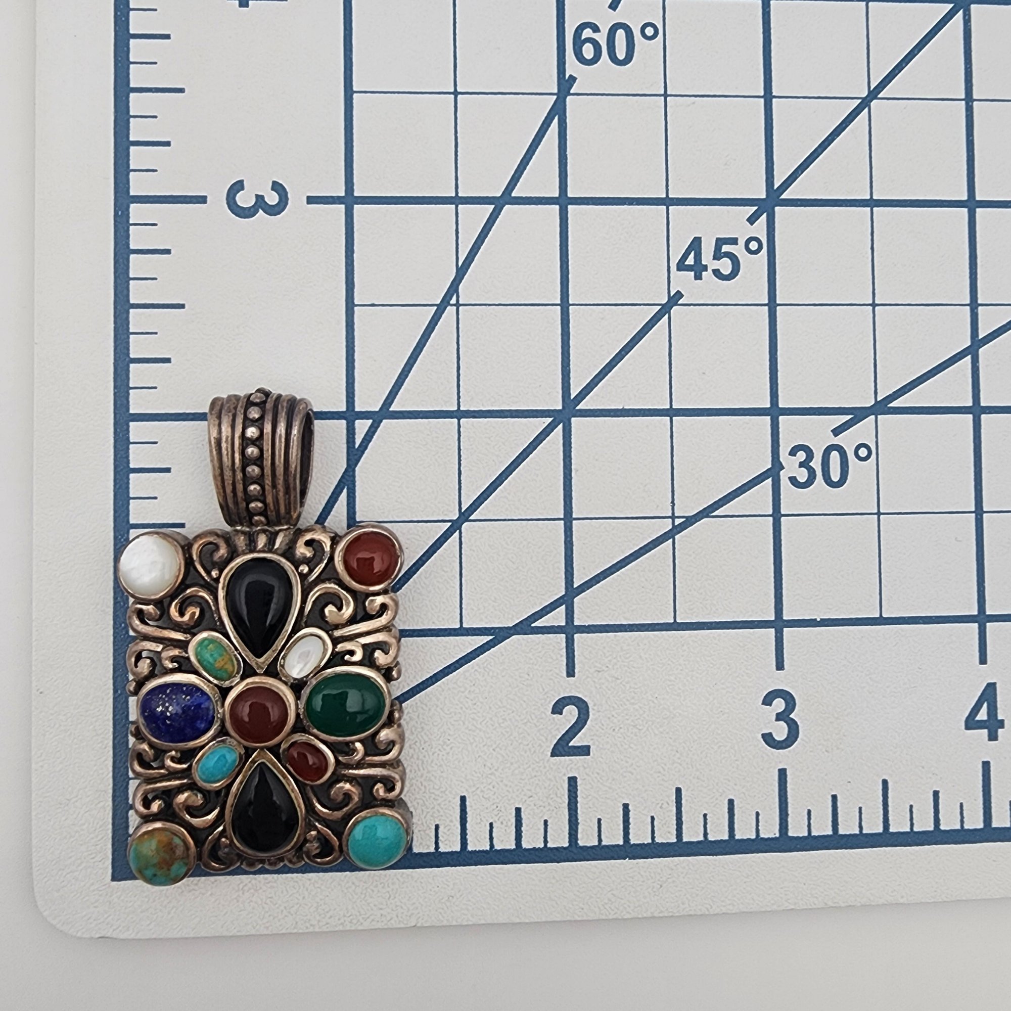 Sterling Multistone (Lapis Lazuli, Turquoise, Mother of Pearl, Carnelian, Jade, Onyx, etc.) Rectangle Pendant – 18.9g